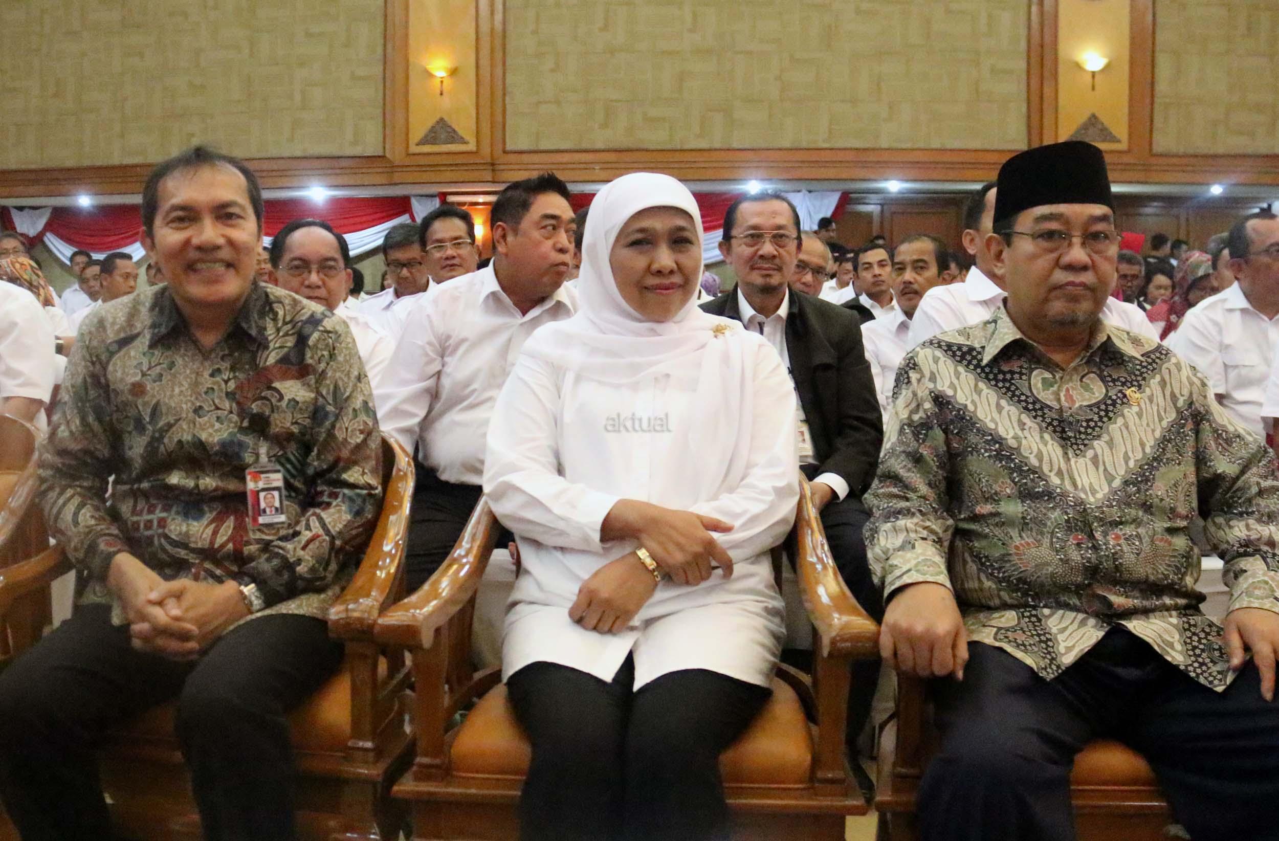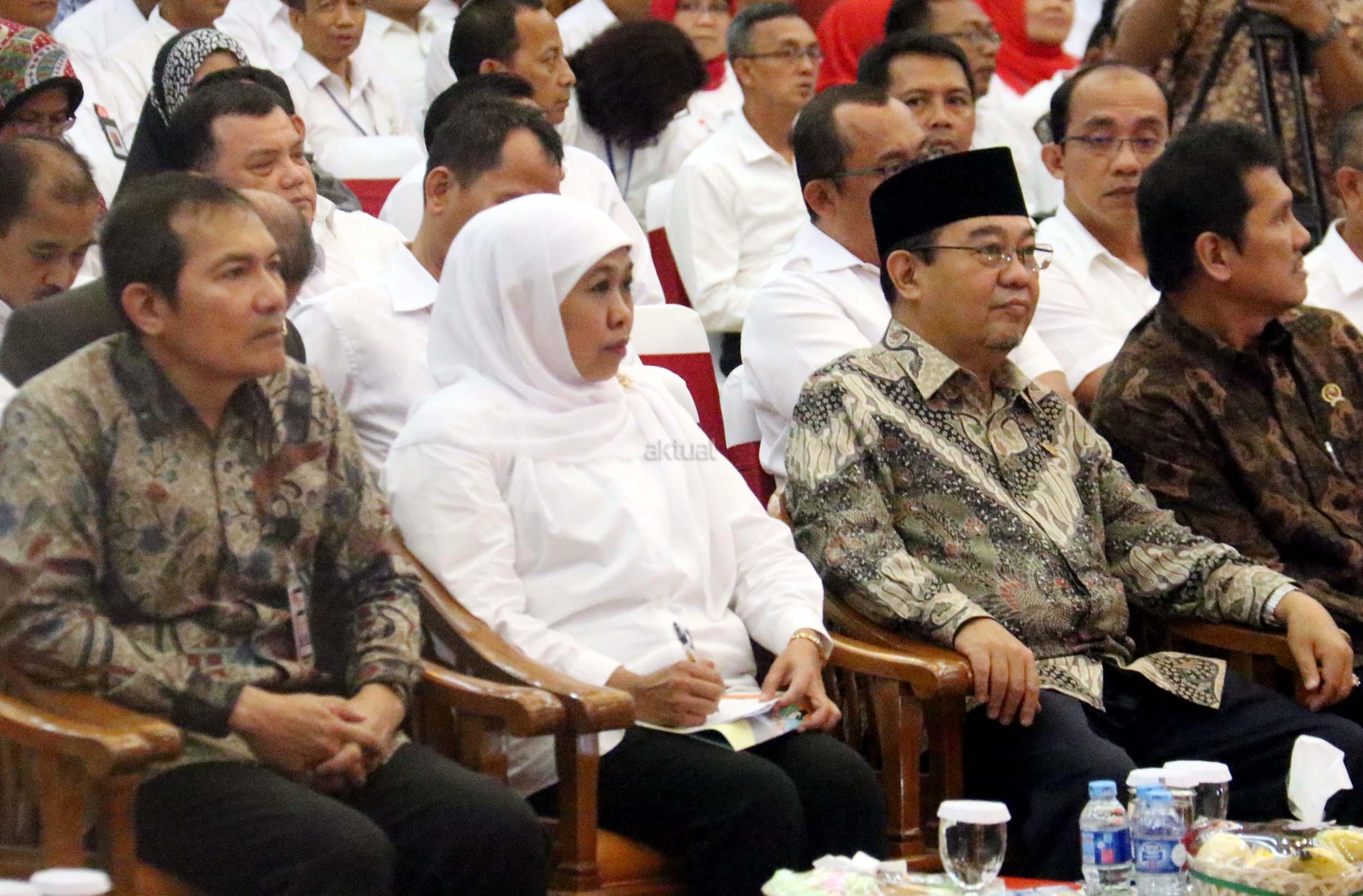 Kiri-kanan ; Menteri Sosial Khofifah Indar Parawansa, Ketua BPK RI Harry Azhar saat menghadiri workshop dalam rangka memperingati hari anti korupsi Internasional tahun 2016 di Jakarta, Kamis (22/12/2016). Workshop tersebut mengangkat tema bersih hati, tegak integritas, kerja profesional, untuk Indonesia tangguh. AKTUAL/Munzir