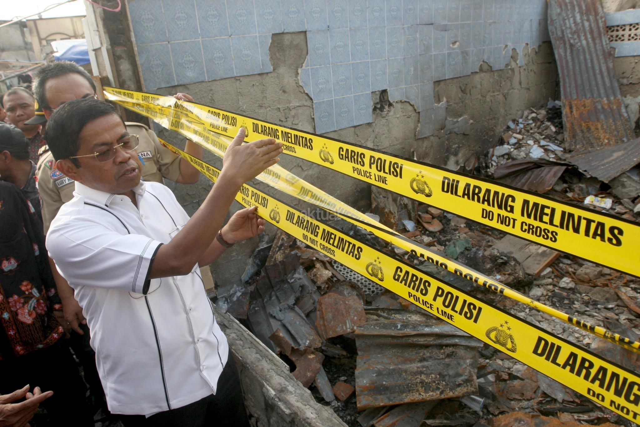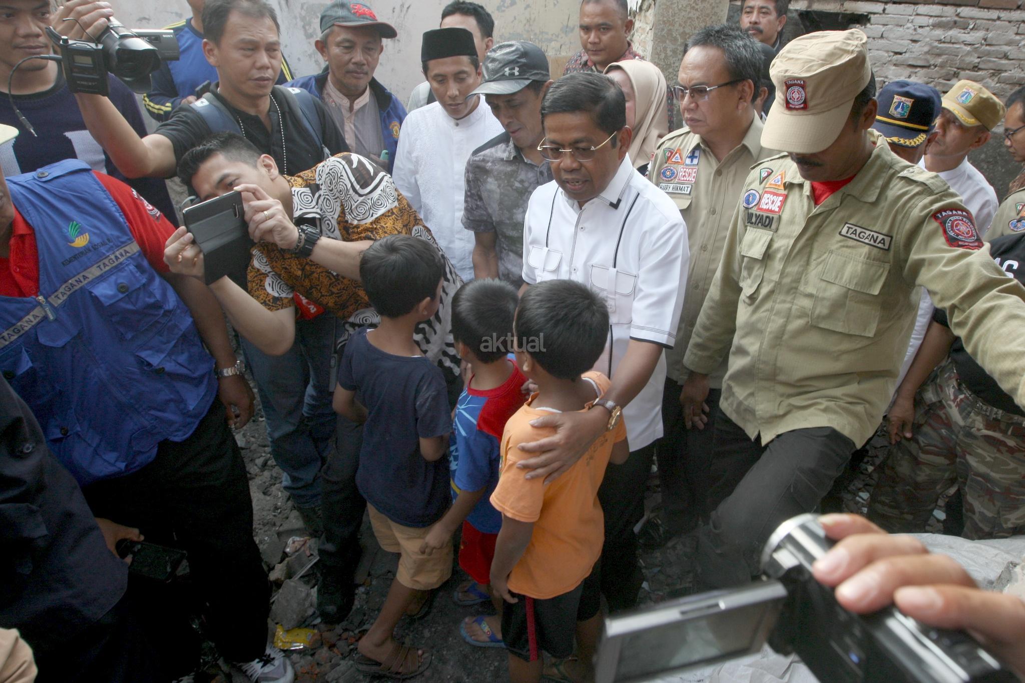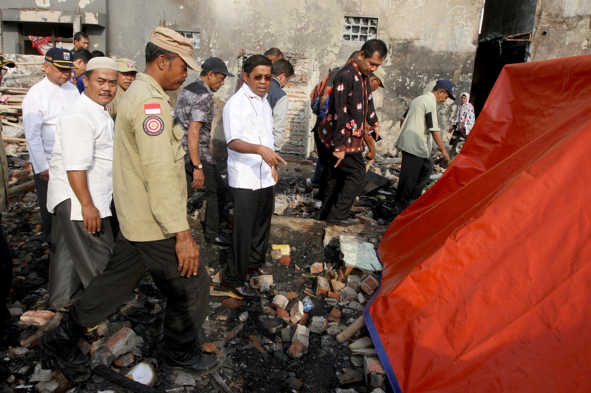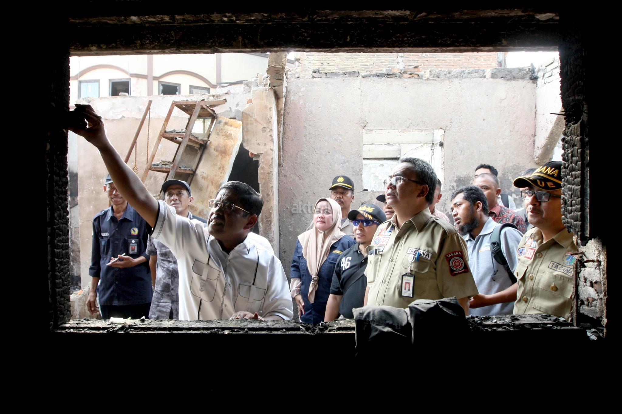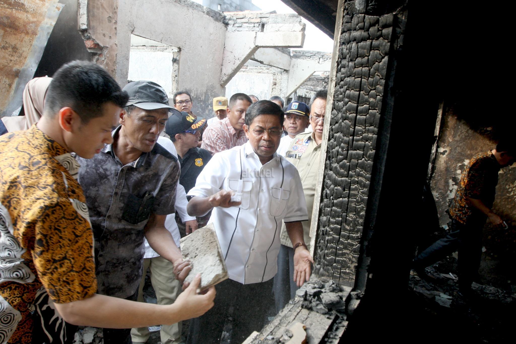 Menteri Sosial Idrus Marham mendatangi lokasi kebakaran di Krukut, Tamansari, Jakarta Barat, Jumat (02/2/2018). Kedatangan Mensos untuk melihat langsung korban kebakaran yang menghanguskan rumah warga di 10 RT, dari RT 07 sampai RT 16 tersebut. AKTUAL/Tino Oktaviano