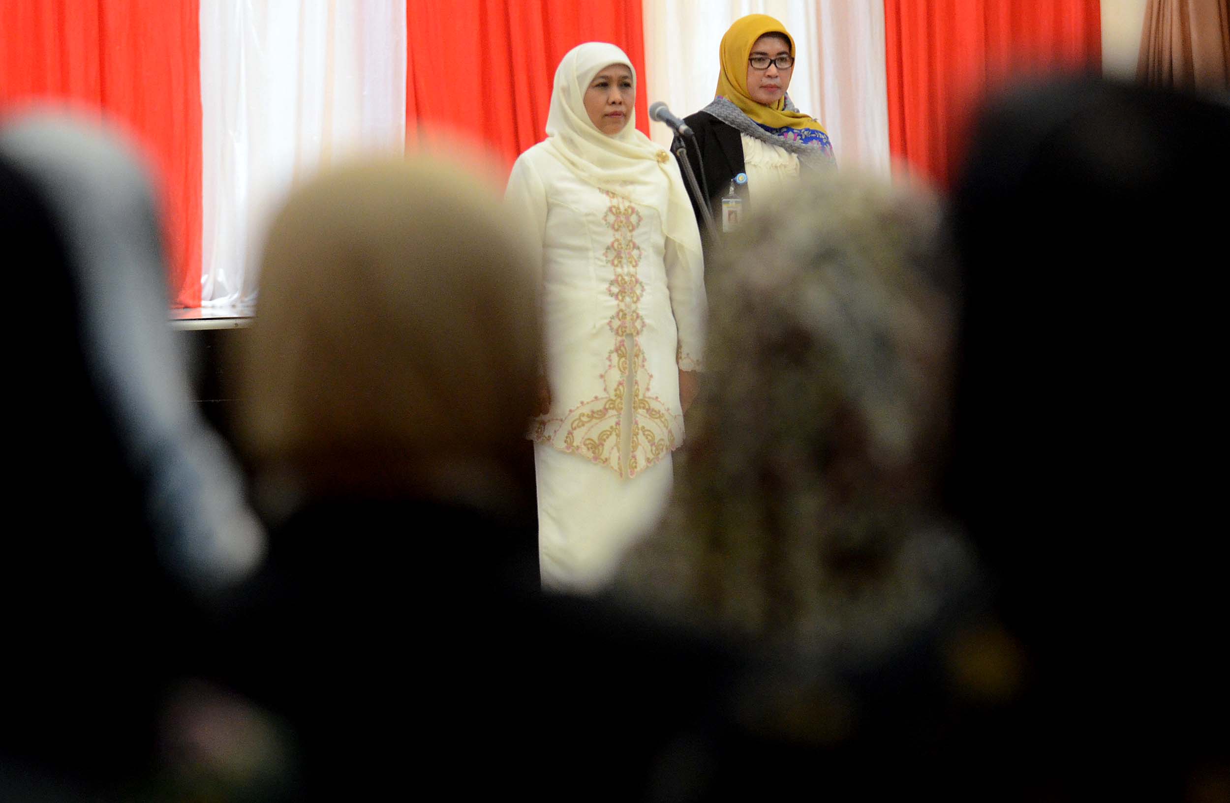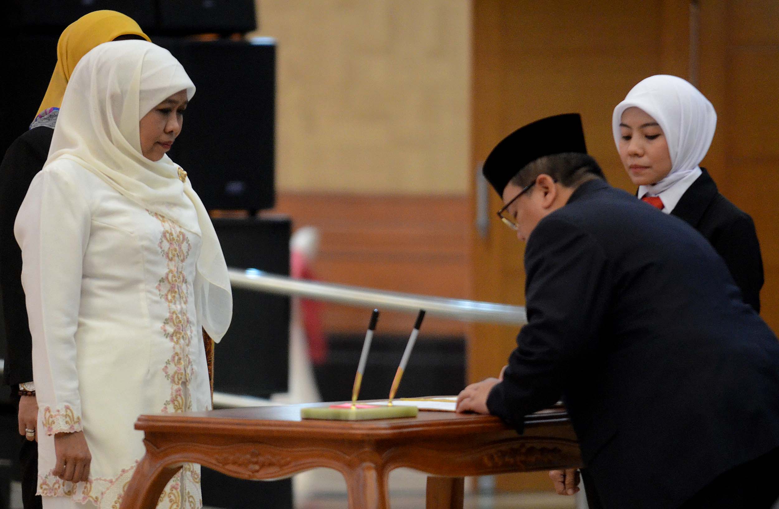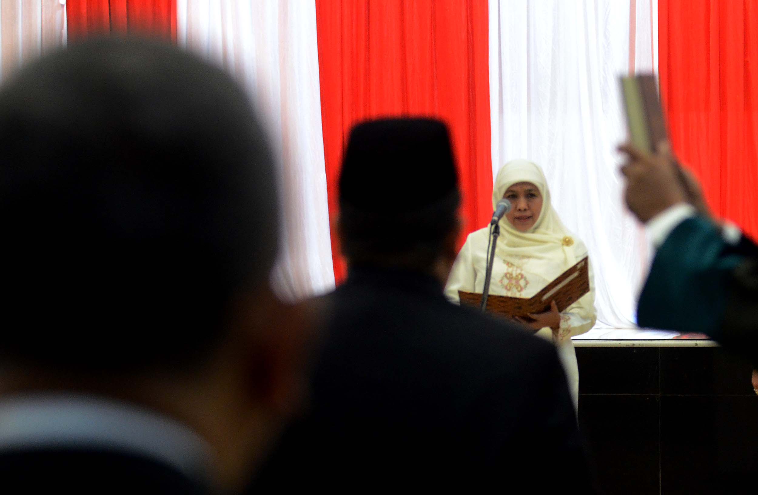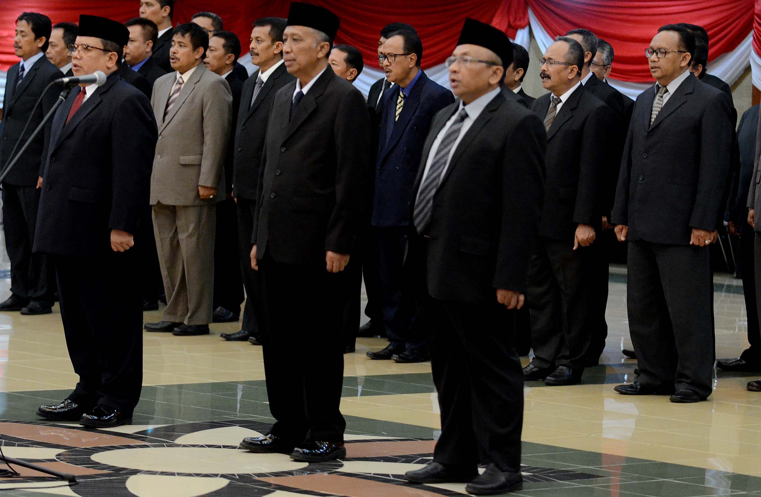 Menteri Sosial Khofifah Indar Parawansa melantik tiga Pejabat Tinggi Madya Kemensos di Gedung Aneka Bhakti, Kemensos, Jakarta, Rabu (3/8/2016). Ketiga pejabat tinggi madya yang dilantik adalah Harry Soeratin sebagai Sekretaris Jenderal, Marjuki sebagai Dirjen Rehabilitasi Sosial dan Edi Suharto sebagai Kepala Badan Pendidikan, Penelitian dan Penyuluhan Sosial.