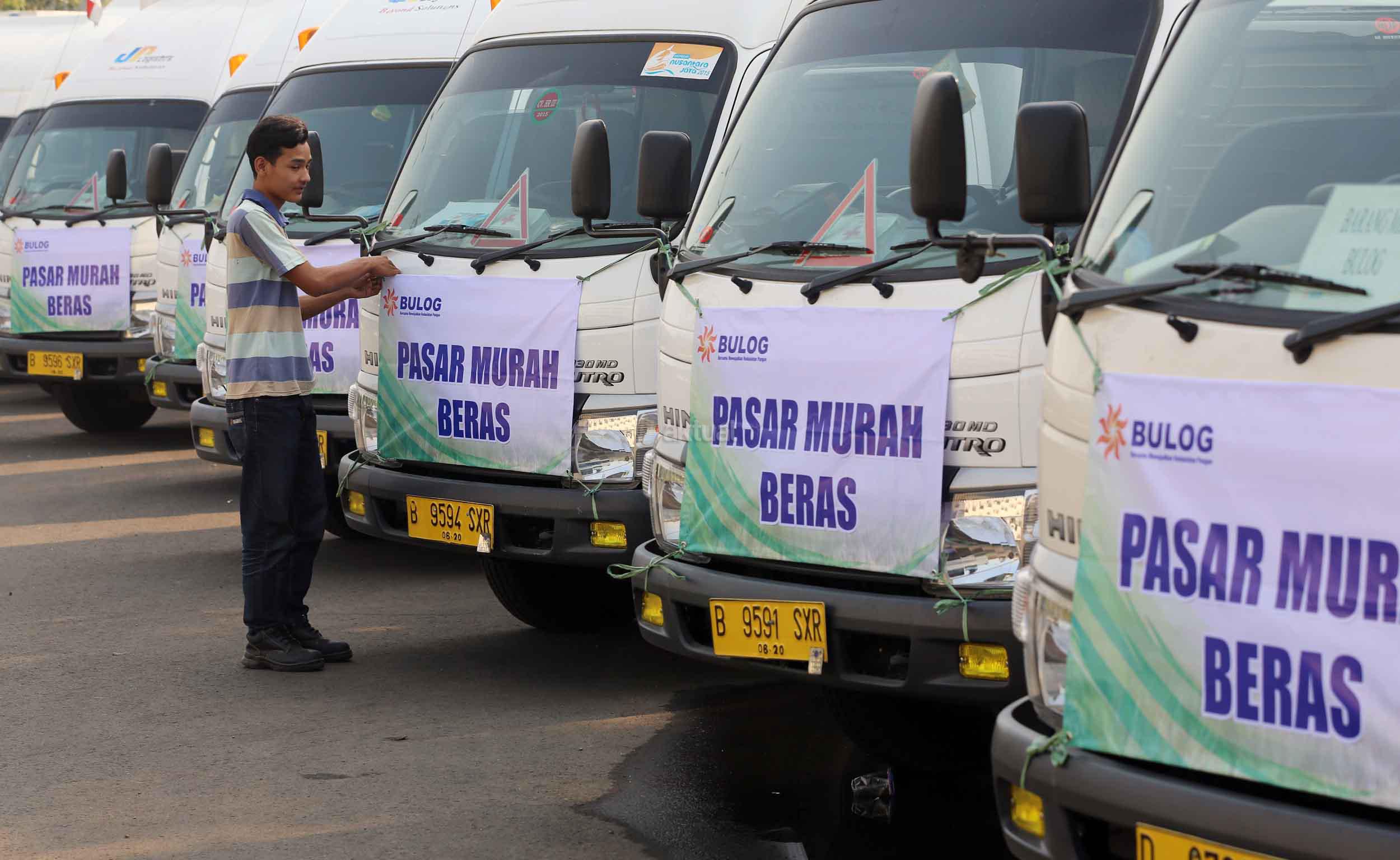 Bulog melepas 30 truk yang terdiri dari 21 truk beras sejumlah 140 ton yang kami sebar ke pasar-pasar tradisional DKI, dan pasar induk Cipinang