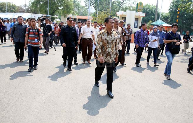Menteri Pertanian (Mentan) Amran Sulaiman dan Kepala Badan Urusan Logistik (Bulog) Djarot Kusumayakti melepas pasar murah beras premium dan daging sapi di Gudang Bulog, Jakarta, Selasa (22/9/2015). Bulog melepas 30 truk yang terdiri dari 21 truk beras sejumlah 140 ton yang kami sebar ke pasar-pasar tradisional DKI, dan pasar induk Cipinang.