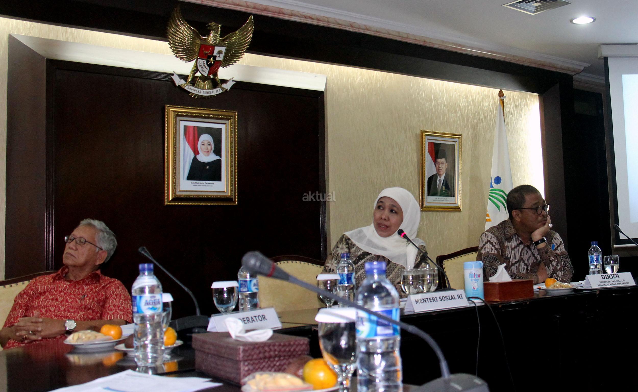 Kiri-kanan ; Peneliti UI Prof. DR. S. Budi Santoso, Menteri Sosial Khofifah Indar Parawansa, Dirjen Pemberdayaan Sosial dan Penanggulangan Kemiskinan Kemensos Hartono Laras, saat menghadiri rapat Forum Koordinasi Komunitas Adat Terpencil (KAT) di Kemensos, Jakarta, Rabu (4/11/2015). Dalam rapat Forum Koordinasi Komunitas Adat Terpencil (KAT) membahas Penjelasan Perpres No 186/2014 ttg Pemberdayaan KAT dan Pola Pemberdayaan Suku Anak Dalam, Studi Kasus terhadap Orang Rimba oleh KKI-Warsi Jambi.