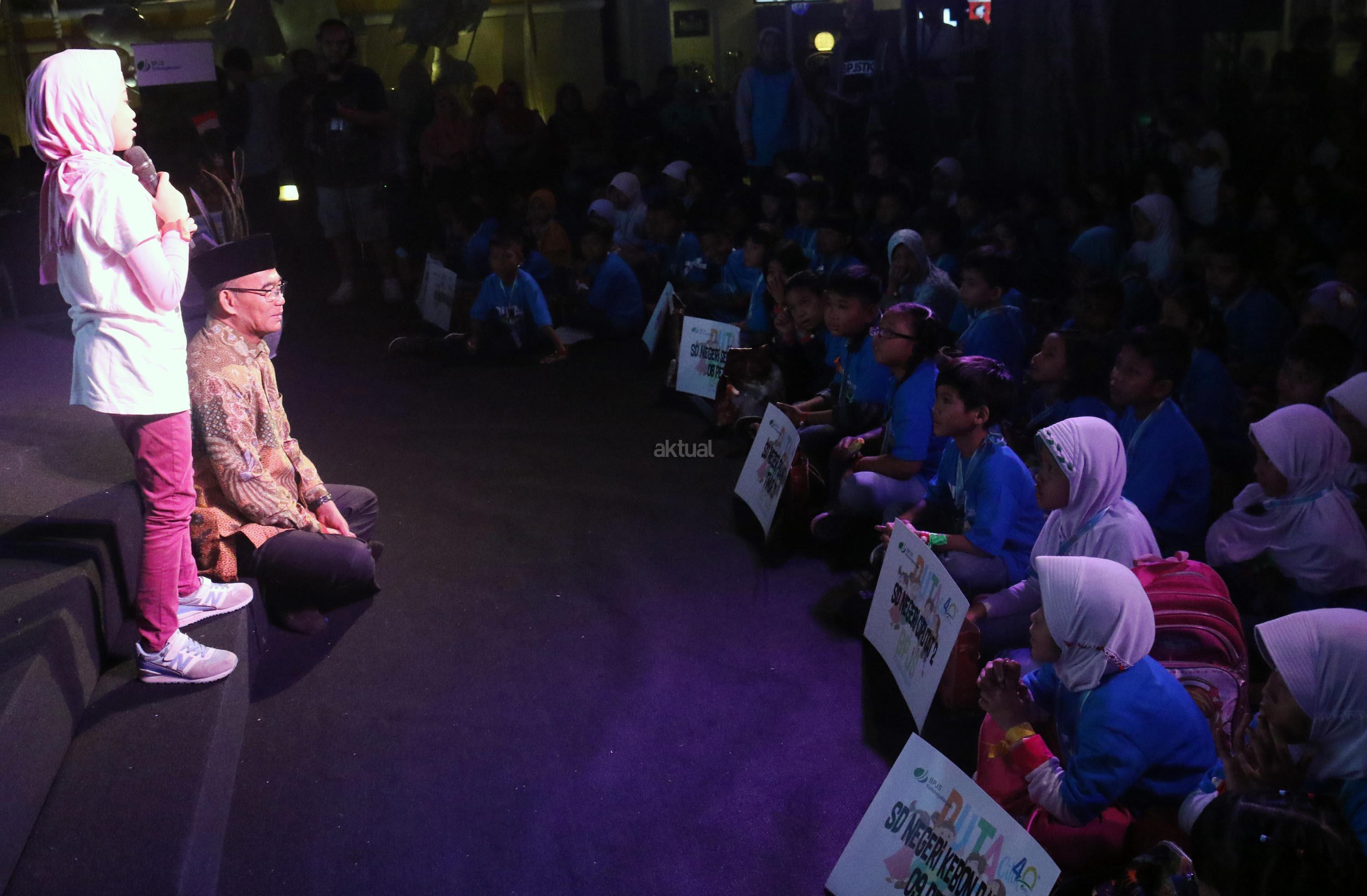 Menteri Pendidikan dan Kebudayaan (Mendikbud) RI Muhadjir Effendy, menghibur ratusan anak saat merayakan hari anak nasional yang digelar oleh BPJS Ketenagakerjaan di area bermain KidZania, Jakarta, Minggu (23/7/2017). Kegiatan tersebut digelar oleh BPJS Ketenagakerjaan dalam rangka memperingati Hari Anak Nasional dan sekaligus meluncurkan buku perlengkapan kurikulum untuk siswa SD, dan SMP yang berisi tentang dasar-dasar jaminan sosial. AKTUAL/Munzir