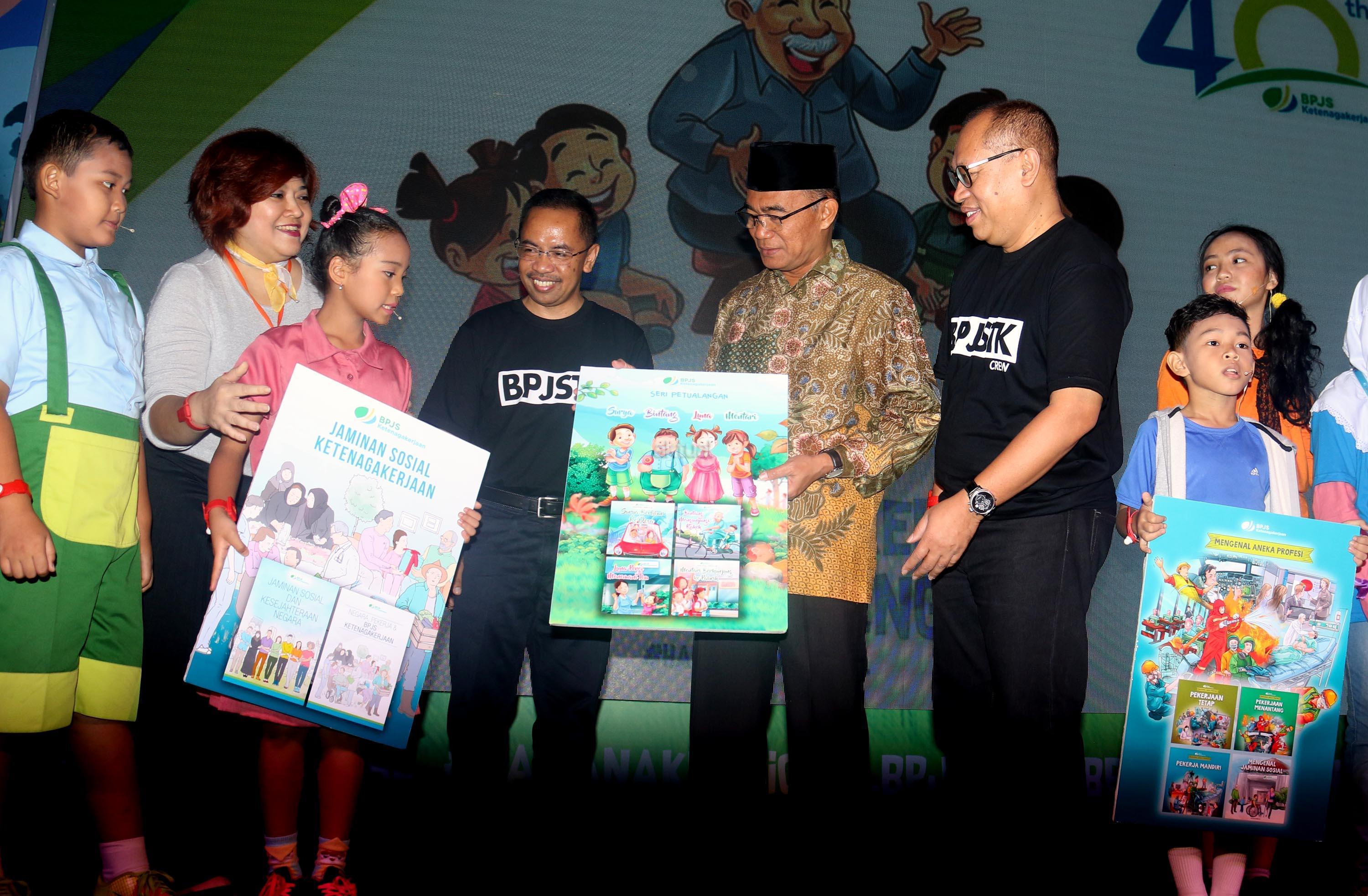 Kegiatan tersebut digelar oleh BPJS Ketenagakerjaan dalam rangka memperingati Hari Anak Nasional dan sekaligus meluncurkan buku perlengkapan kurikulum untuk siswa SD, dan SMP yang berisi tentang dasar-dasar jaminan sosial. AKTUAL/Munzir
