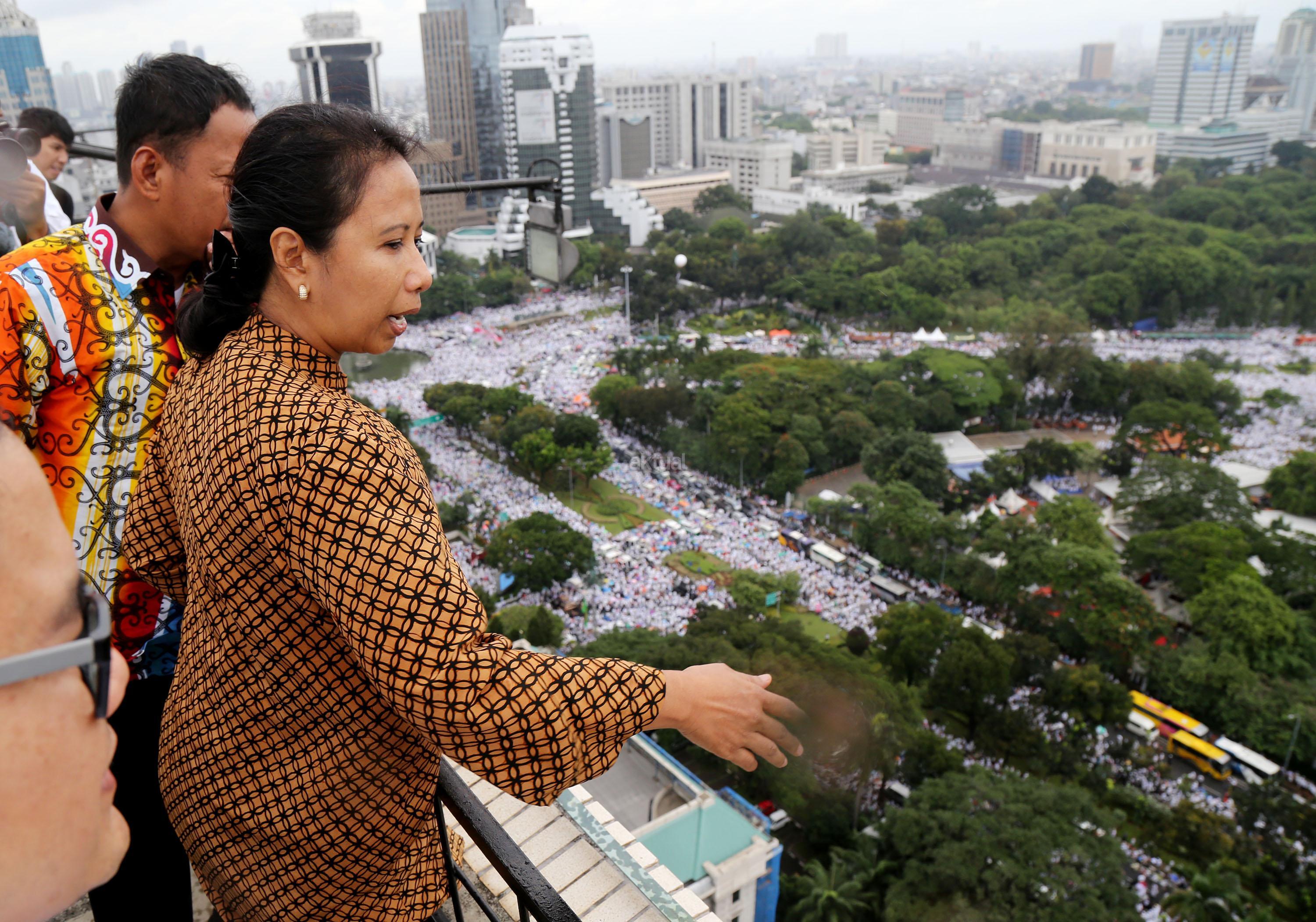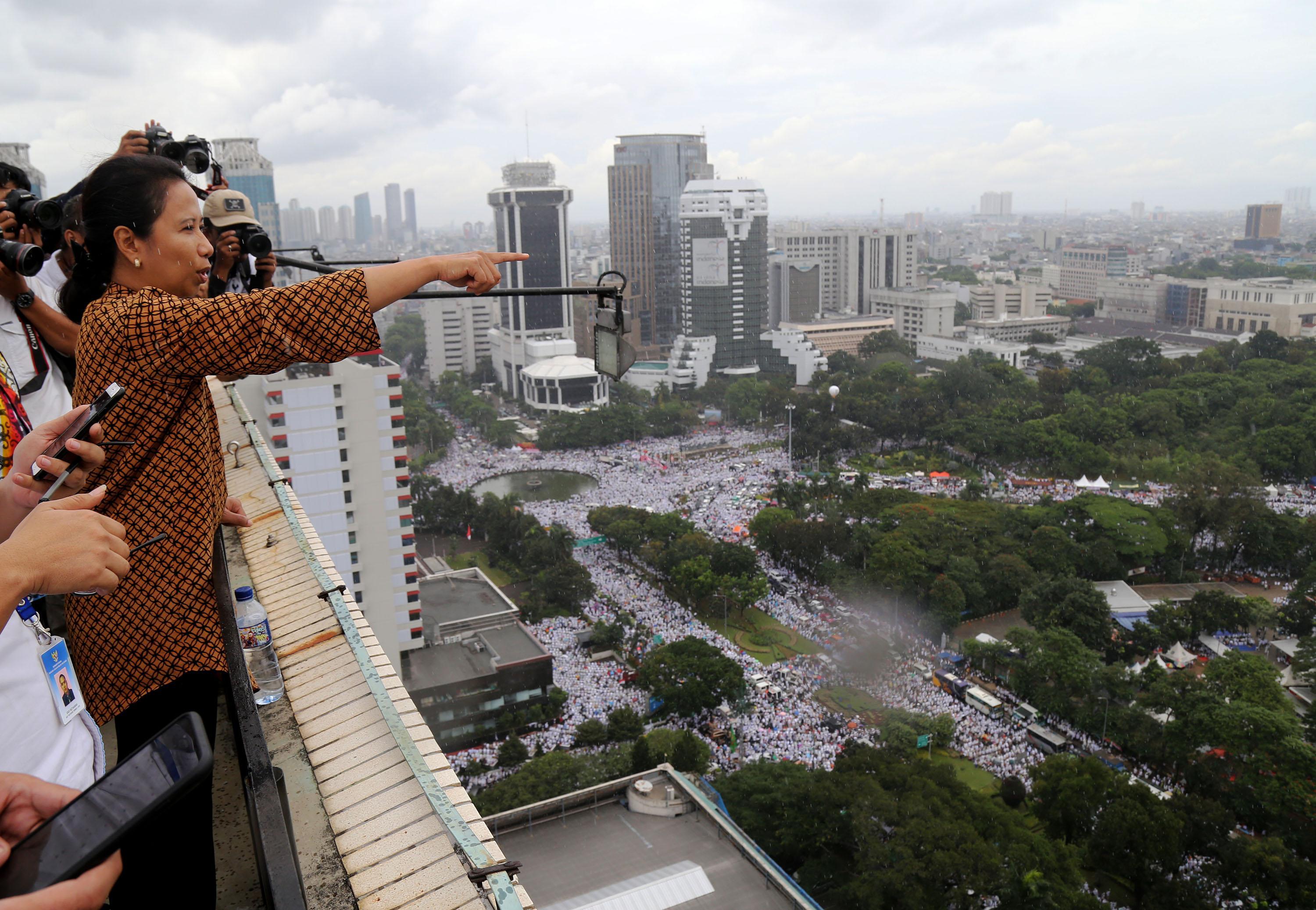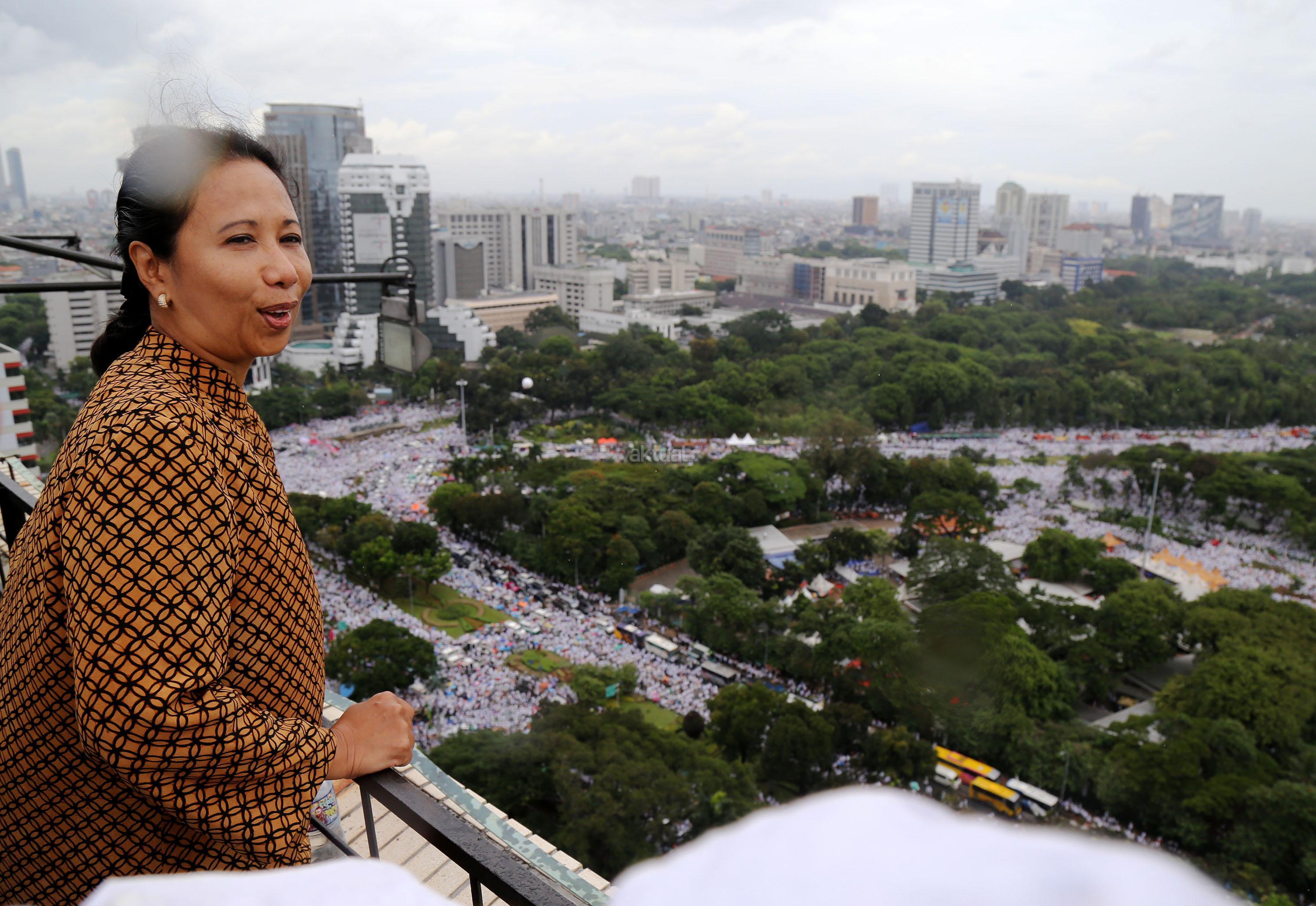 Menteri Rini Soemarno Pantau Aksi Bela Islam 212 di Kantor BUMN