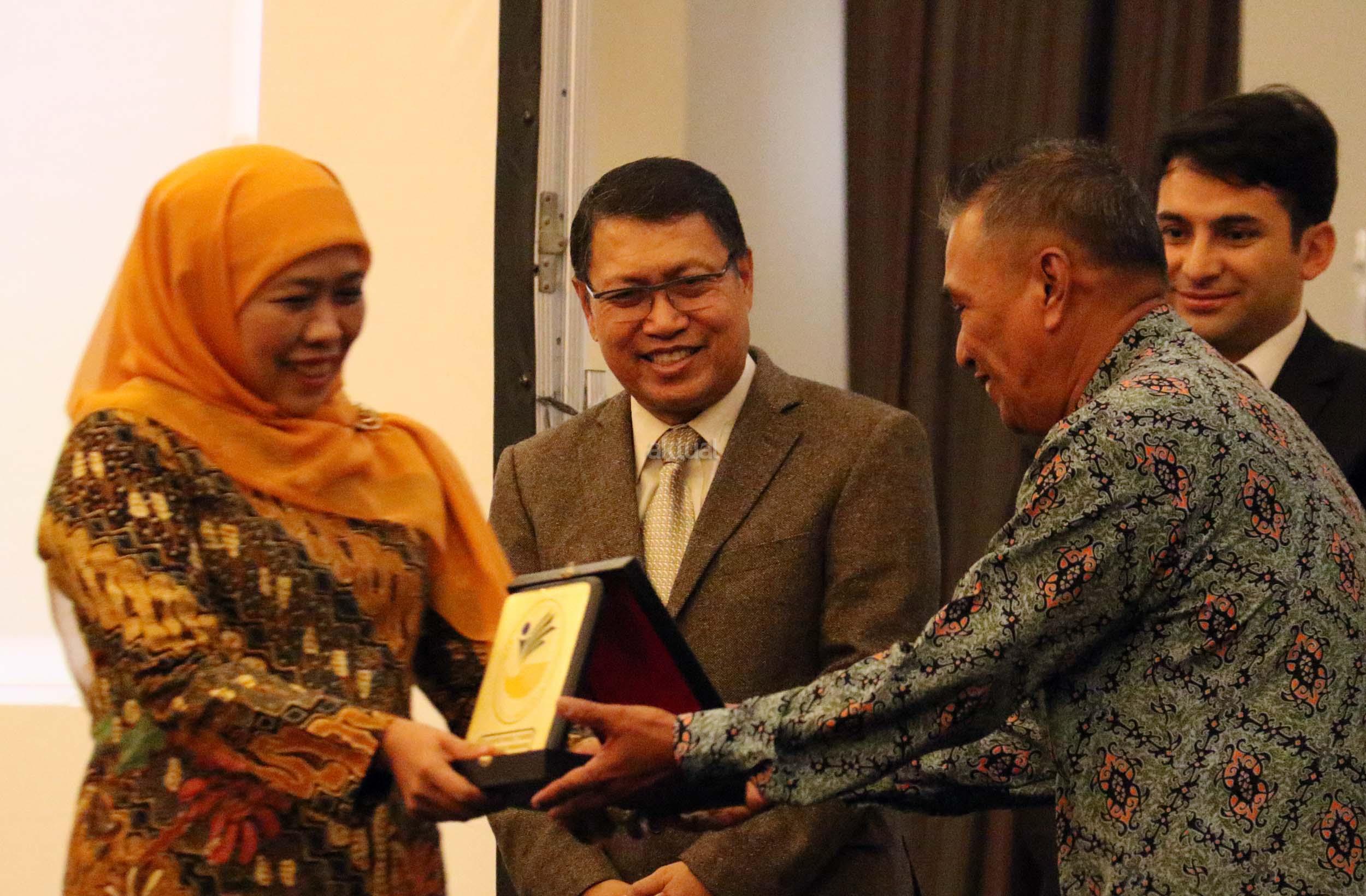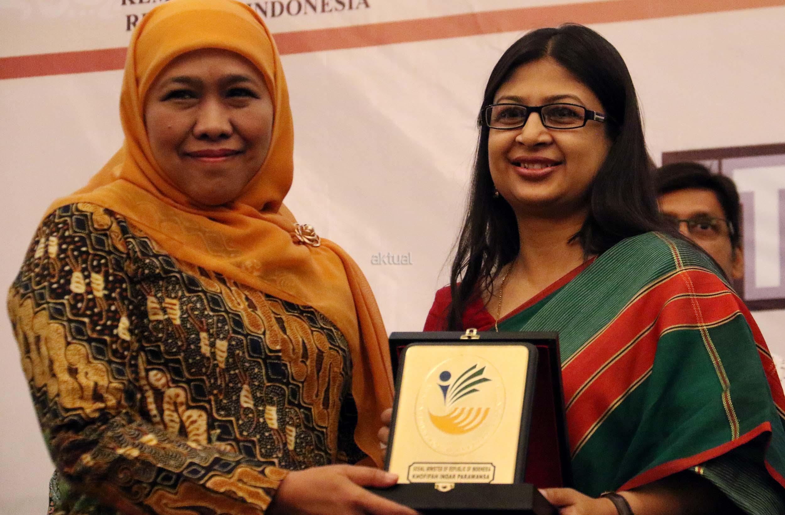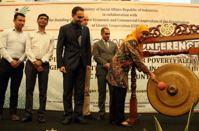 Menteri Sosial Khofifah Indar Parawansa memukul gong dalam pembukaan acara COMCEC bekerja bersama Kementerian Sosial dalam kegiatan The International Conference on Developing Local Initiatives for Poverty Alleviation Based on Community Through Sustainable Livelihood, di Jakarta, Selasa (8/11/2016). Dalam acara The International Conference on Developing Local Initiatives for Poverty Alleviation Based on Community Through Sustainable Livelihood ini mengambil tema Integrasi Program di Kementerian Sosial dalam Penanggulangan Kemiskinan melalui Penghidupan Berkelanjutan. AKTUAL/Munzir