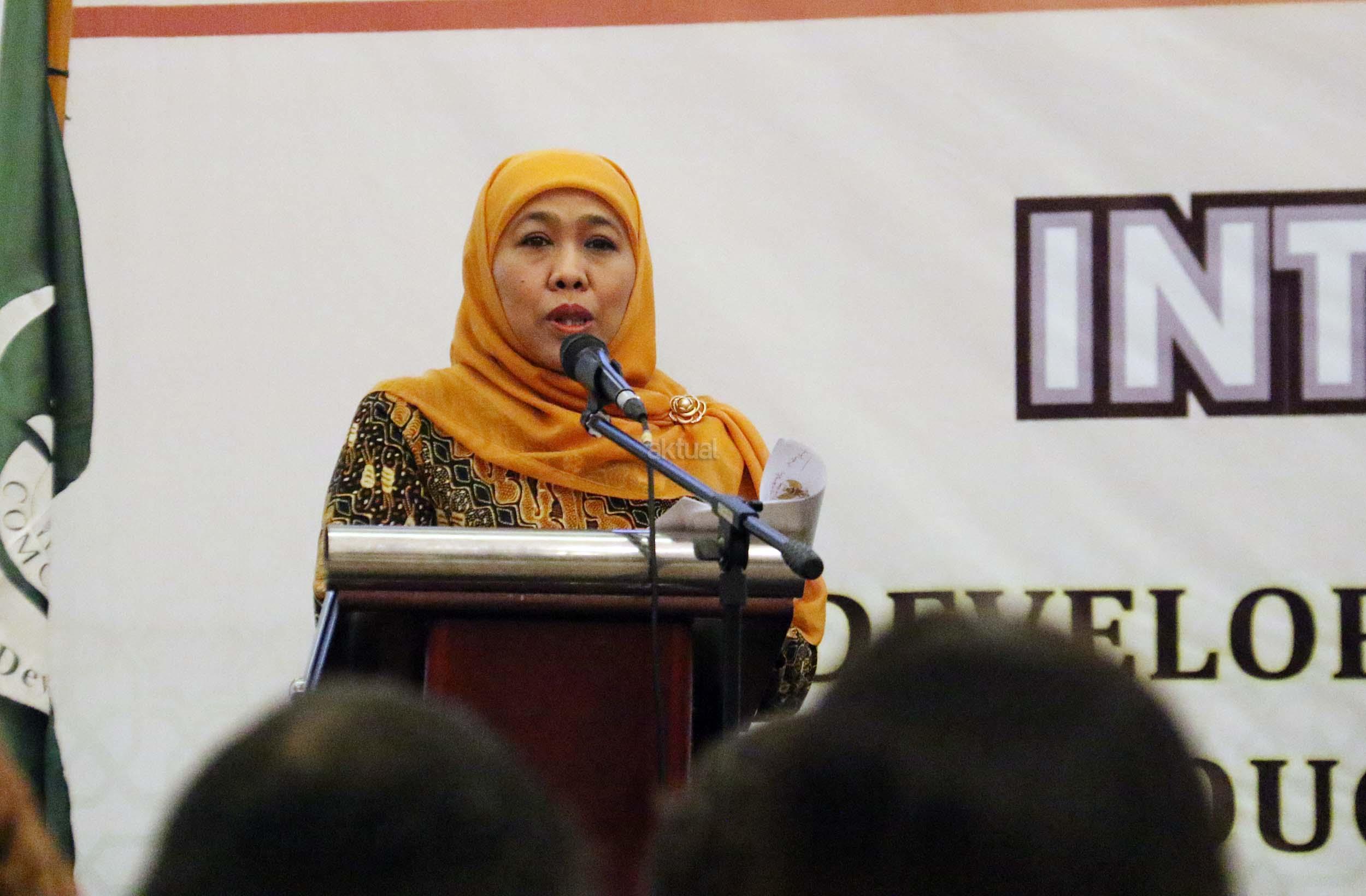 Menteri Sosial Khofifah Indar Parawansa berpidato dan sekaligus membuka acara COMCEC bekerja bersama Kementerian Sosial dalam kegiatan The International Conference on Developing Local Initiatives for Poverty Alleviation Based on Community Through Sustainable Livelihood, di Jakarta, Selasa (8/11/2016). Dalam acara The International Conference on Developing Local Initiatives for Poverty Alleviation Based on Community Through Sustainable Livelihood ini mengambil tema Integrasi Program di Kementerian Sosial dalam Penanggulangan Kemiskinan melalui Penghidupan Berkelanjutan. AKTUAL/Munzir