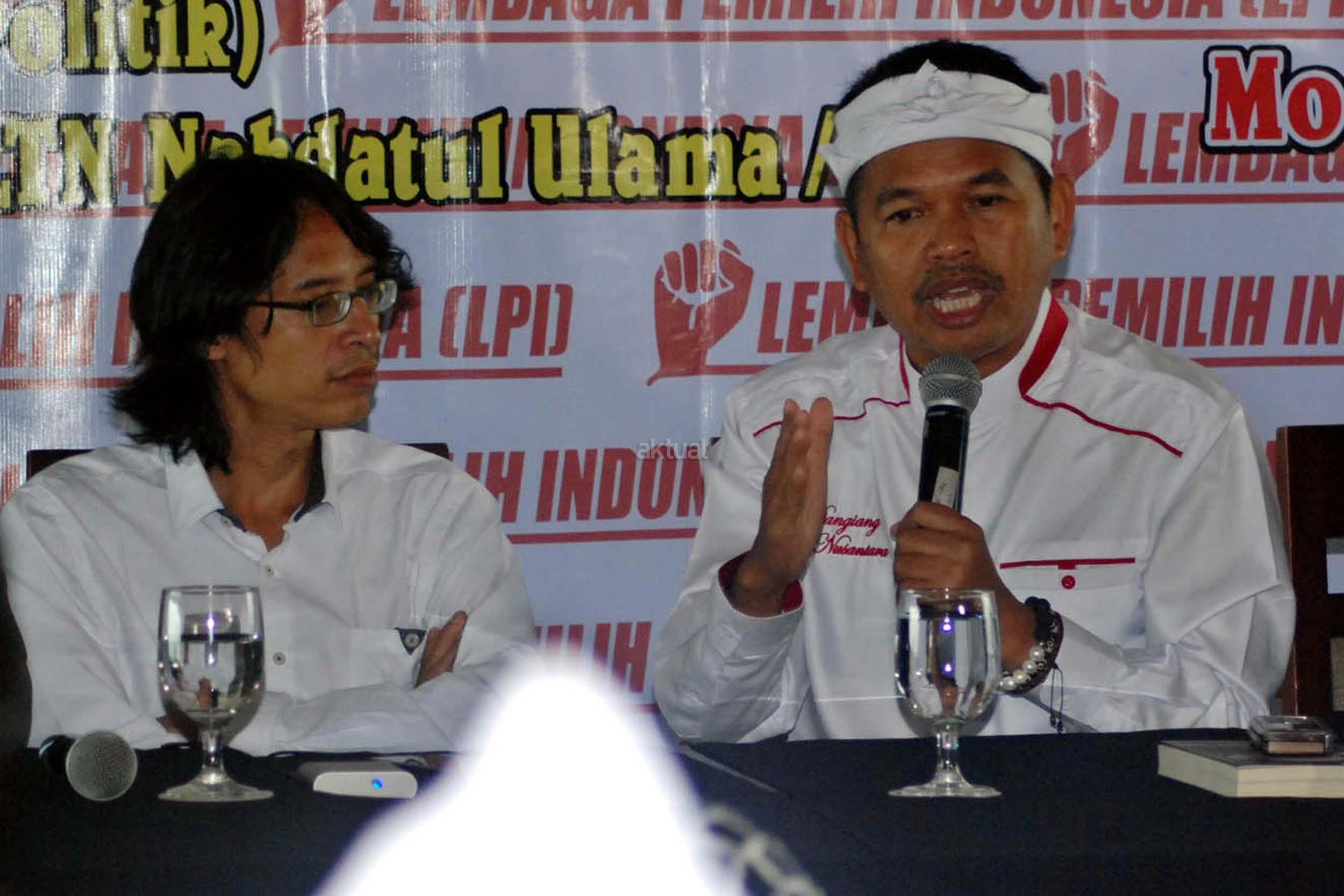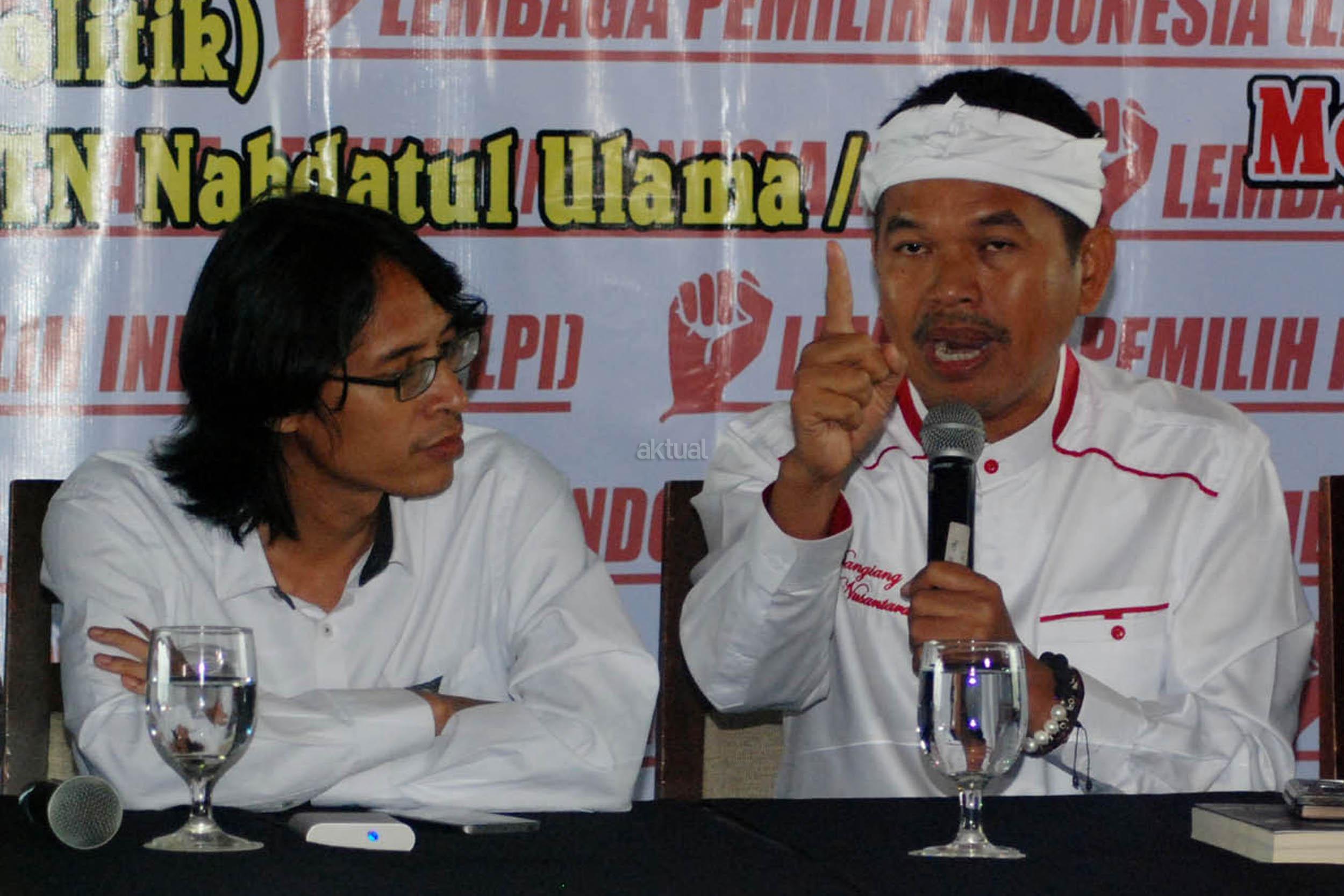 Bupati Purwakarta Dedi Mulyadi, bersama Sekretaris LTN NU Syafiq Alieha, berbicara saat diskusi publik Merawat Keindonesiaan yang diselenggarakan Lembaga Pemilih Indonesia (LPI) di Jakarta, Rabu (8/2/2017). Diskusi mengambil tema ‘Aksi 112 dan Kuda Troya Demokrasi. AKTUAL/Munzir