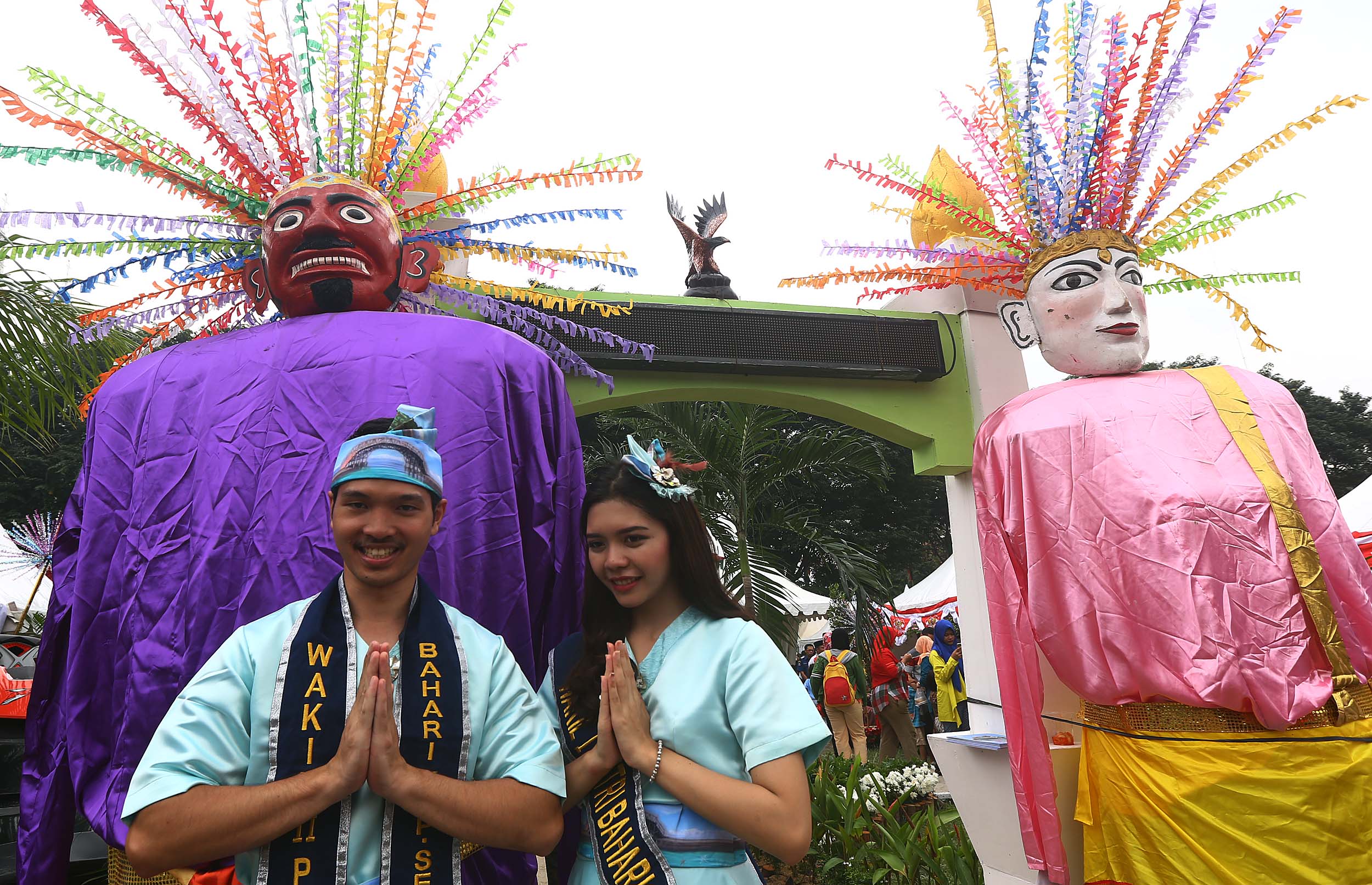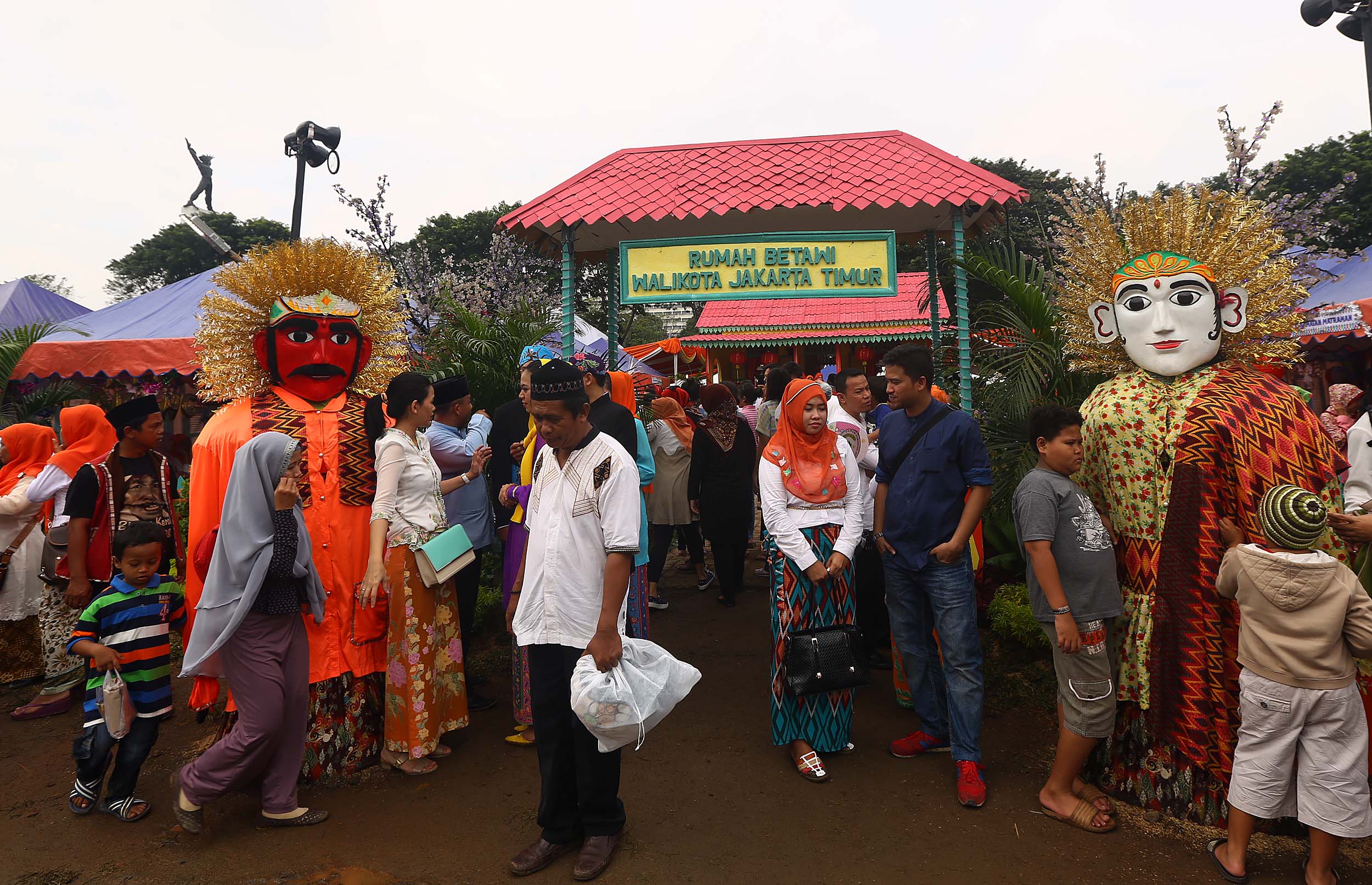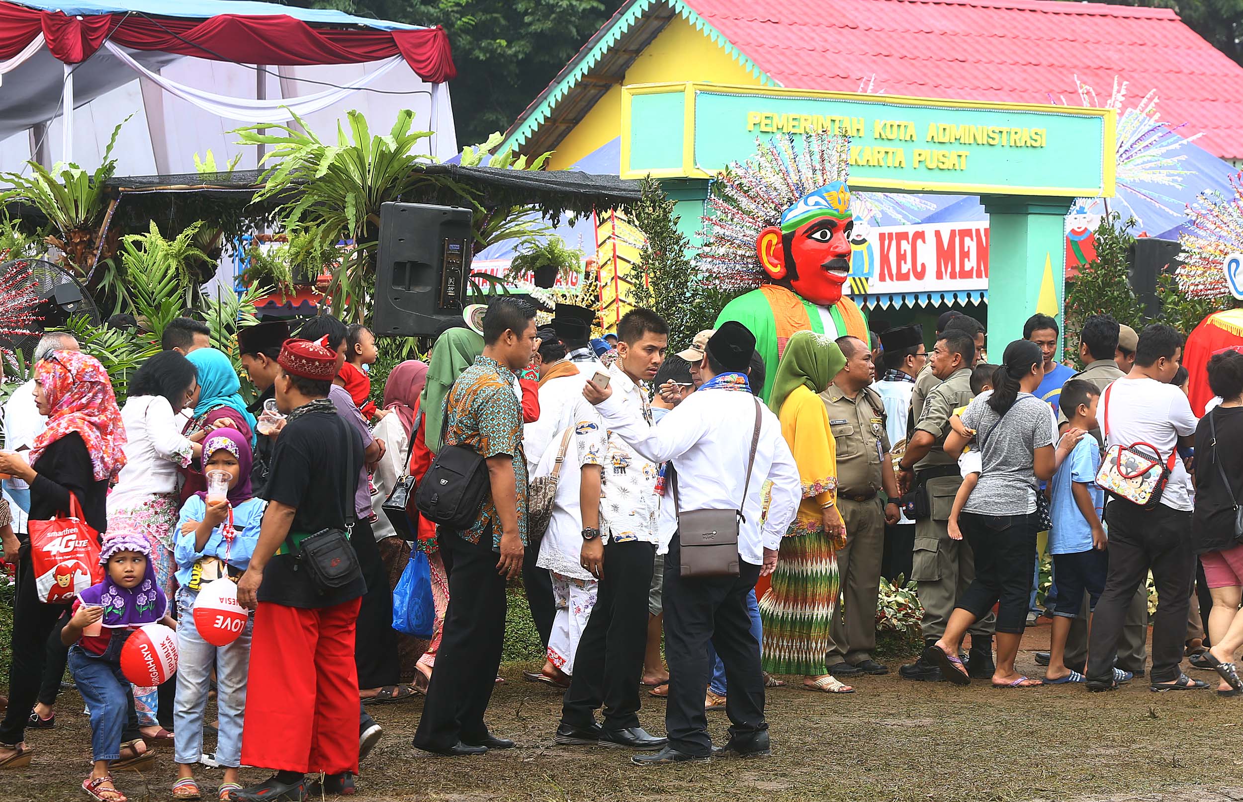 Pengunjung memadati Festival Lebaran Betawi IX di Lapangan Banteng, Jakarta, Minggu (14/8/2016). Agenda tahunan tersebut diselenggarakan sebagai sarana dan wadah menjalin silaturahmi sekaligus destinasi wisata budaya Betawi.