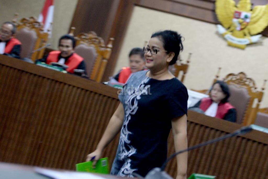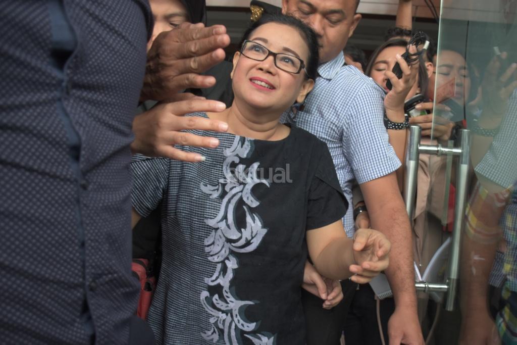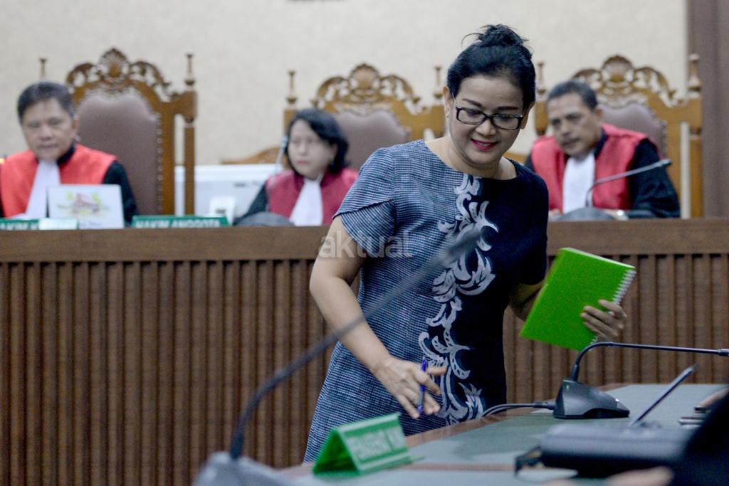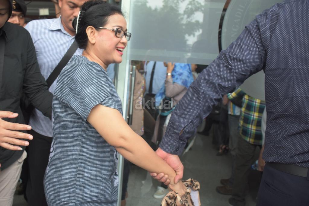 Terdakwa kasus pemberian keterangan yang tidak benar saat bersaksi dalam sidang perkara korupsi pengadaan KTP-el, Miryam S Haryani, keluar ruangan seusai menjalani sidang putusan di Pengadilan Tipikor, Jakarta, Senin (13/11). Miryam divonis lima tahun penjara dan denda Rp200 juta subsider tiga bulan kurungan. AKTUAL/Tino Oktaviano