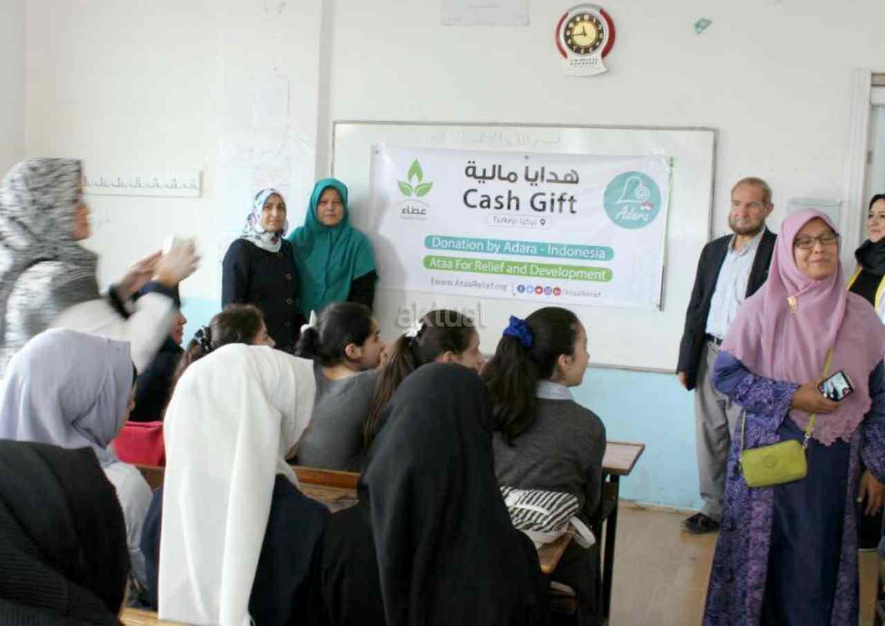Ketua Adara Relief International, Nurjanah Hulwani (kanan), menyerahkan bantuan secara simbolik bagi anak-anak pengungsi Suriah yang belajar di sekolah Athaa’ Relief di wilayah Gungoren, Kota Istanbul Turki. Bantuan diterima oleh Direktur Pendidikan Athaa’ Relief, Abdul Halim (kiri), Rabu (24/5/2017). Bantuan untuk warga Suriah, khususnya Aleppo dan Idlib, diserahkan melalui lembaga sosial kemanusiaan Athaa’ Relief yang berkantor di Istanbul Turki. AKTUAL/HO