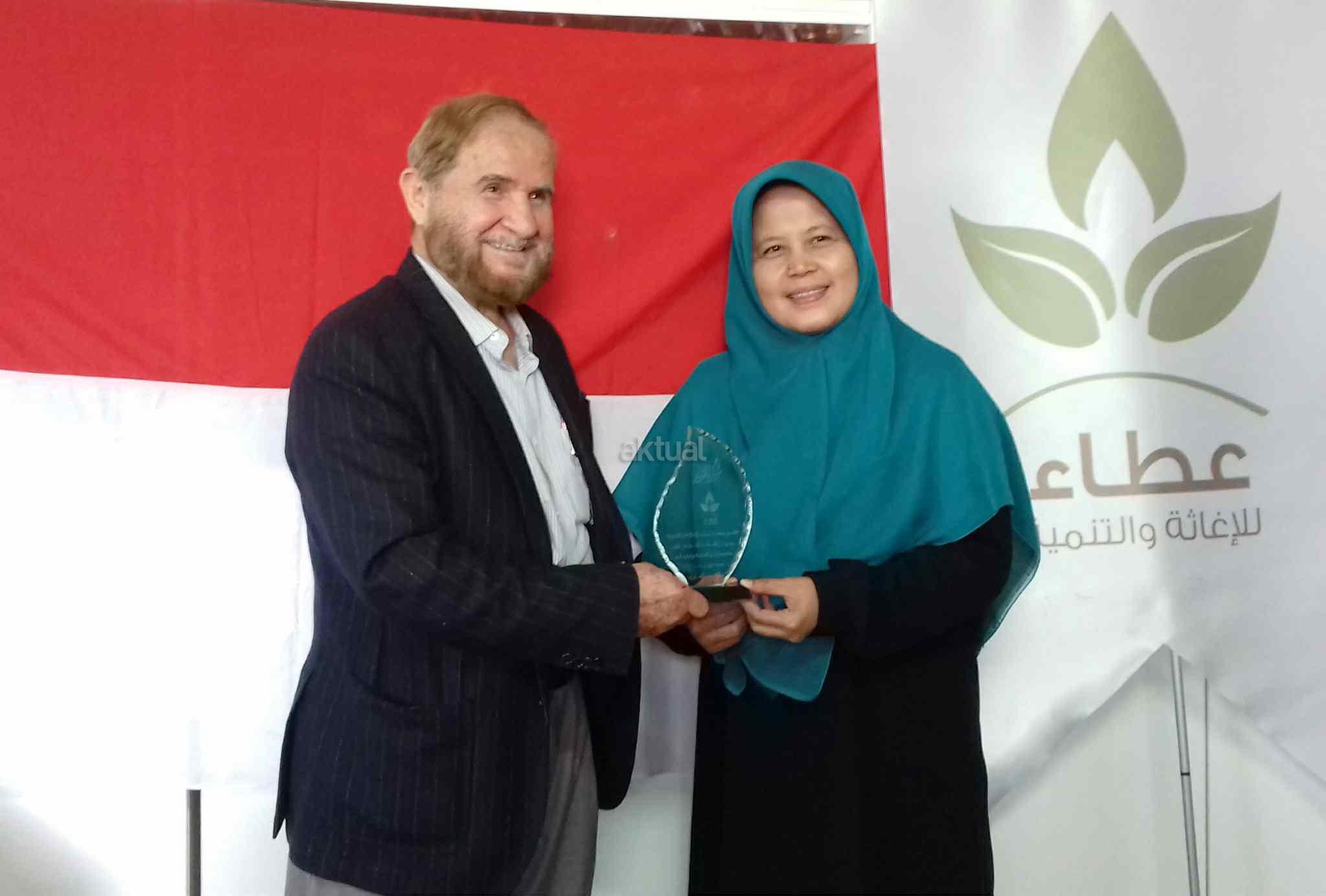 Ketua Adara Relief International, Nurjanah Hulwani, menyerahkan bantuan secara simbolik kepada Manajer Athaa’ Relief cabang Provinsi Hatay Turki Selatan, Mohammad Amin, di kantor Athaa’ Relief Hatay, Kamis (25/5/2017). Bantuan untuk warga Suriah, khususnya Aleppo dan Idlib, diserahkan melalui lembaga sosial kemanusiaan Athaa’ Relief yang berkantor di Istanbul Turki. AKTUAL/HO