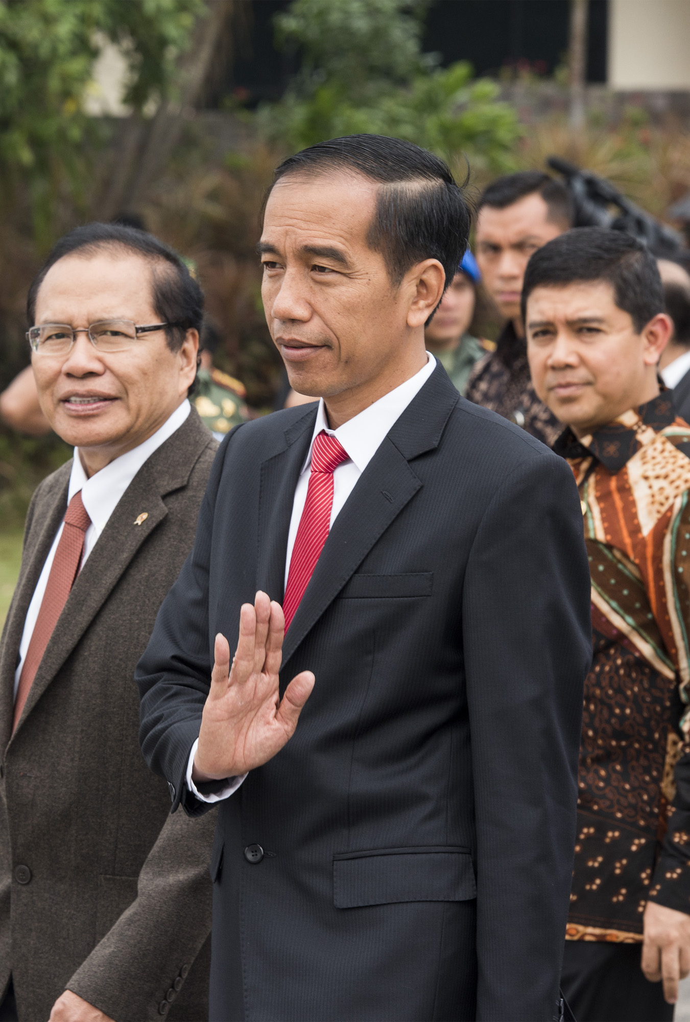 Presiden Joko Widodo (tengah) didampingi Menko Bidang Maritim dan Sumber Daya Rizal Ramli (kiri) dan Menteri Pendayagunaan Aparatur Negara dan Reformasi Birokrasi Yuddy Chrisnandi (kanan) berjalan menuju pesawat di Bandara Internasional Halim Perdanakusumah, Jakarta, Jumat (11/9). Joko Widodo akan melaksanakan kunjungan kenegaraan ke Arab Saudi, Qatar, dan Uni Emirat Arab untuk pembicaraan kerja sama di bidang ekonomi. ANTARA FOTO/M Agung Rajasa/Spt/15.