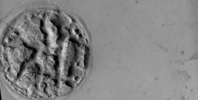 “Hal ini sangat mungkin terjadi, bila vulkanisme berperan dalam menciptakan gundukan tersebut. Mungkin lava telah masuk ke bawah gundukan itu dan mendorongnya dari bawah. Jumlah tanah Mars tersebar, sehingga tidak tertutup kemungkinan jumlah es dalam gundukan itu terdorong oleh panas lava. Namun, rancangan seperti ini di wilayah permukaan Mars sangat membingungkan para ilmuwan.”