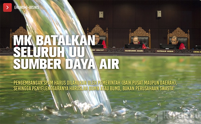 “Persyaratan konstitusionalitas UU SDA tersebut adalah bahwa UU SDA dalam pelaksanaannya harus menjamin terwujudnya amanat konstitusi tentang hak penguasaan negara atas air,” kata Wakil Ketua MK, Anwar Usman, seperti dikutip dari laman resmi Mahkamah Konstitusi.