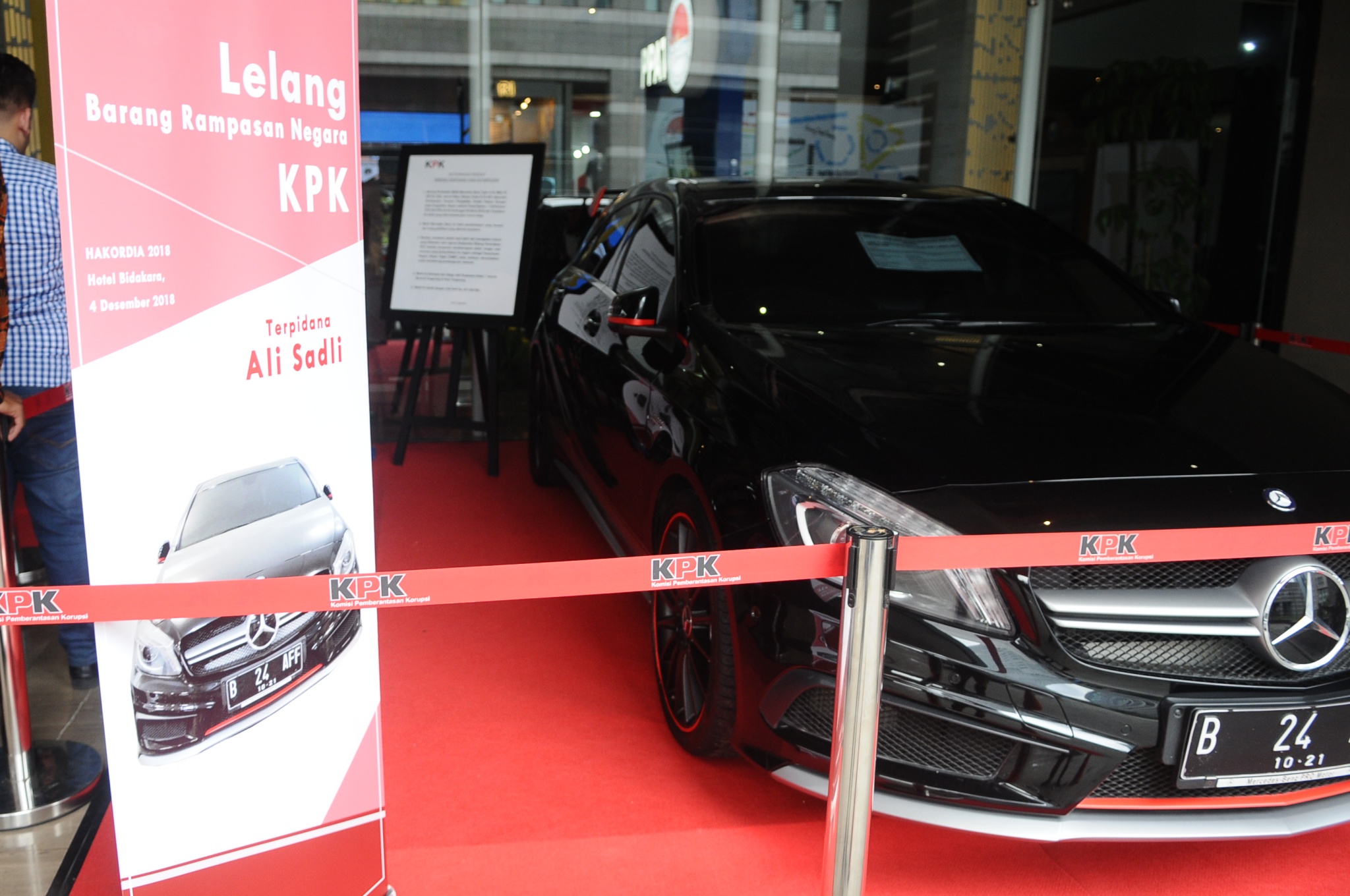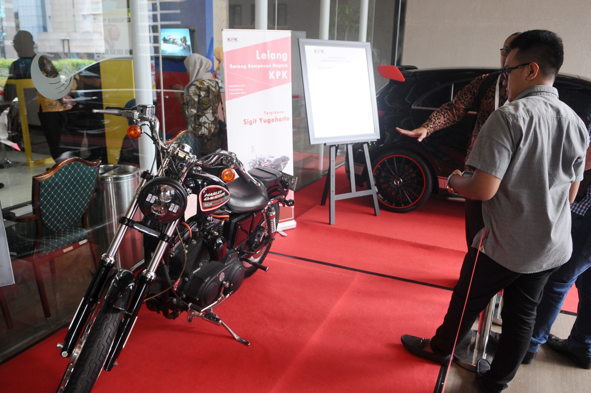 Mobil Mercedes Benz milik Ali Sadli yang juga auditor BPK memiliki nilai limit sebesar Rp 821 juta dan Sepeda Motor Harley Davidson milik auditor BPK, Sigit Yugoharto ini ditaksir memiliki nilai Rp 72 juta dilelang saat peringatan Hari Anti Korupsi di Bidakara, Jakarta, Selasa (4/12/2018). AKTUAL/Tino Oktaviano