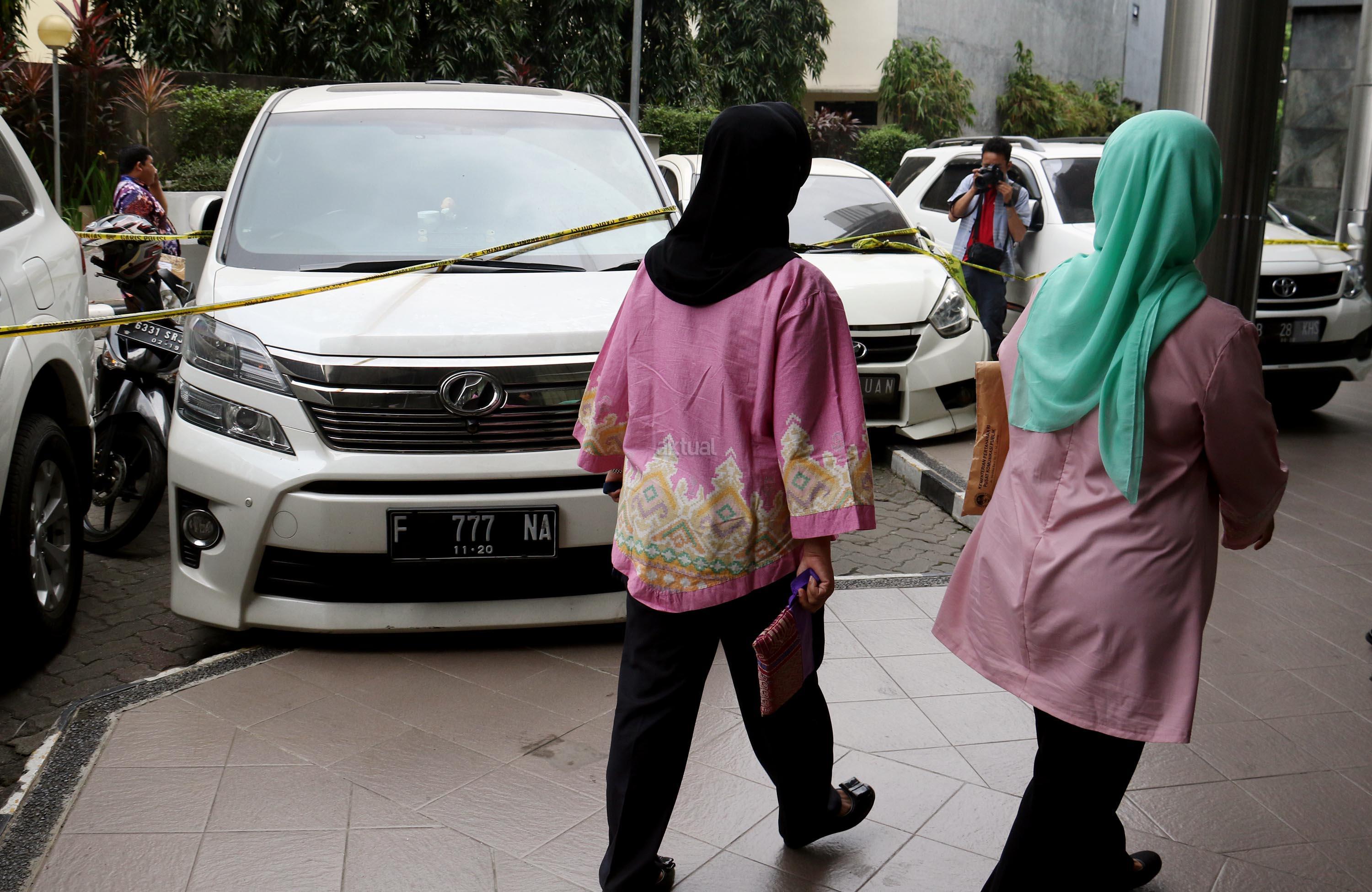 Warga melintas didepan deretan mobil mewah bos PT First Travel di Bareskrim Polri, Gedung KKP, Jakarta, Jumat (25/8/2017). Penyidik Bareskrim Mabes Polri menyita enam unit mobil mewah milik bos First Travel, Andika Surachman dan istrinya, Anniesa Desvitasari diantaranya enam mobil tersebut terdiri dari Pajero Sport Dakar putih dengan nopol F-111-PT, VW Caravelle putih dengan nopol F-805-FT, Toyota Vellfire putih dengan nopol F-777-NA, Daihatsu Sirion putih dengan nopol B-288-UAN, Toyota Innova hitam seri E dengan nopol B-1866-URD dan Toyota Avanza silver seri G matic dengan nopol B-1886-UZH. AKTUAL/Munzir