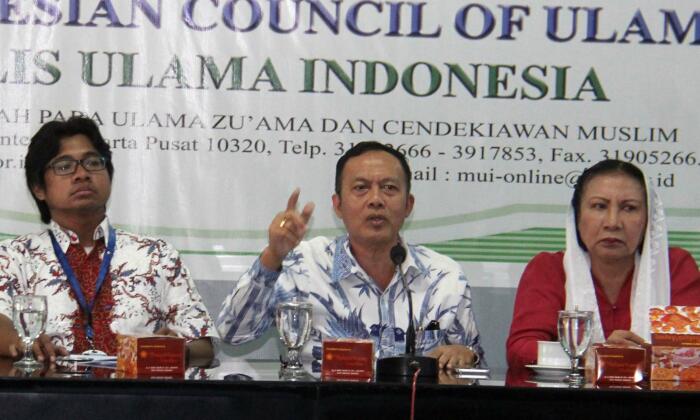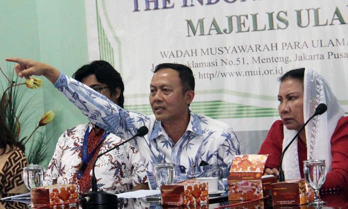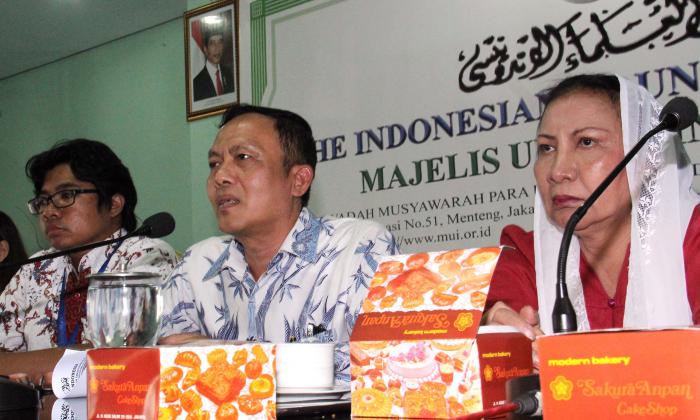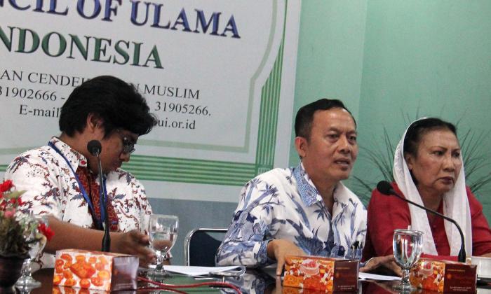 Kiri-kanan ; LBH Jakarta Mathiu, Wakil Ketua Komisi Hukum dan Perundang-undangan MUI Ikhsan Abdulah, Budayawan Ratna Sarumpaet saat menggelar jumpar pers di kantor Majelis Ulama Indonesia (MUI) Pusat, Jakarta, Kamis (19/5/2016). Dalam jumpa persnya MUI mendesak agar Gubenur DKI Basuki Tjahja Purnama (Ahok) untuk tidak melakukan penggusuran ataupun melakukan perubahan apapun khusus untuk Kampung Luar Batang dan mengingat Masjid Kampung Luar Batang dan makam keramat Habib Husen bin Abu Bakar Alydrus yang merupakan tempat bersejarah yang harus di lestarikan.