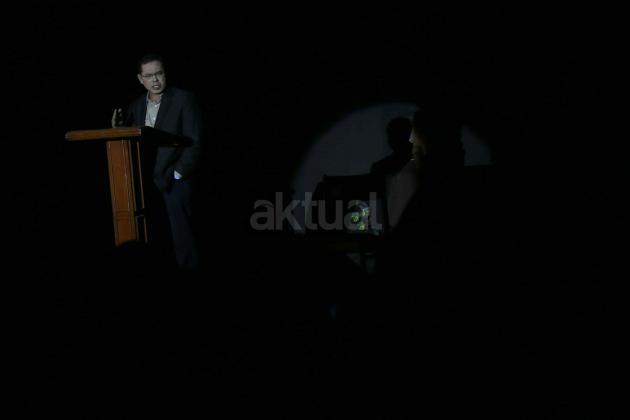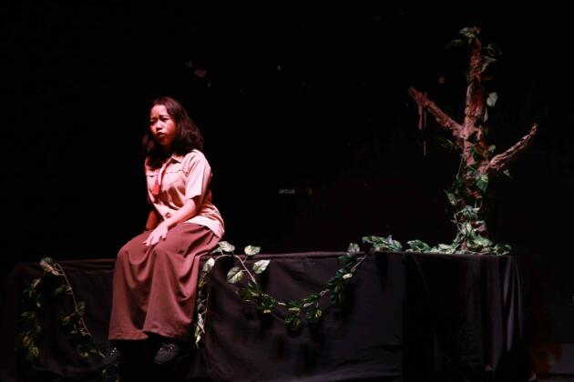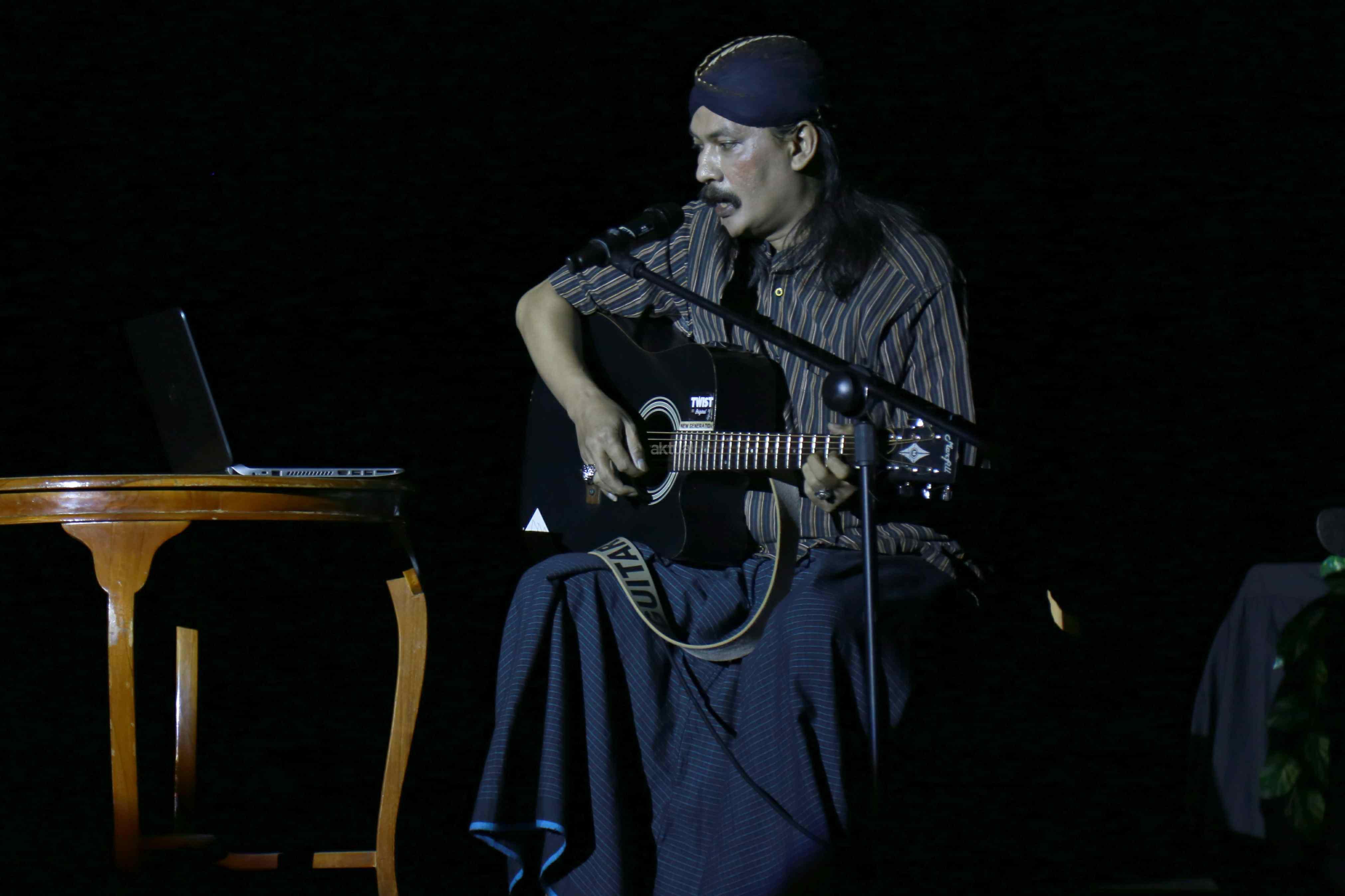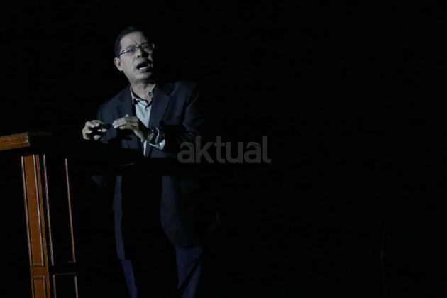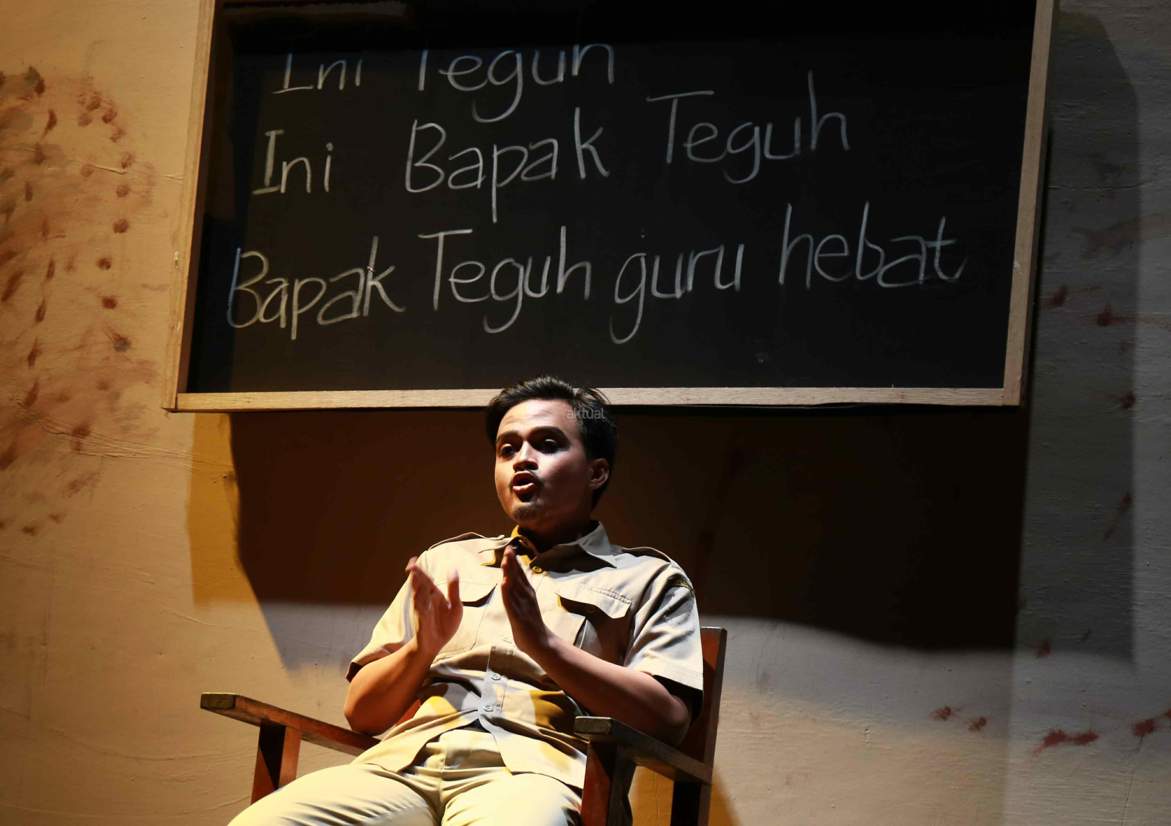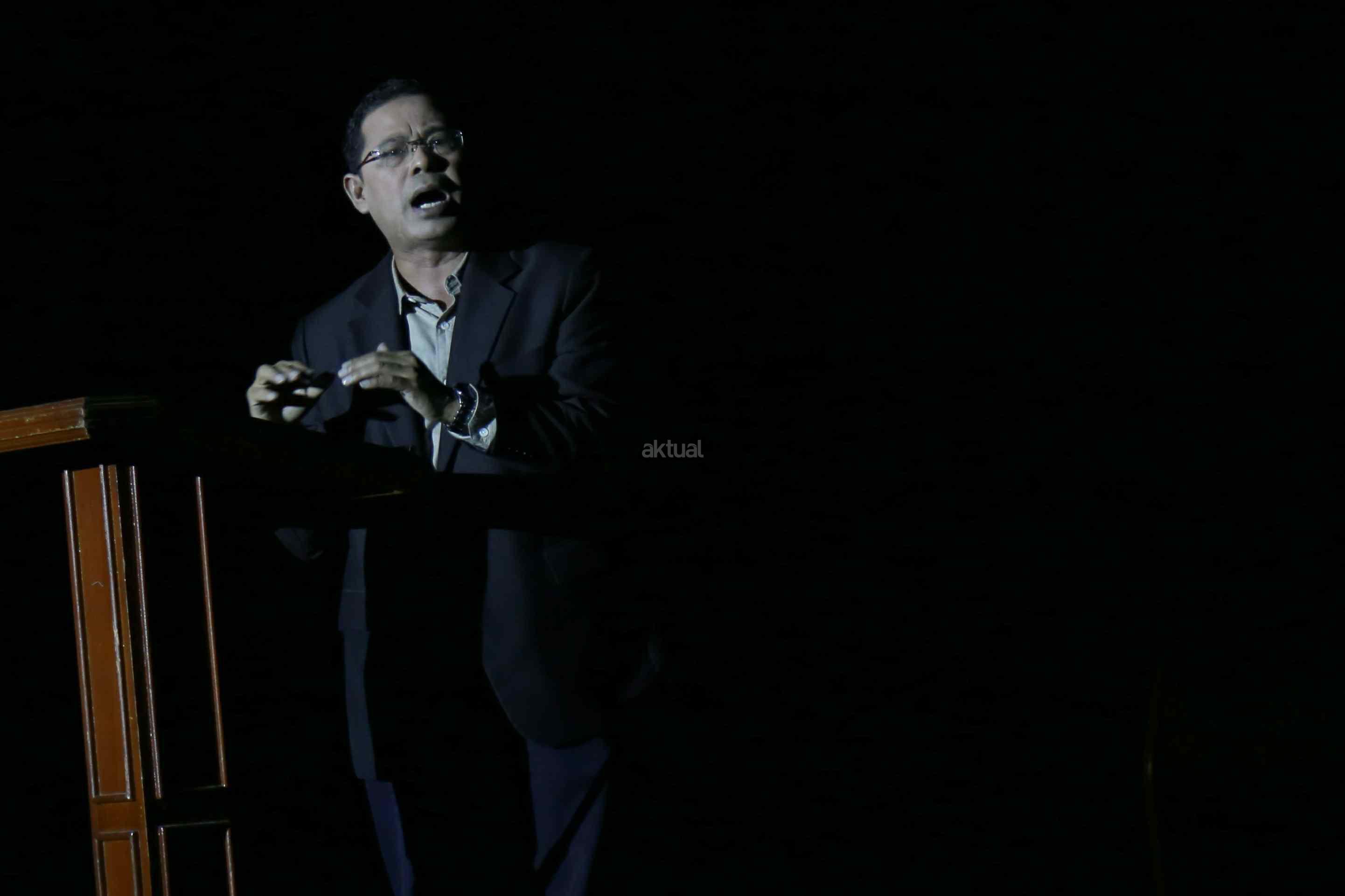 Pendiri Teater Sastra Universitas Indonesia (UI), Yudhi Soenarto saat mementaskan multi monolog Mencari Nirani "Namaku Yuyun.... Aku Korban Kebodohan" di Auditorium Gedung IX, FIB UI Depok, Kamis (26/5) malam. Teater Sastra Universitas Indonesia mementaskan multi monolog ini sebagai bentuk keprihatinan sekaligus kemarahan di masyarakat. Seakan tidak percaya kejadian-kejadian getir itu terjadi berulang-ulang. Ironisnya, pelaku dan korban sebagian masih anak-anak. AKTUAL/TINO OKTAVIANO