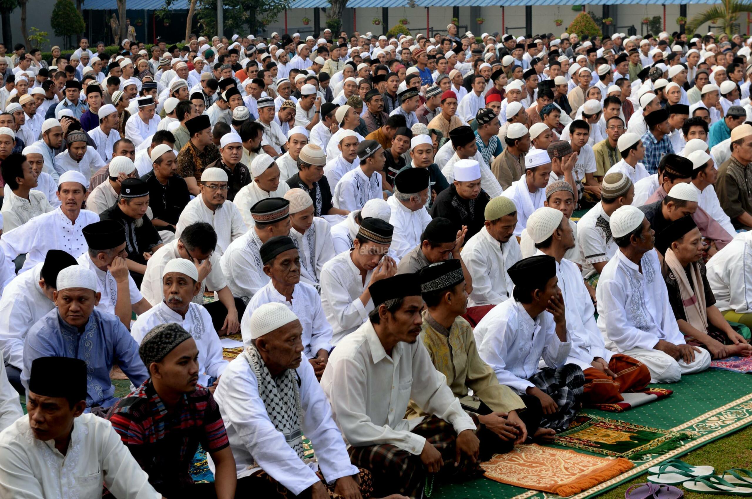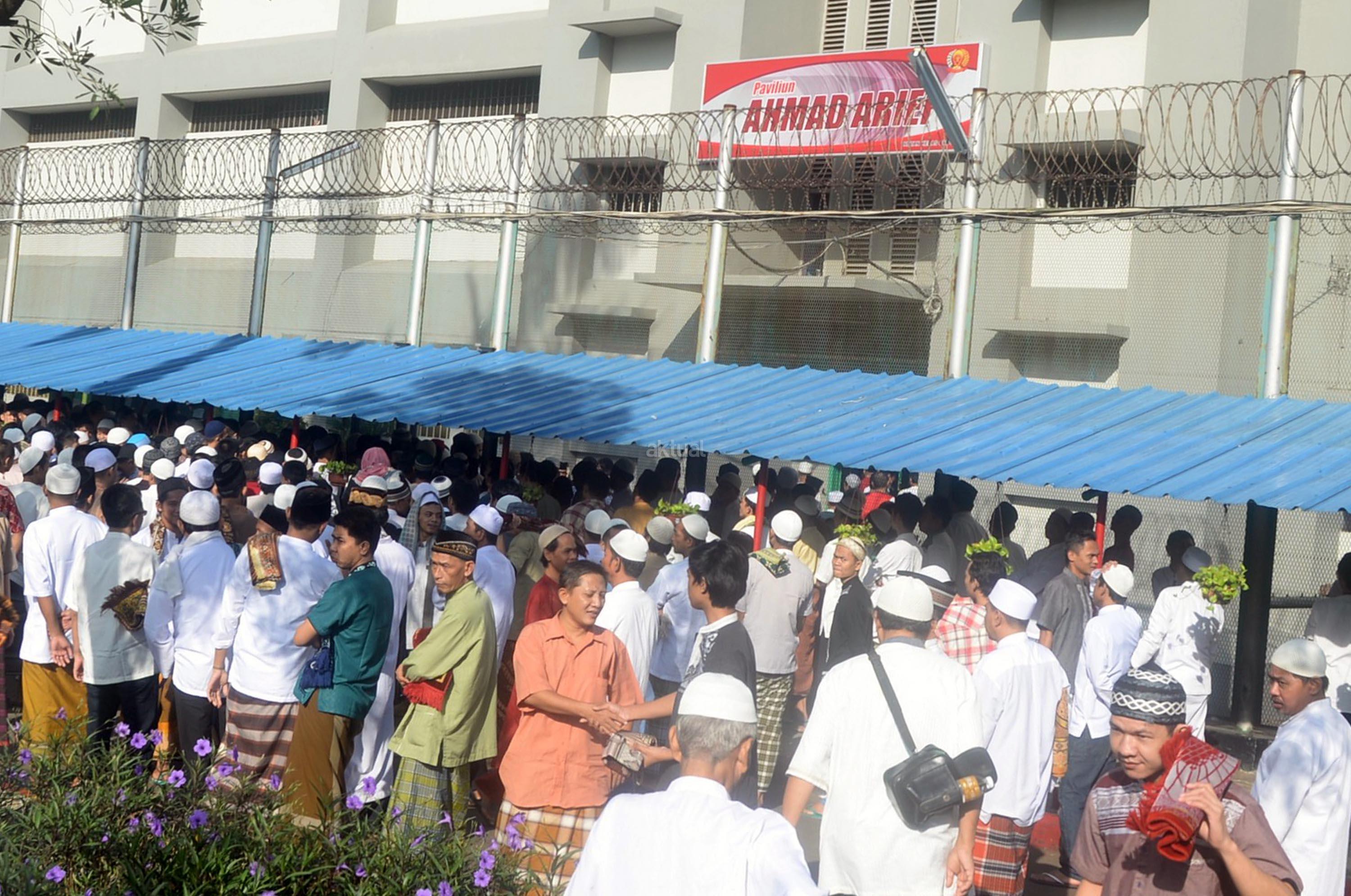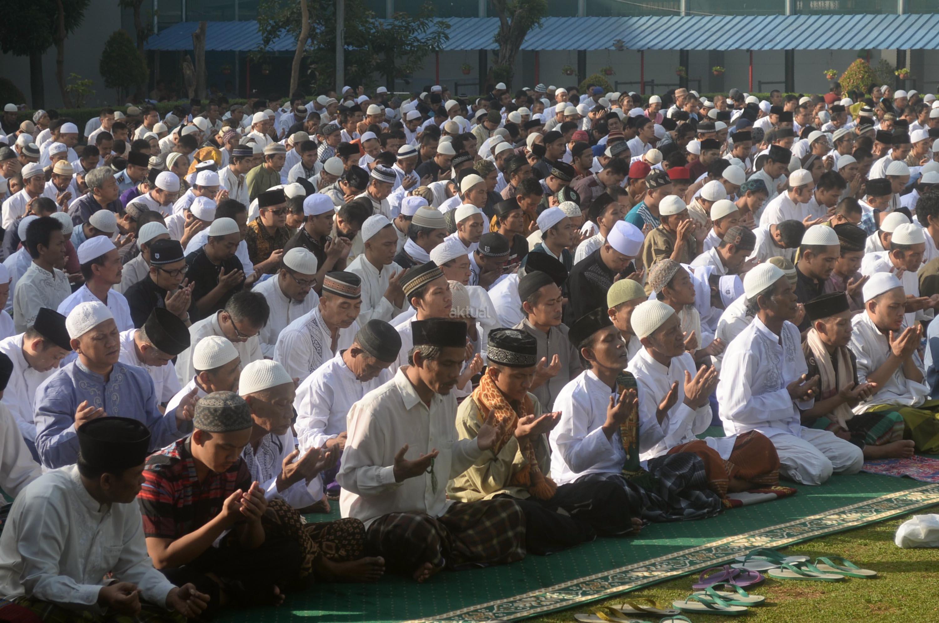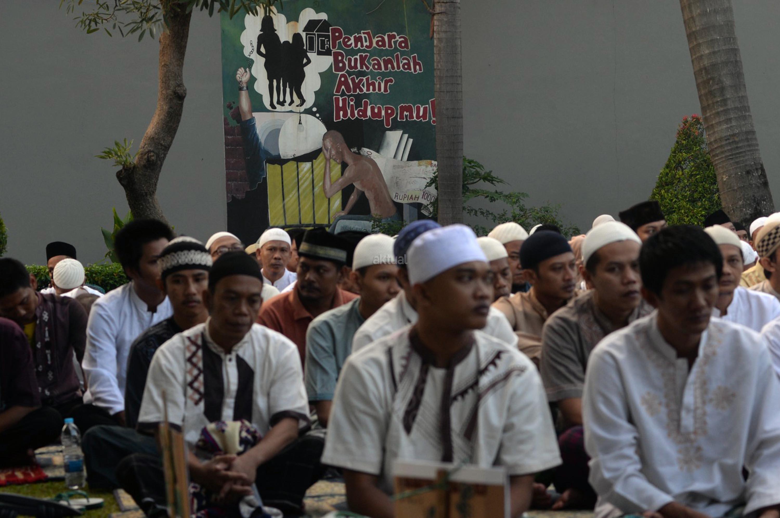 Ribuan narapidana dan petugas lapas melaksanakan Shalat Idul Fitri di Rutan Kelas I Cipinang, Jakarta, Minggu (25/6/2017). Hari Raya Idul Fitri 1438 H disambut umat Muslim dengan melaksanakan Shalat Id di sejumlah masjid dan tempat terbuka. AKTUAL/Munzir