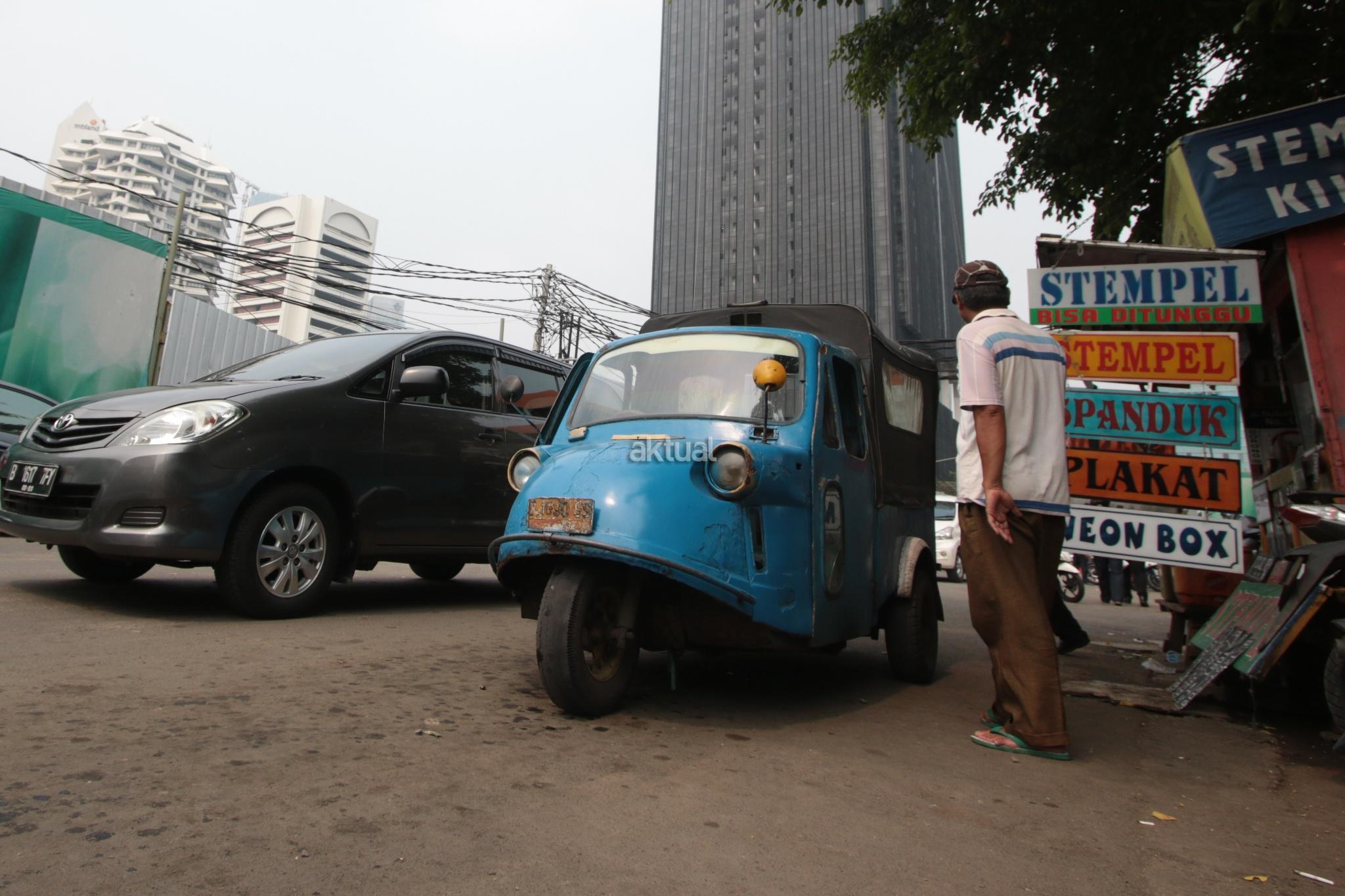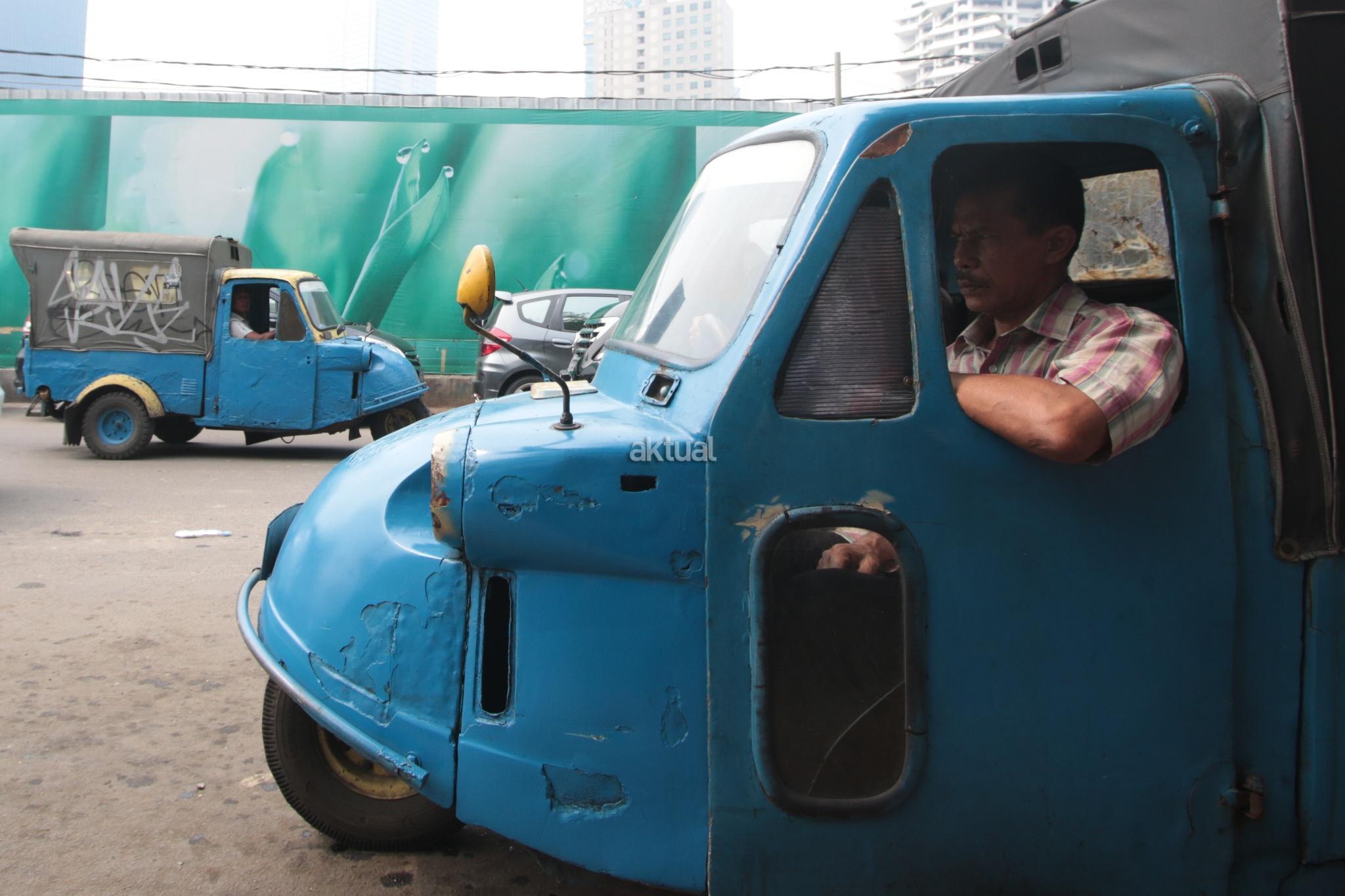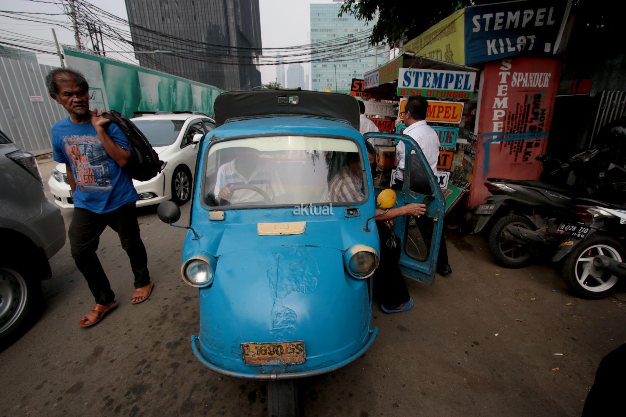 Kendaraan transportasi umum Bemo di kawasan Bendungan Hilir, Jakarta Pusat, Selasa (25/7). Surat Edaran Kadishub Nomor 84/SE/2017 membuat nasib bemo di ujung tanduk. Mobil barang buatan Jepang tersebut harus rela tempatnya diganti moda transportasi yang lebih modern. AKTUAL/Tino Oktaviano