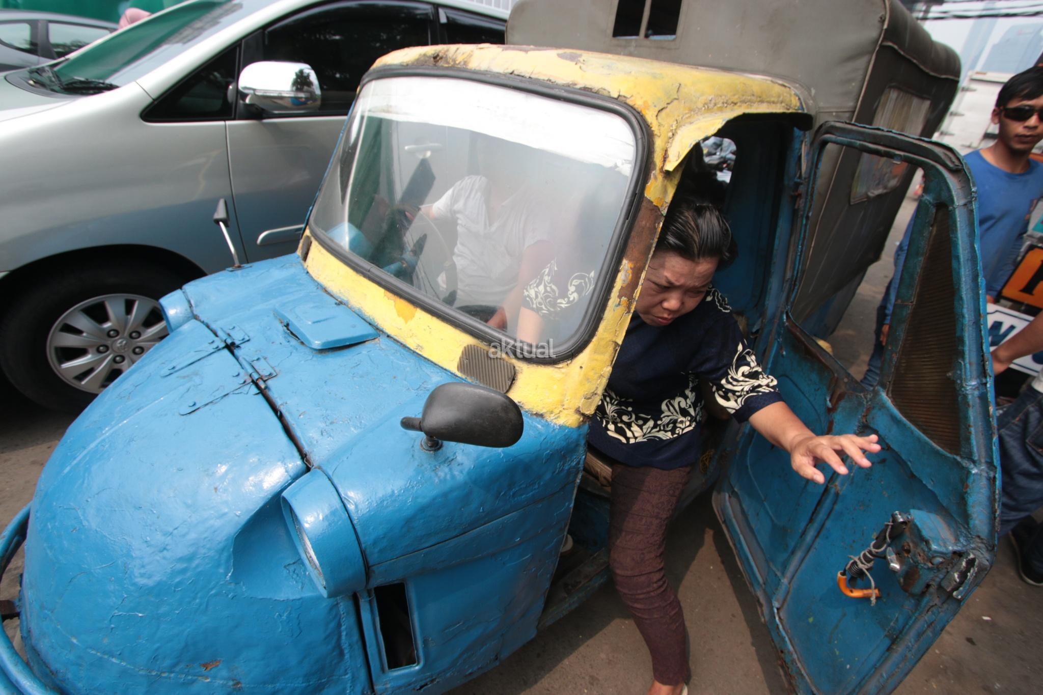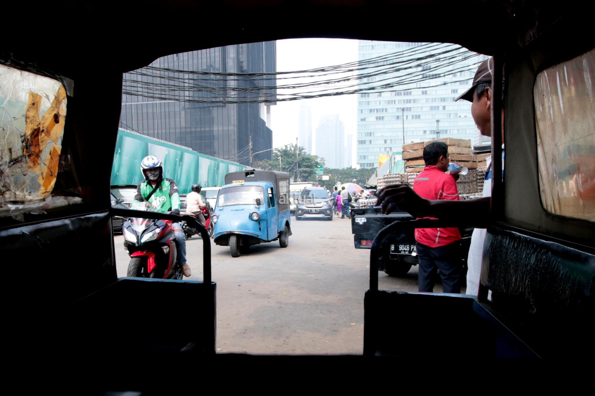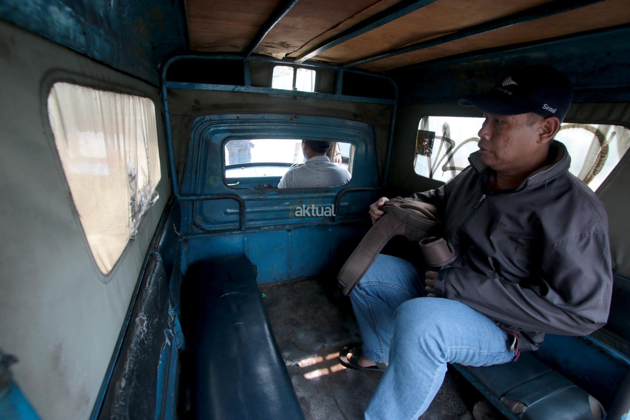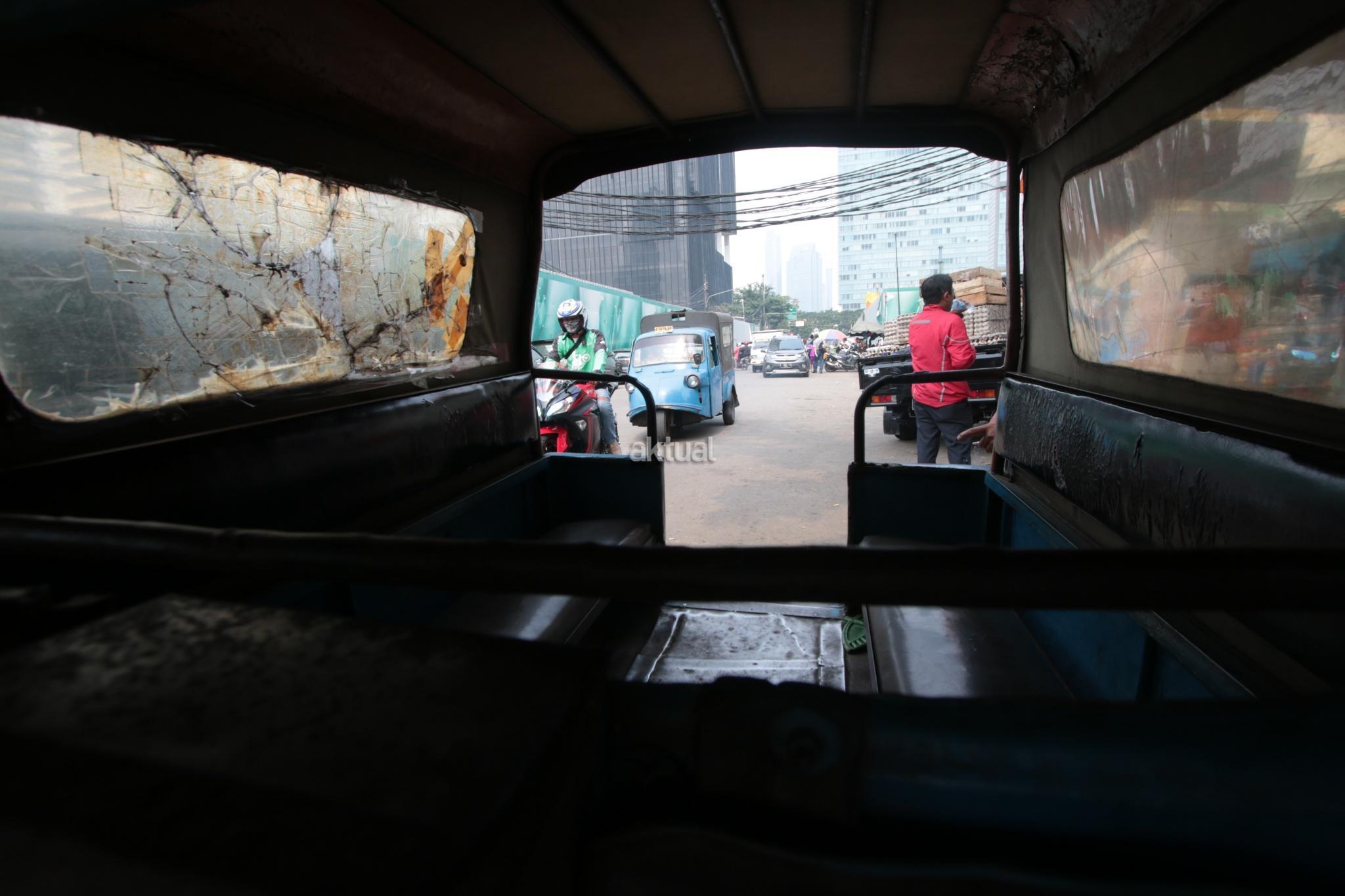 Seorang penumpang duduk saat menaiki kendaraan transportasi umum Bemo di kawasan Bendungan Hilir, Jakarta Pusat, Selasa (25/7). Surat Edaran Kadishub Nomor 84/SE/2017 membuat nasib bemo di ujung tanduk. Mobil barang buatan Jepang tersebut harus rela tempatnya diganti moda transportasi yang lebih modern. AKTUAL/Tino Oktaviano