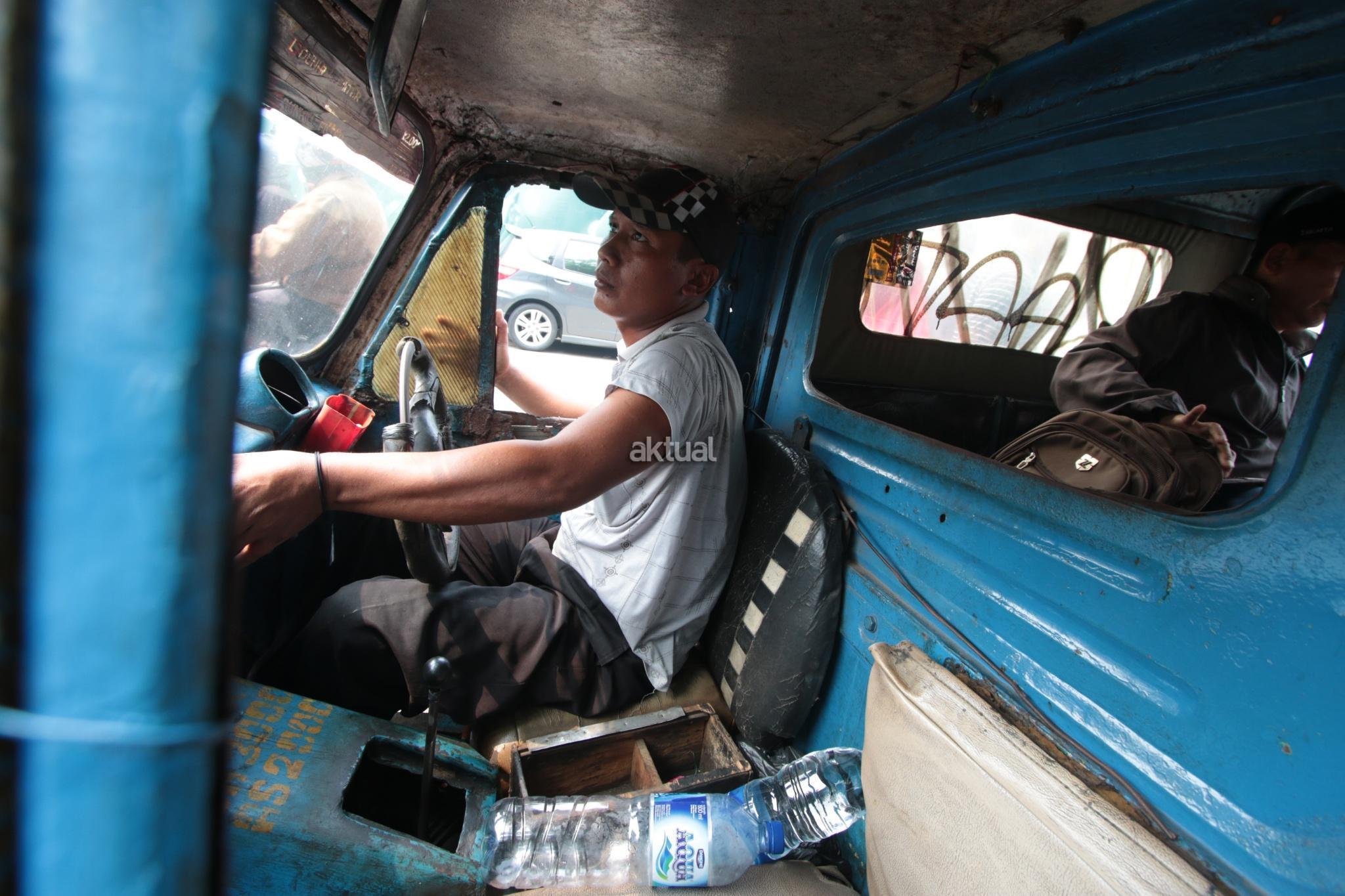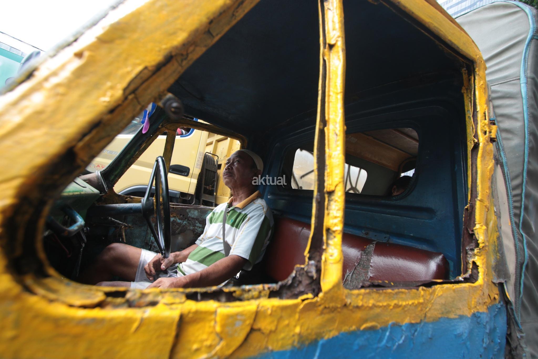Seorang pengemudi saat menunggu penumpang penumpang duduk di kawasan Bendungan Hilir, Jakarta Pusat, Selasa (25/7). Surat Edaran Kadishub Nomor 84/SE/2017 membuat nasib bemo di ujung tanduk. Mobil barang buatan Jepang tersebut harus rela tempatnya diganti moda transportasi yang lebih modern. AKTUAL/Tino Oktaviano