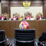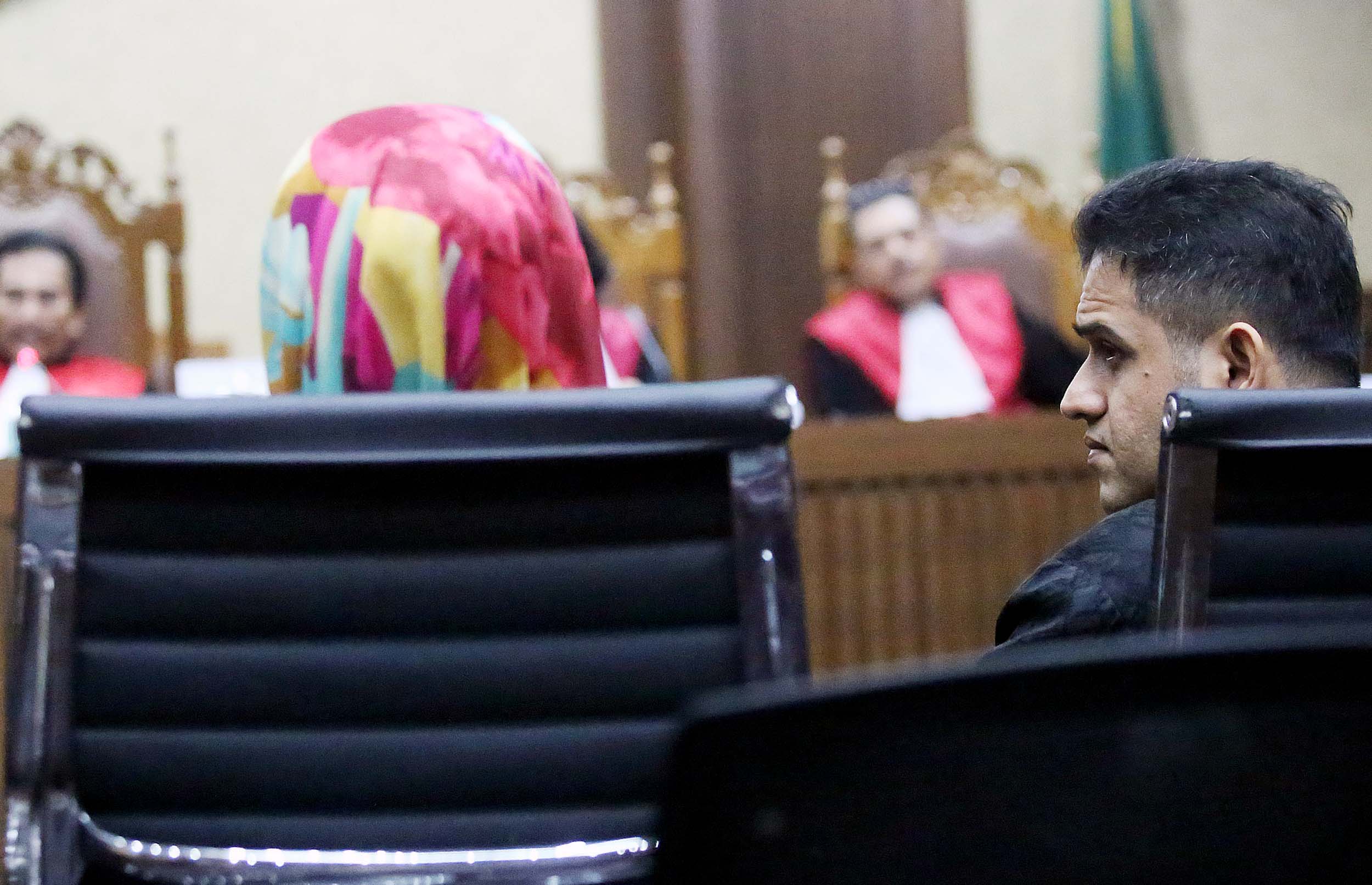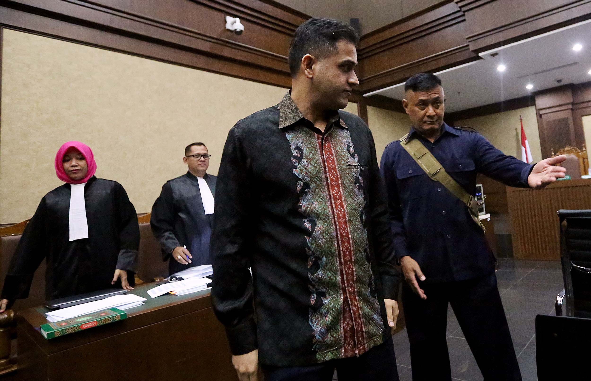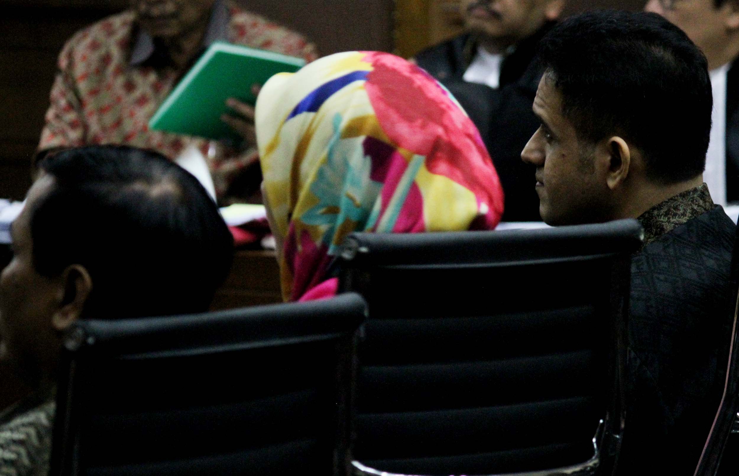 Mantan Bendahara Umum Partai Demokrat M Nazaruddin , saat menjadi saksi dalam sidang lanjutan kasus proyek pengadaan paket penerapan Kartu Tanda Penduduk berbasis Nomor Induk Kependudukan secara nasional (e-KTP) di Pengadilan Tipikor, Jakarta, Senin (3/4/2017). Selain Nazaruddin, Jaksa Penuntut Umum KPK dijadwalkan memanggil sembilan saksi lainnya, yakni Dian Hasanah, M Jafar Hafsah, Khatibul Umam, Yosep Sumartono, Vidi Gunawan, Munawar, Melchias Marcus Mekeng, Olly Dondokambey, dan Eva Omvita. AKTUAL/Munzir