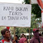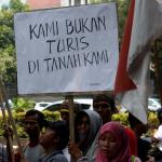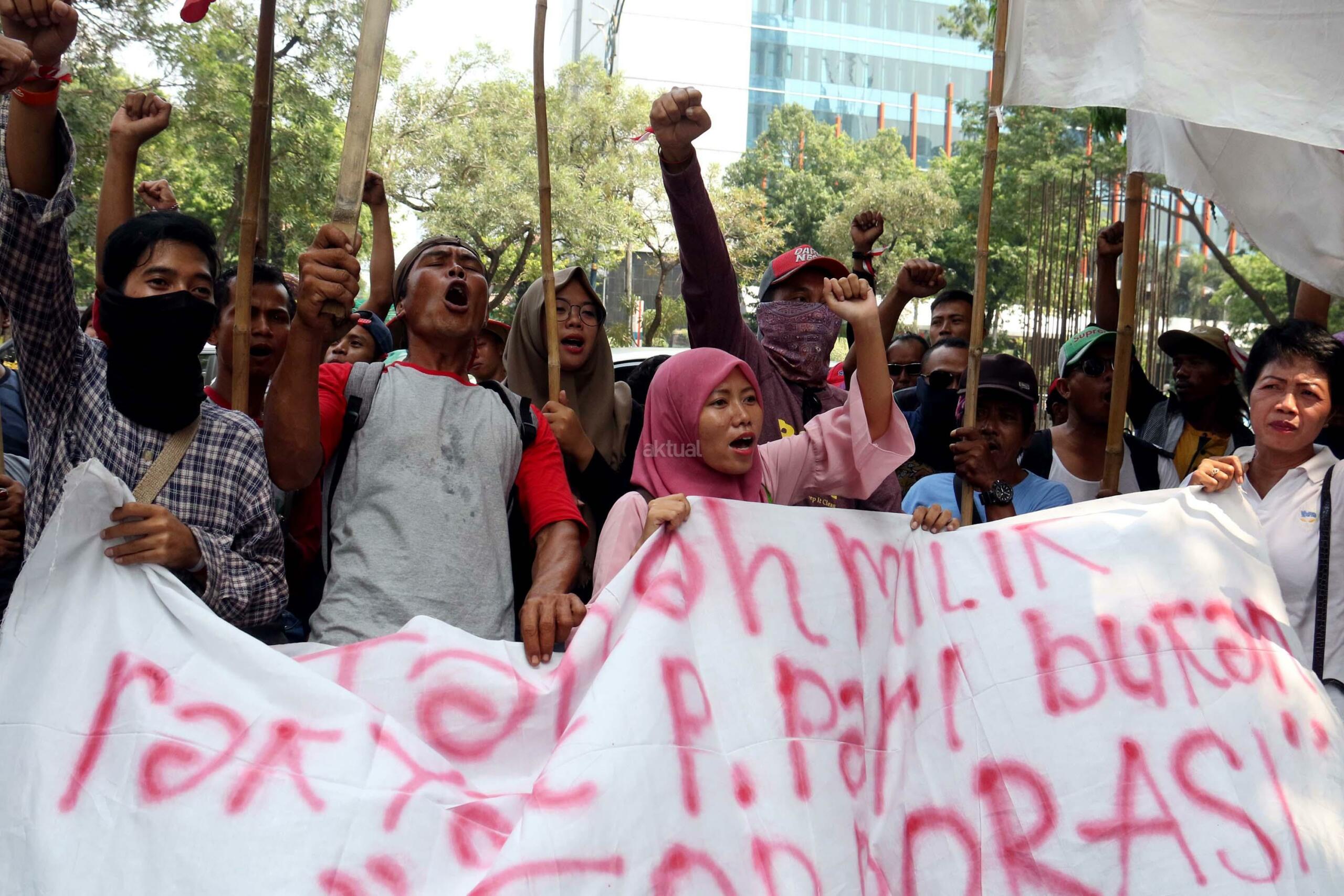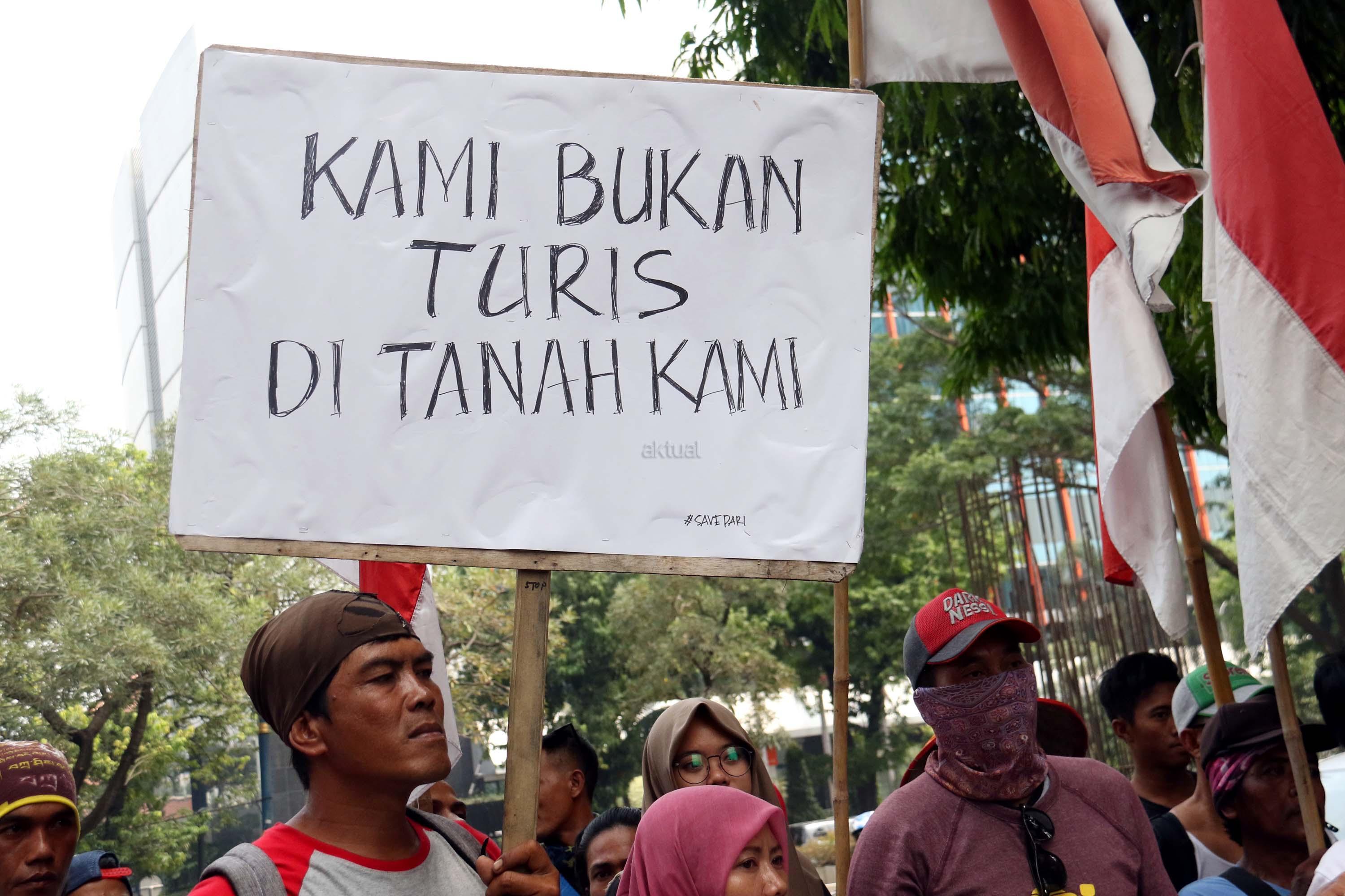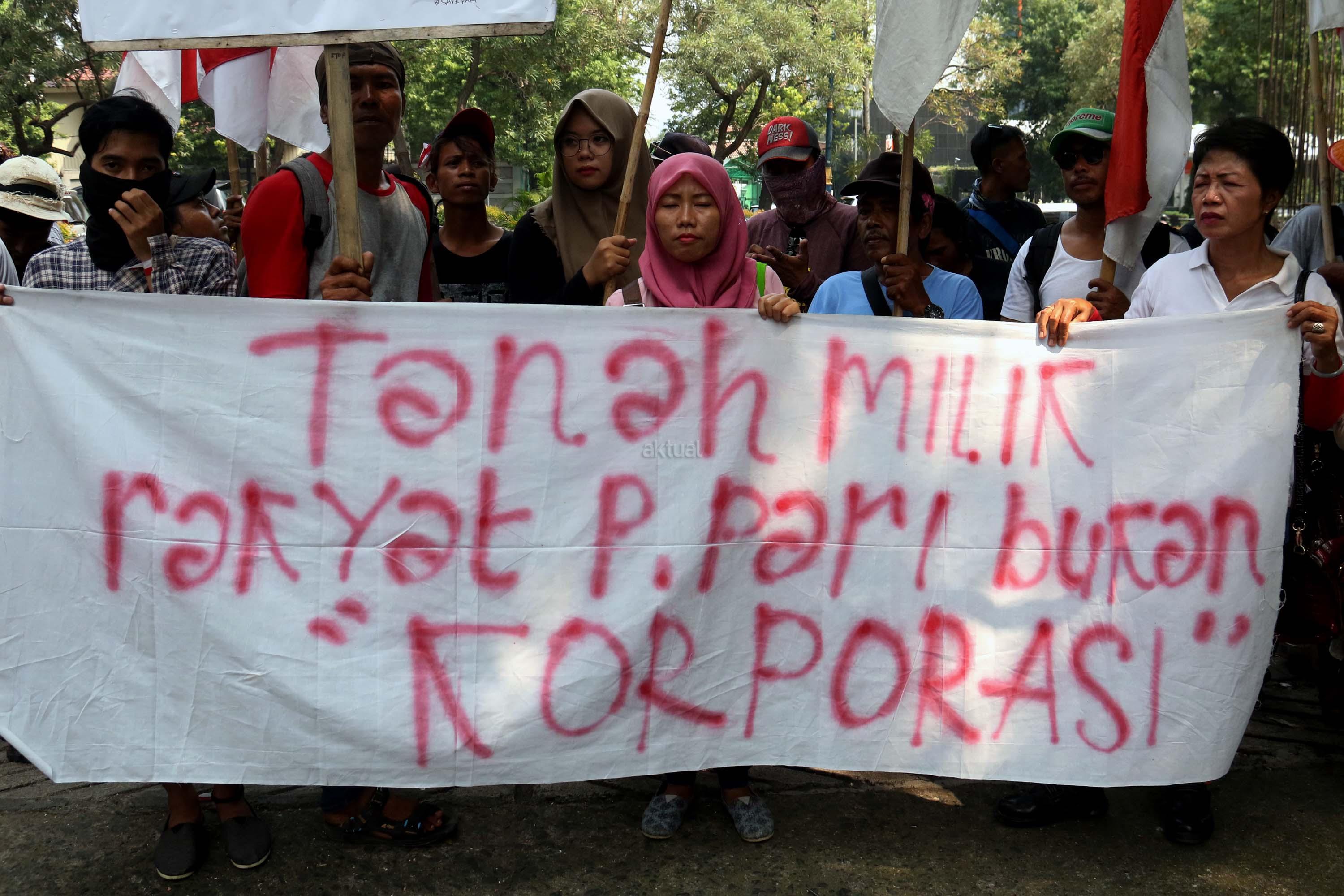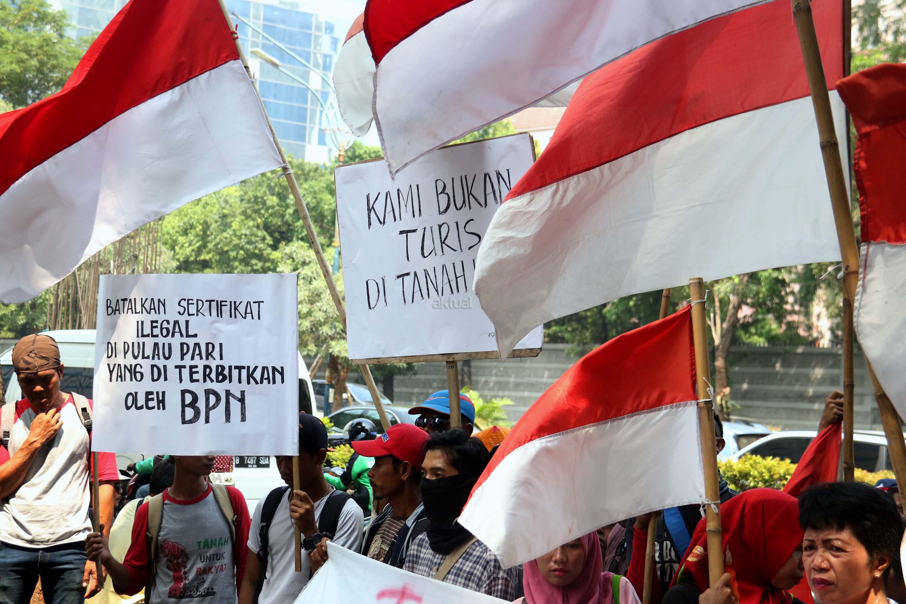Puluhan nelayan pulau Pari melakukan aksi unjuk rasa terkait pengusaan tanah pulau pari yang dilakukan oleh PT Bumi Pari didepan kantor Ombusman RI (ORI) di Jalan. HR. Rasuna Said, Jakarta Selatan, Rabu (24/5/2017). Dalam aksinya para nelayan meyerahkan data-data penguasaan tanah adalah untuk menolak klaim PT Bumi Pari yang ingin melakukan penguasaan/privatisasi pulau pari dan sebelumnya PT Bumi Pari mengklaim memiliki 90% lahan pulau pari seluas 42 Hektar. Kami menduga terjadi maladministrasi atas klaim PT Bumi pari. AKTUAL/Munzir