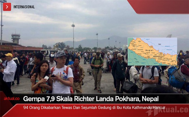 Jakarta, Aktual.co — Gempa besar berkekuatan 7,9 Skala Richter yang berpusat di 80 km sebelah timur Pokhara, Nepal, mengguncang negara tersebut pada Sabtu (25/4) sehingga menyebabkan sejumlah gedung di ibu kota Kathmandu roboh.