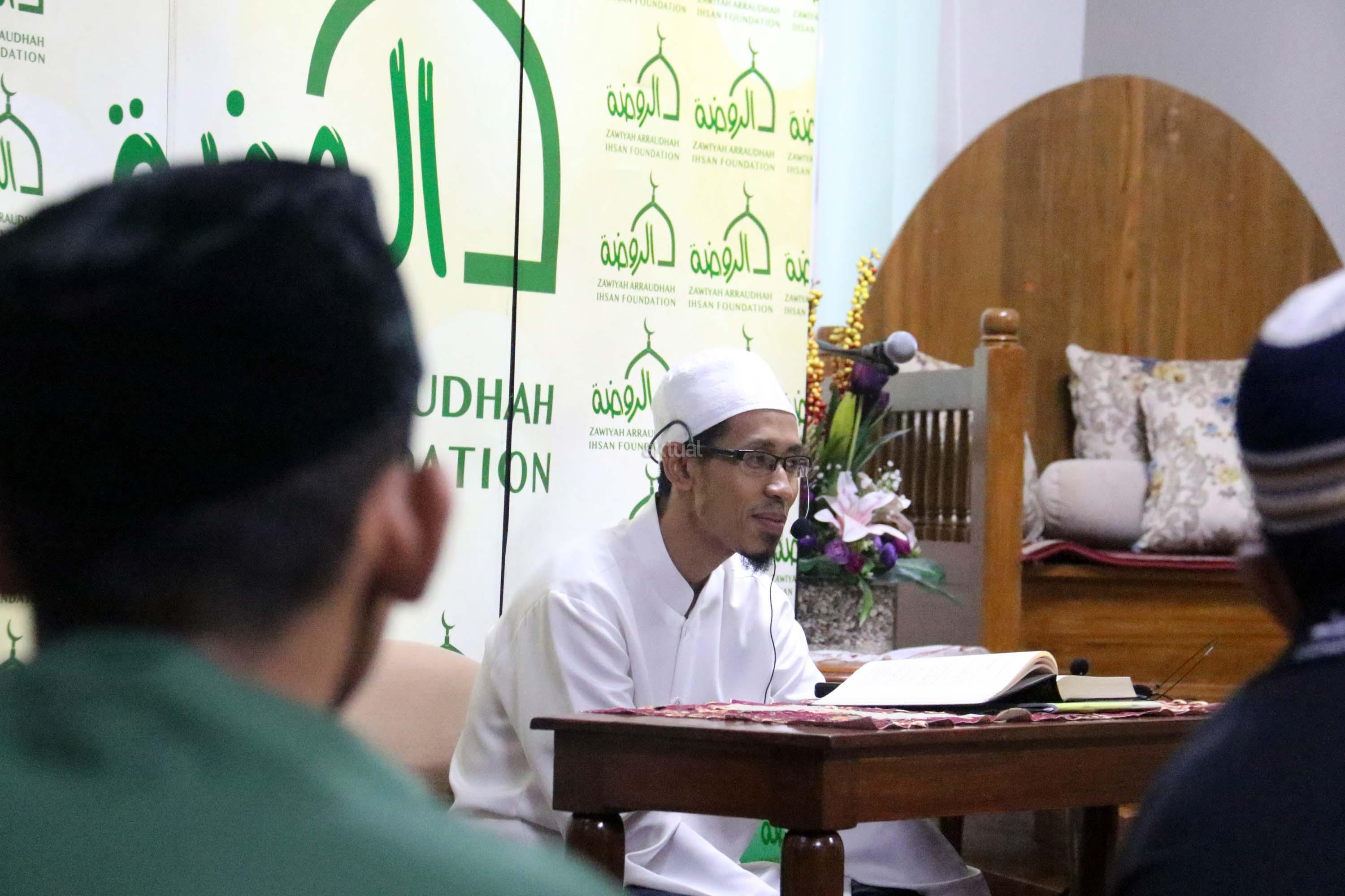 Ustad Azka Fuadi saat menyampaikan kajian tematik di Zawiyah Arraudhah, jalan. Tebet Barat VIII, Jakarta Selatan, Senin (29/5/2017). Zawiyah Arraudhah menyelenggarakan kajian sambil menunggu berbuka puasa setiap hari di dalam bulan Ramadhan. AKTUAL/Munzir