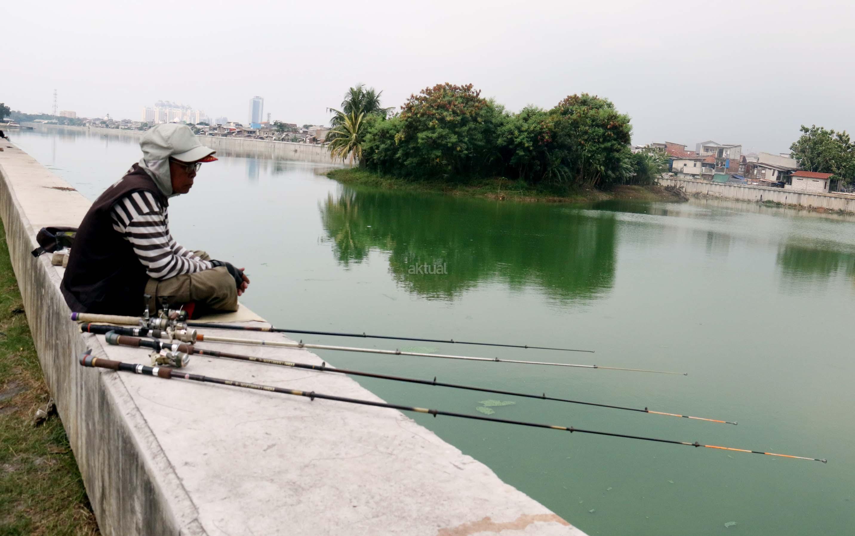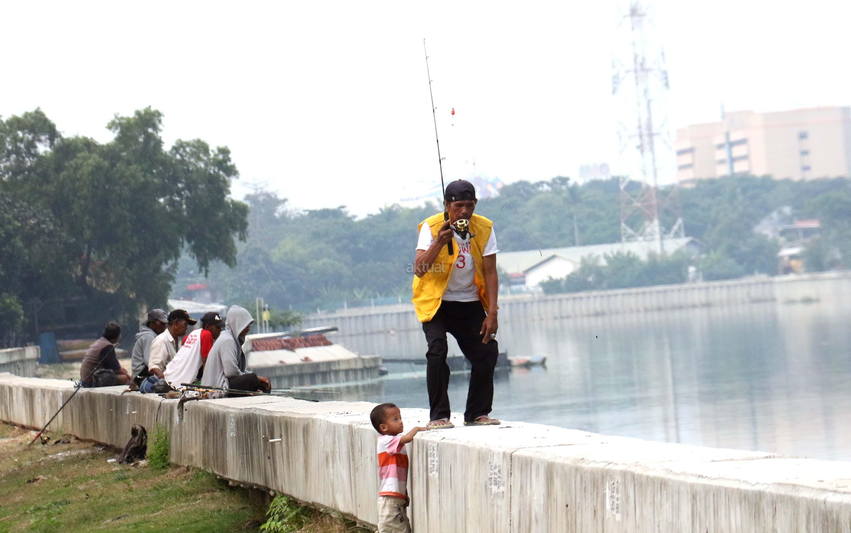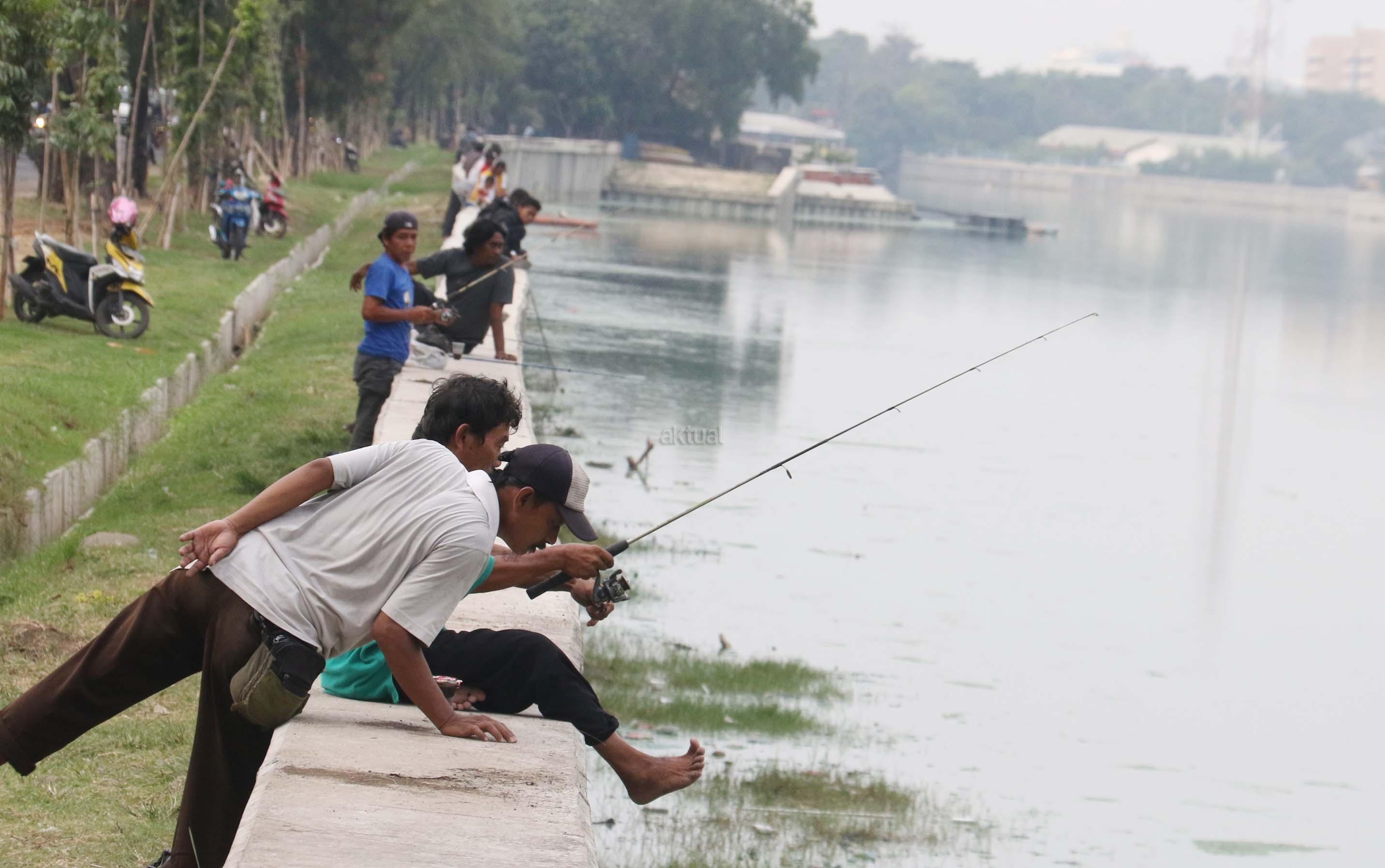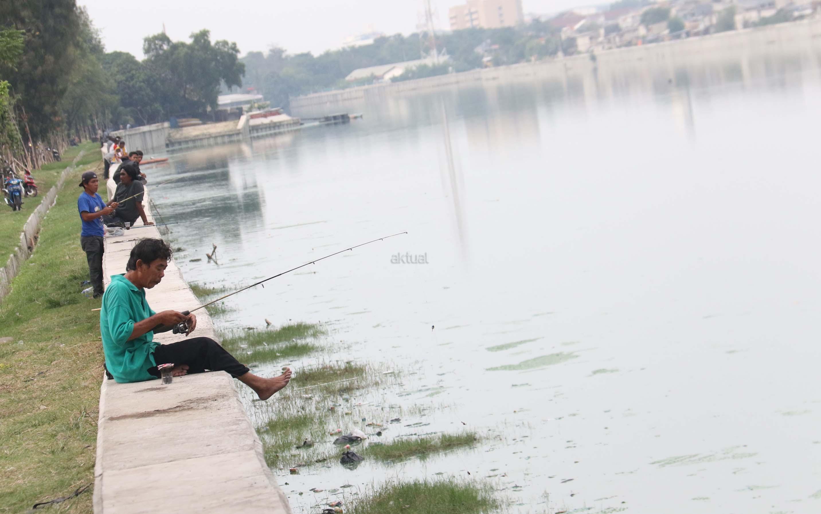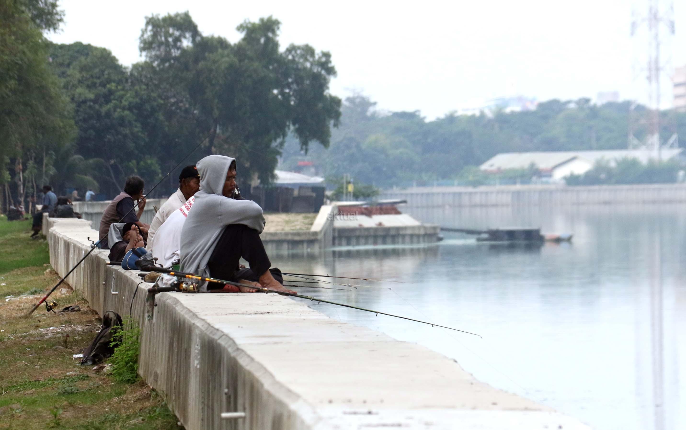 Sejumlah warga memancing di Waduk Sunter Barat, Jakarta Utara, Selasa (13/6/2017). Waduk Sunter merupakan salah satu ruang terbuka hijau di Jakarta yang sering digunakan sebagai lokasi rekreasi warga dan bermain untuk anak-anak. AKTUAL/Munzir