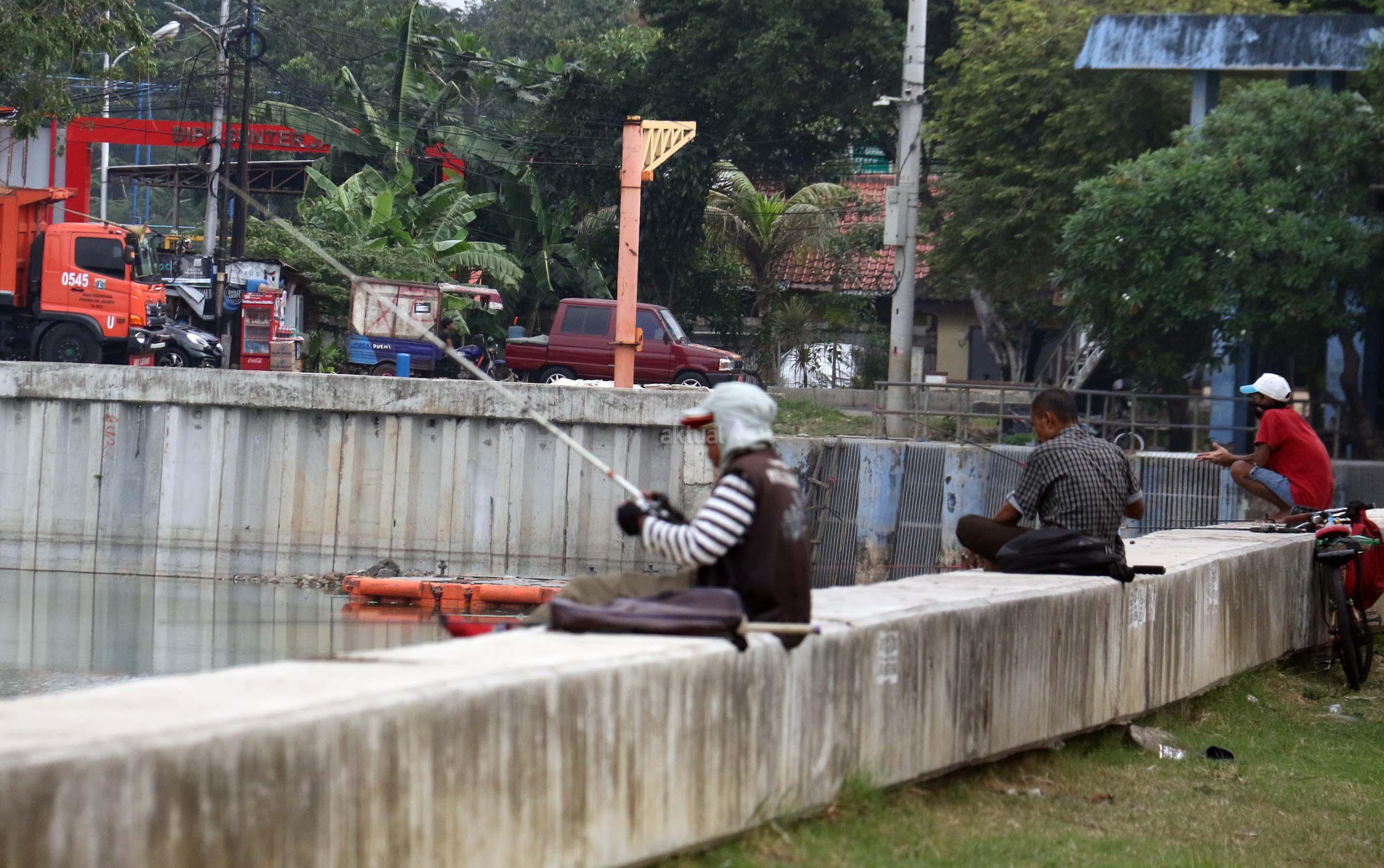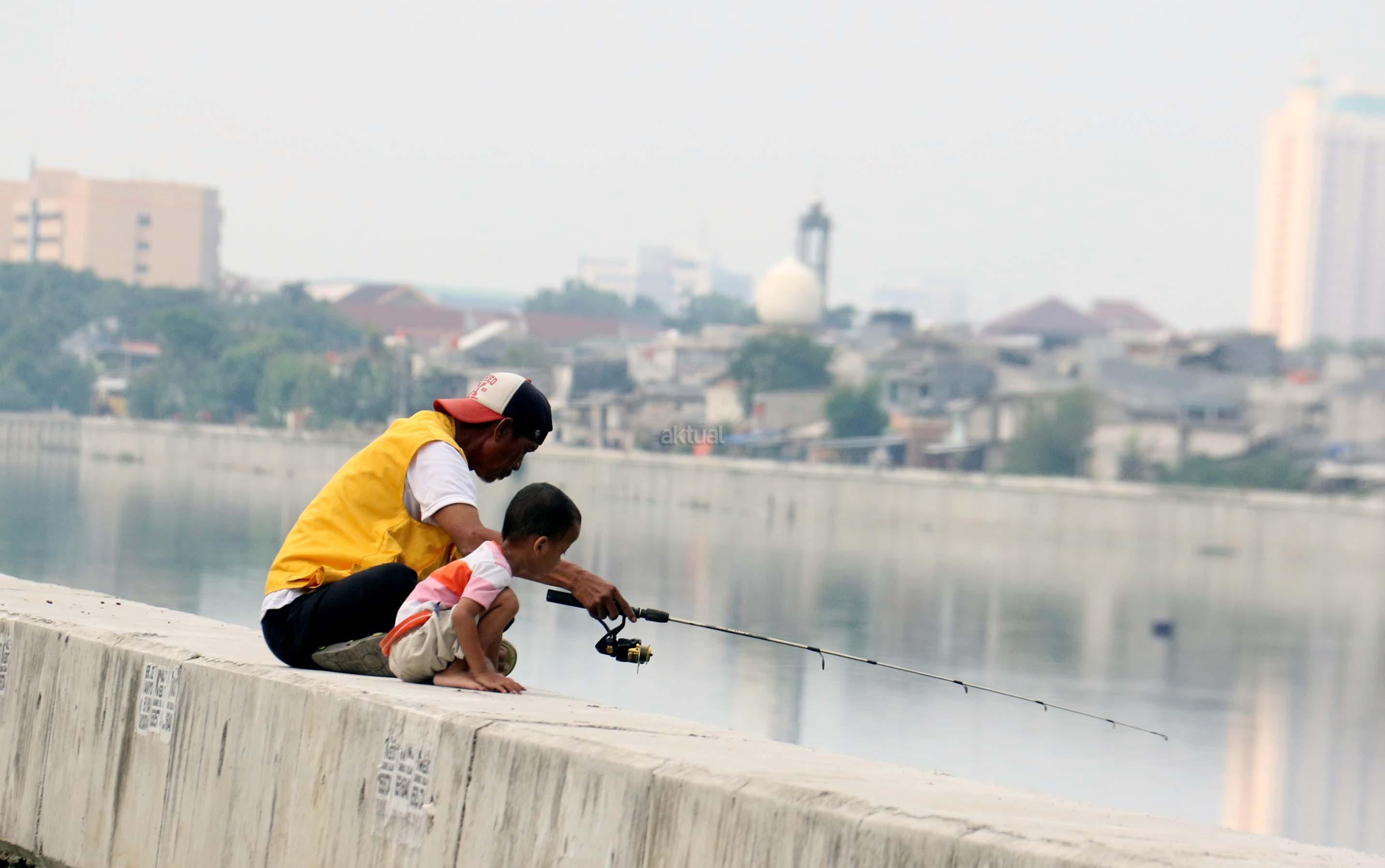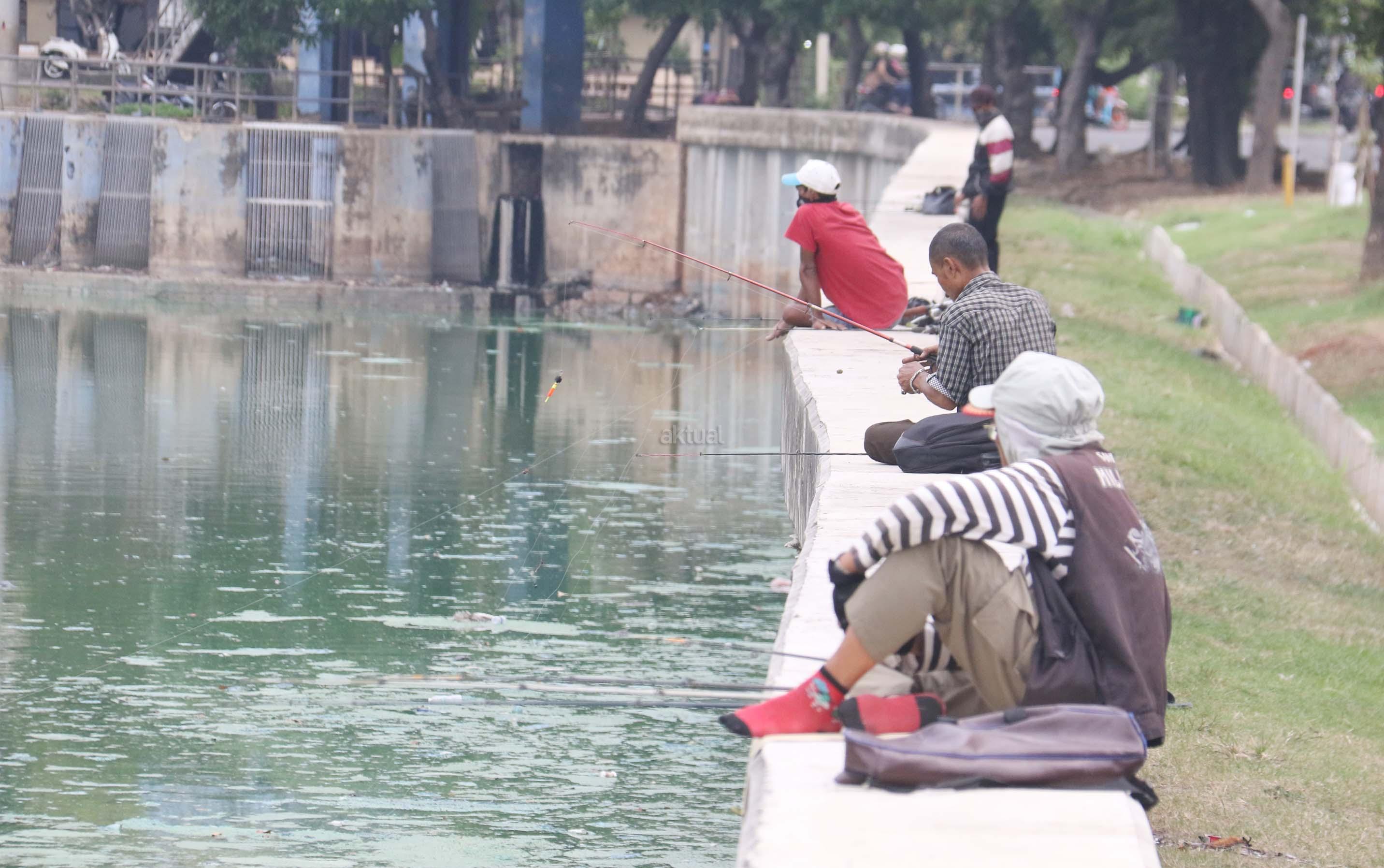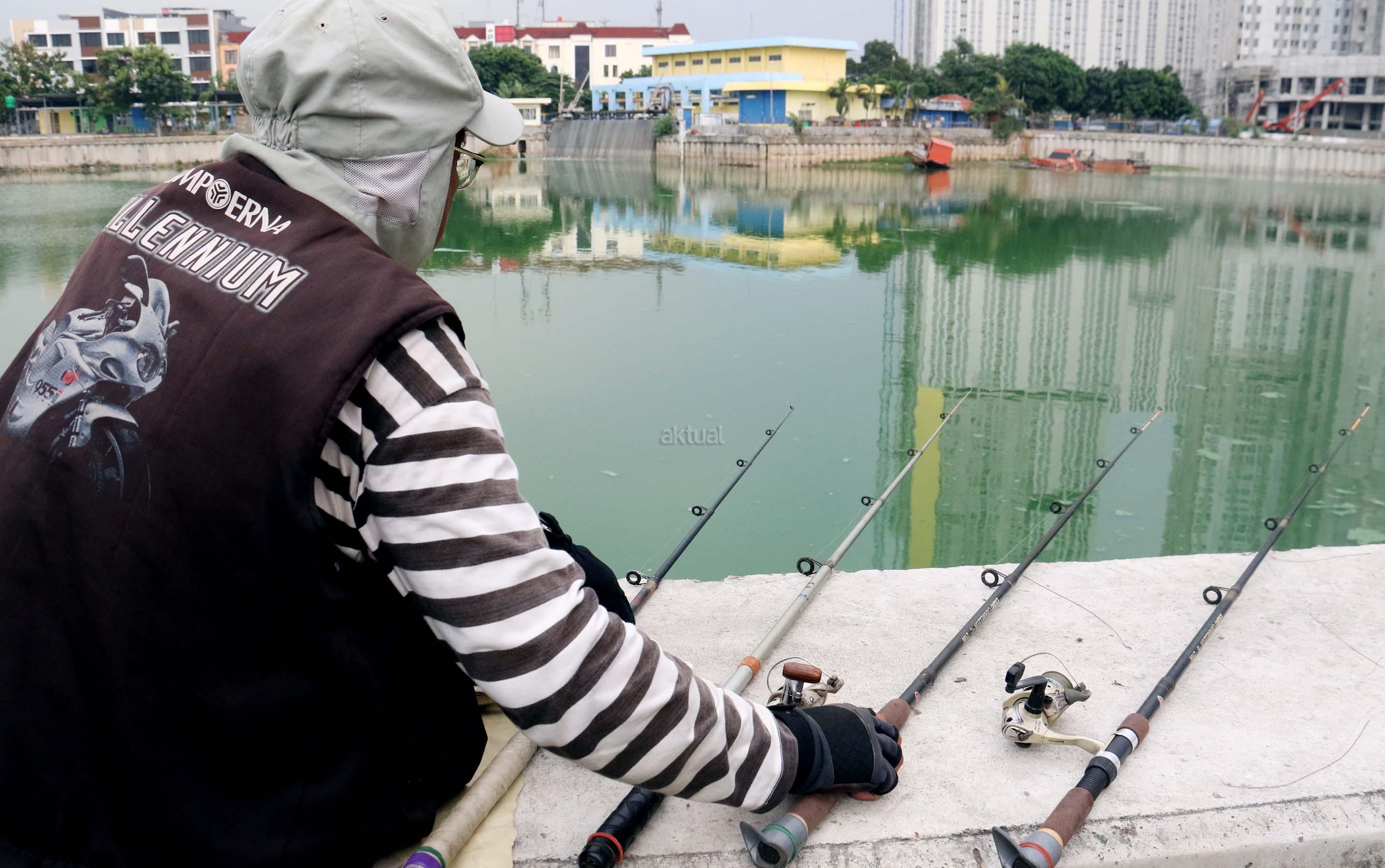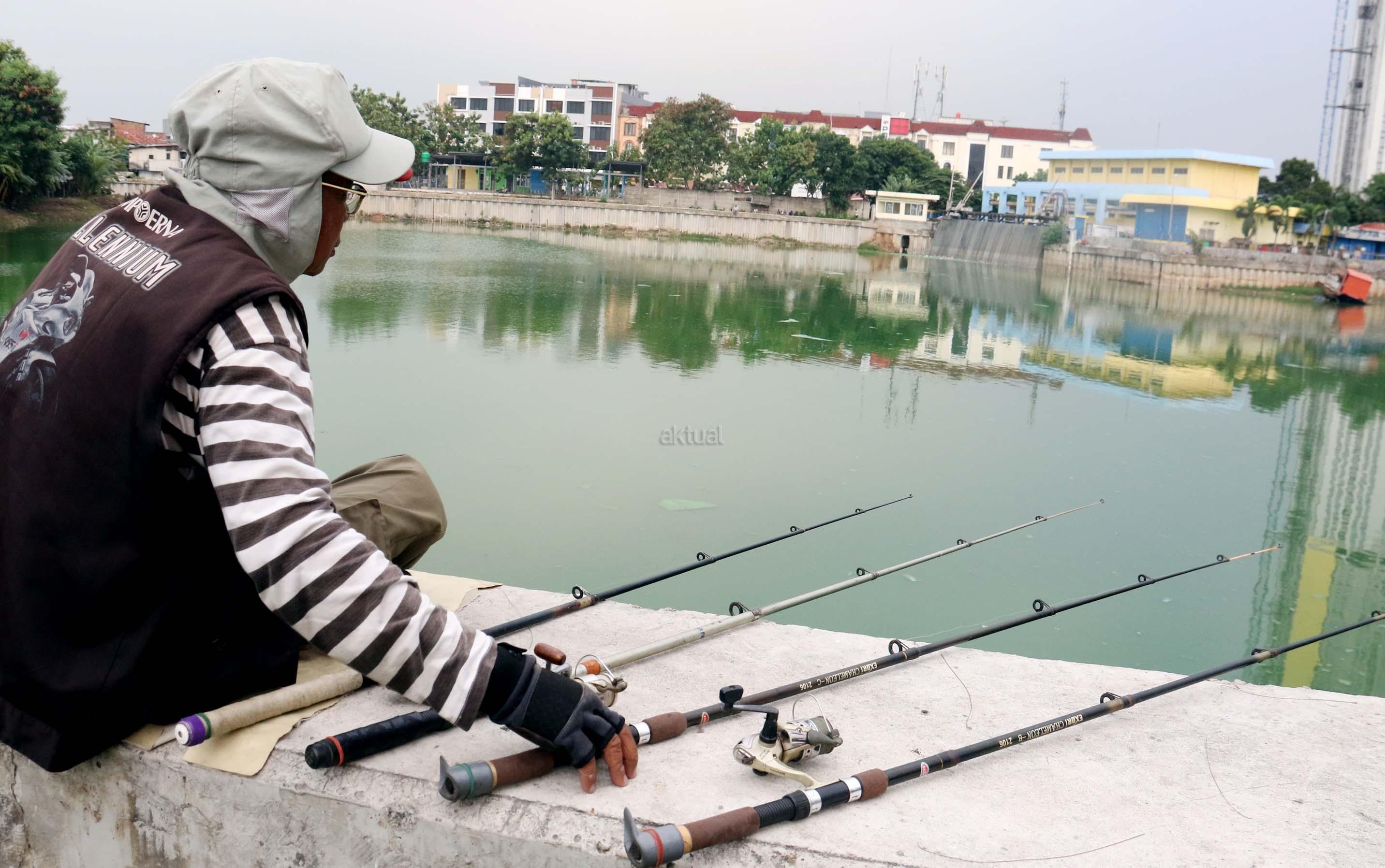 Sejumlah warga memancing di Waduk Sunter Barat, Jakarta Utara, Selasa (13/6/2017). Waduk Sunter merupakan salah satu ruang terbuka hijau di Jakarta yang sering digunakan sebagai lokasi rekreasi warga dan bermain untuk anak-anak. AKTUAL/Munzir