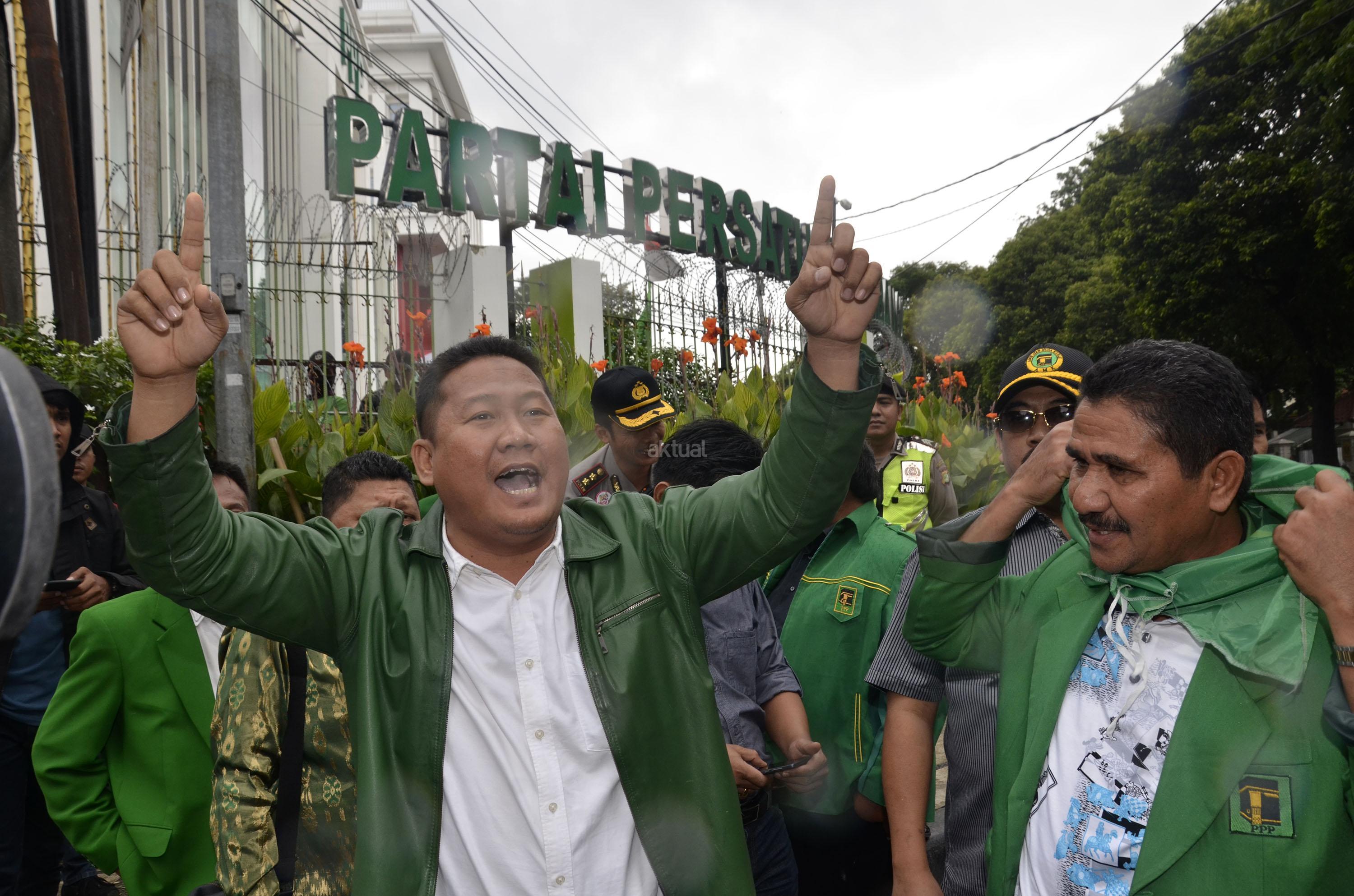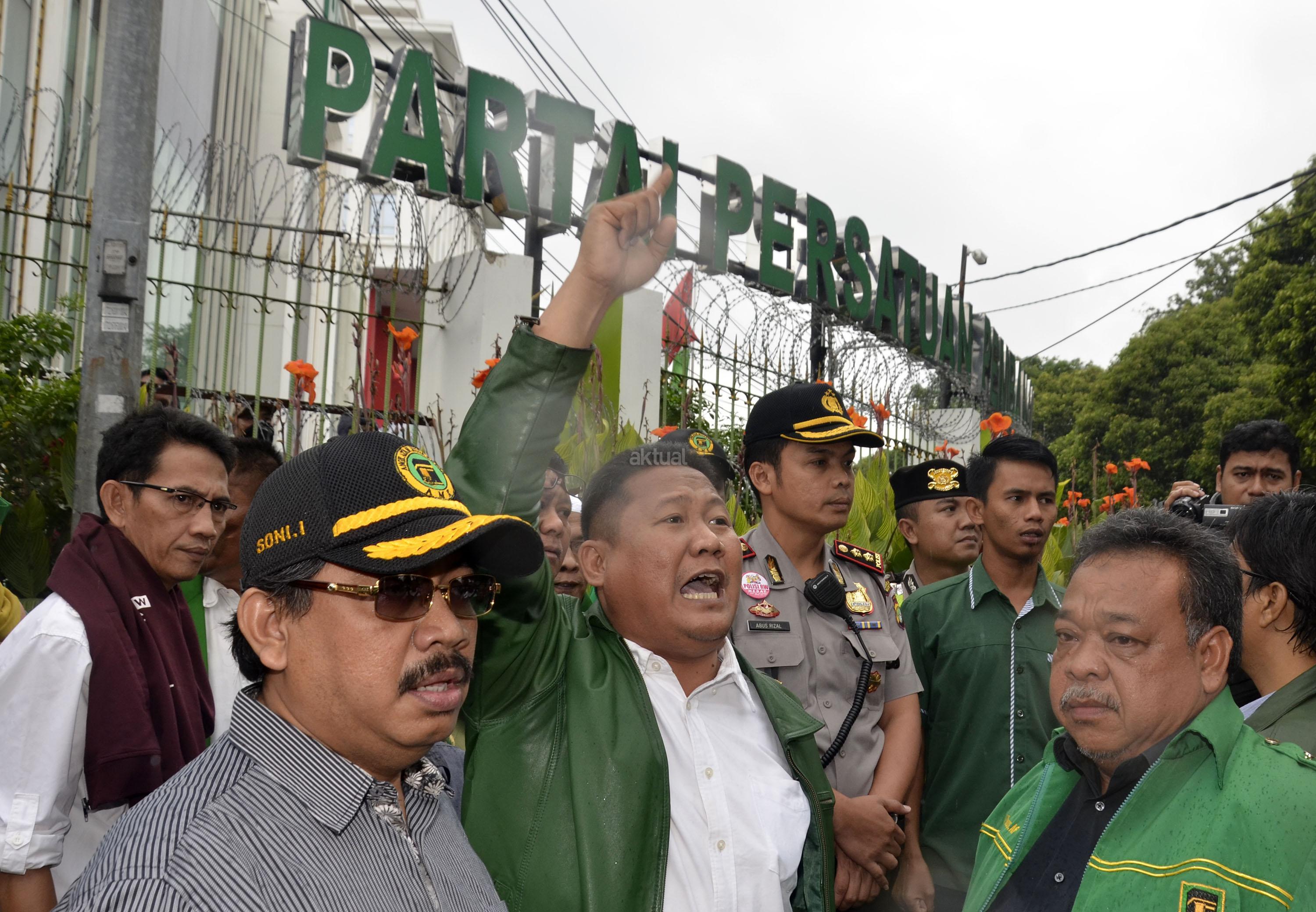 PPP kubu Djan Faridz dihadang pendukung PPP Romahurmuziy ketika akan melakukan silaturahmi di Kantor DPP PPP, sempat terjadi Kekisruhan lantaran niat baik pengurus DPP dan DPW PPP Muktamar Jakarta untuk bersilaturahmi dengan pengurus PPP kubu Romahurmuziy ditolak oleh pendukung Romahurmuziy. Wasekjen DPP PPP kubu Djan Faridz Sudarto menegaskan, secara legal pihaknya lah yang seharusnya menempati kantor tersebut. AKTUAL/Tino Oktaviano