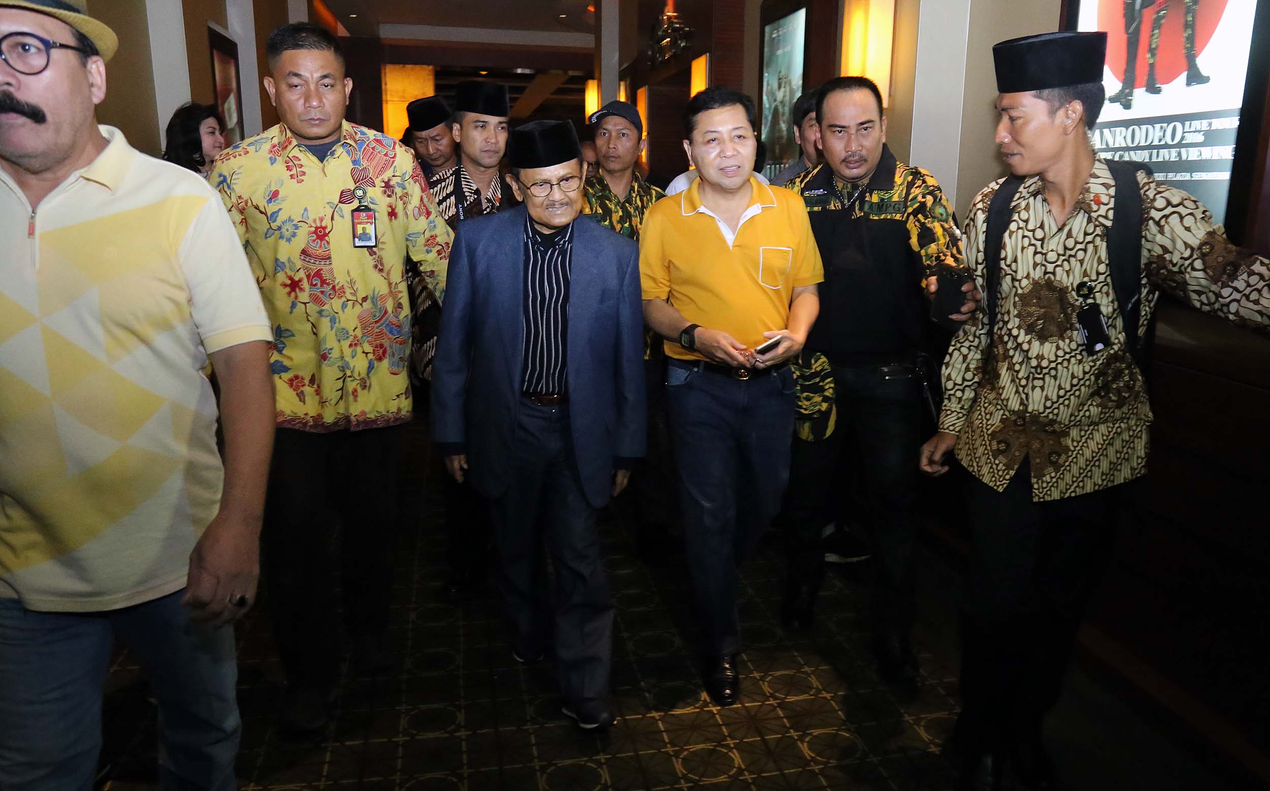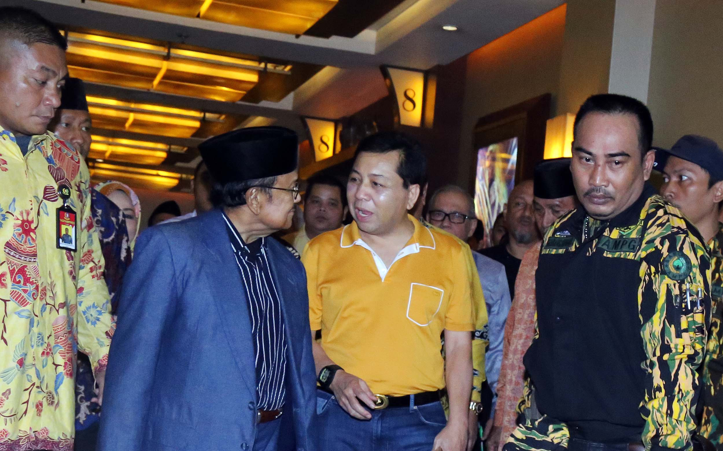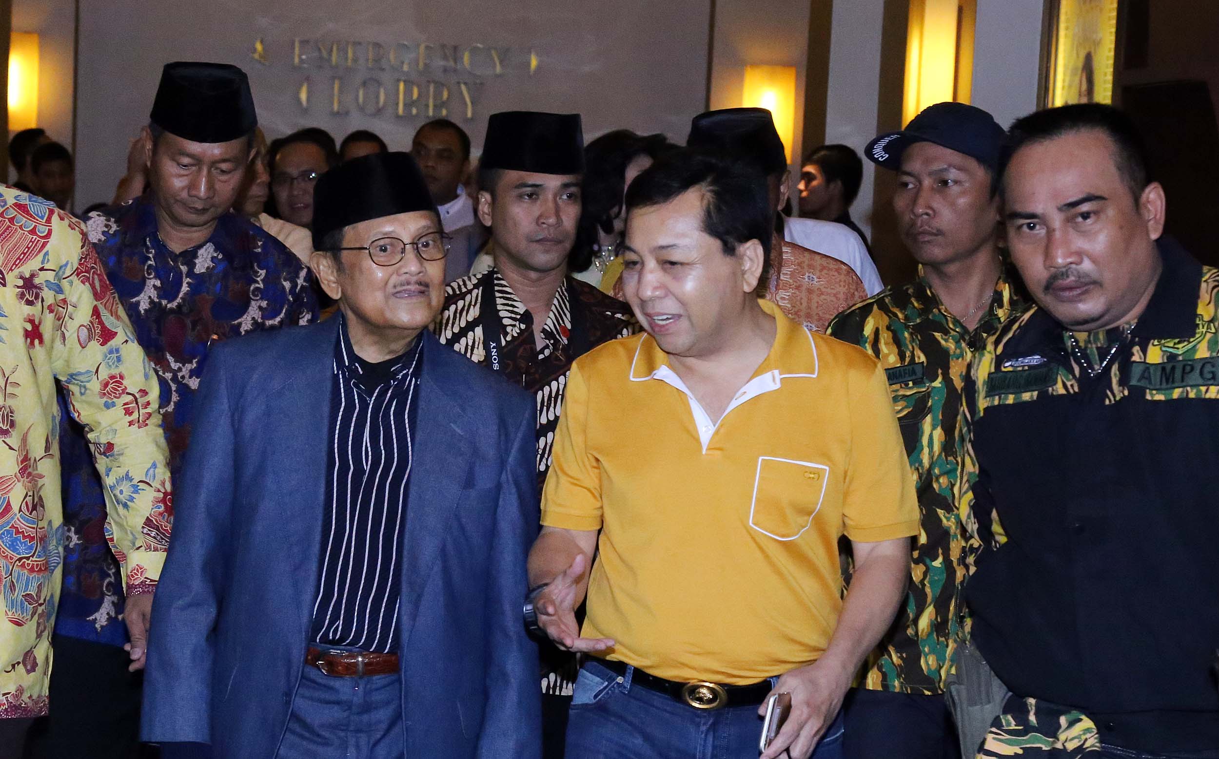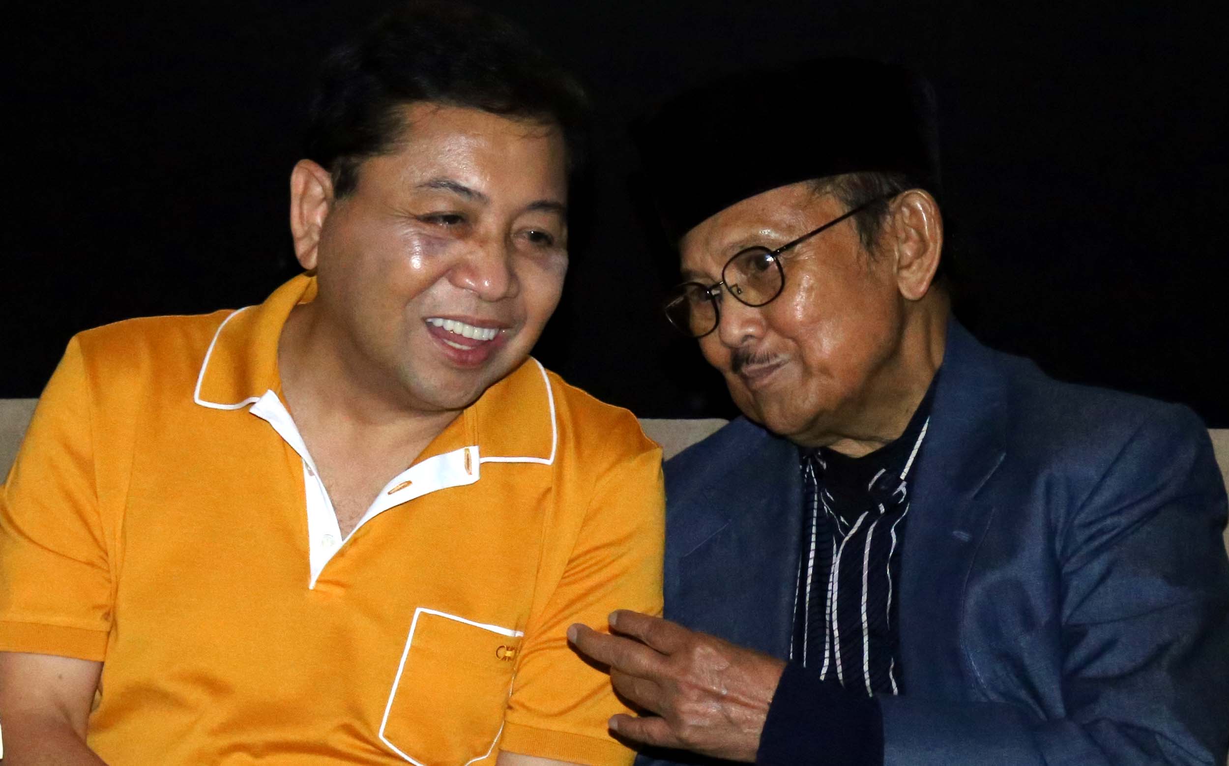 Ketua Ketua Umum Partai Golkar Setya Novanto (kanan) mendampingi Presiden RI ke- 3 B.J Habibie (kiri) saat menghadiri nonton bareng film Rudy Habibie bersama B.J Habibie, di XX1 Plaza Senayan, Jakarta, Sabtu (16/7/2016). Kegiatan ini merupakan penghargaan kader muda Partai Golkar terhadap BJ Habibie sebagai tokoh bangsa yang dapat menginspirasi anak muda. Partai Golkar Setya Novanto (kanan) mendampingi Presiden RI ke- 3 B.J Habibie (kiri) saat menghadiri nonton bareng film Rudy Habibie bersama B.J Habibie, di XX1 Plaza Senayan, Jakarta, Sabtu (16/7/2016). Kegiatan ini merupakan penghargaan kader muda Partai Golkar terhadap BJ Habibie sebagai tokoh bangsa yang dapat menginspirasi anak muda.