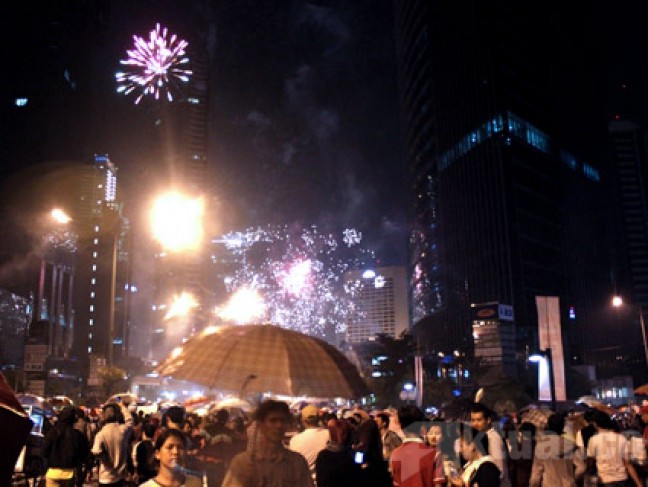Pesta kembang api di Lapangan Gasibu sempat disaksikan Gubernur Jabar Ahmad Heryawan, setelah mengunjungi sejumlah tempat kegiatan doa bersama menyambut Tahun Baru.