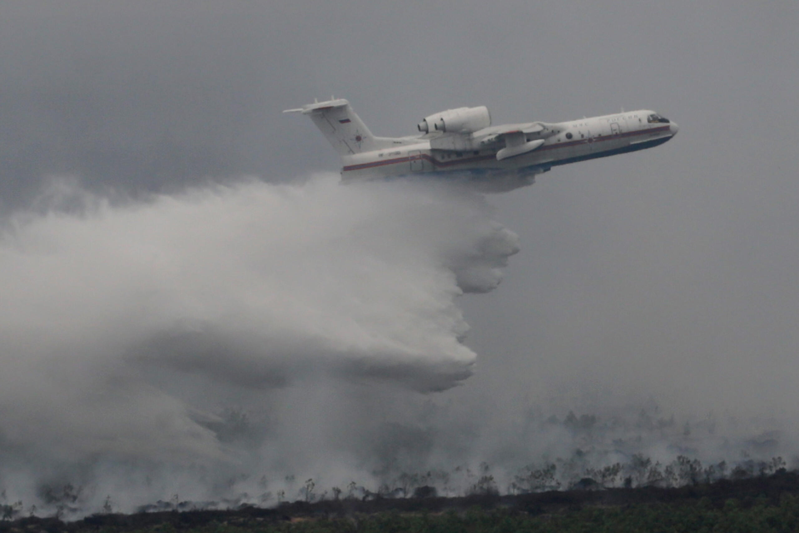Operasi Pesawat Bom Air Rusia Beriev BE-200 Padamkan Kebakaran Hutan