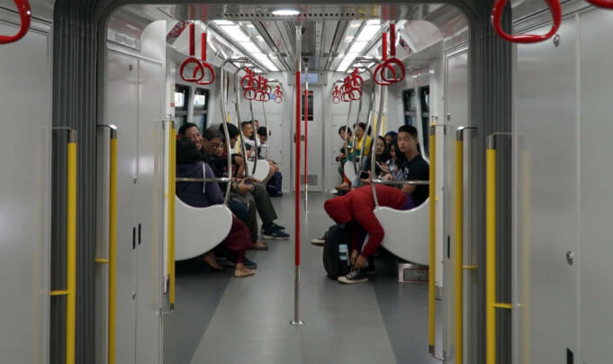 Penumpang menjajal Light rail transit (LRT) atau moda transportasi massal berbasis rel Kelapa Gading-Velodrom di Jakarta, Selasa (25/6). AKTUAL/Eko S Hilman