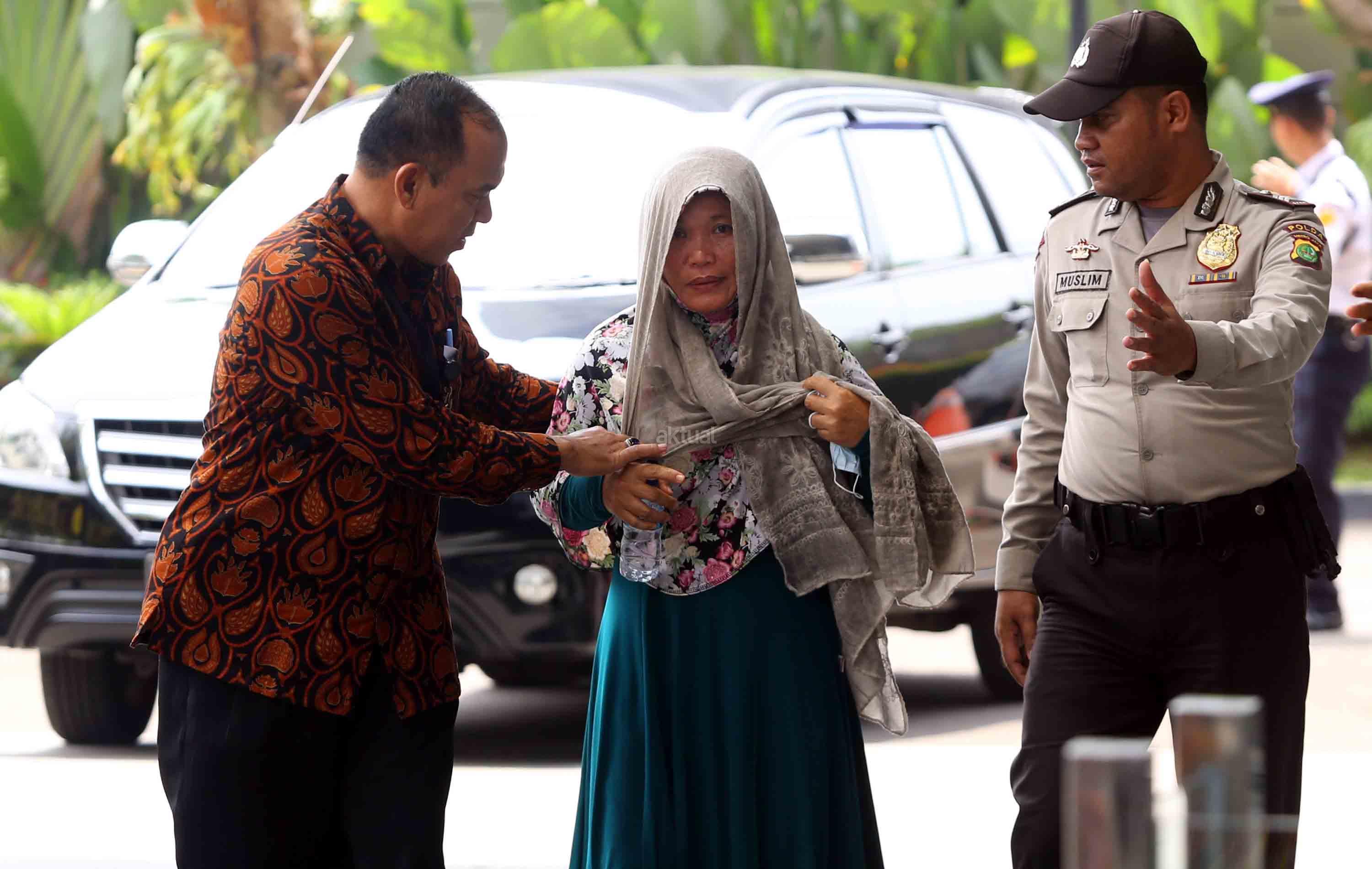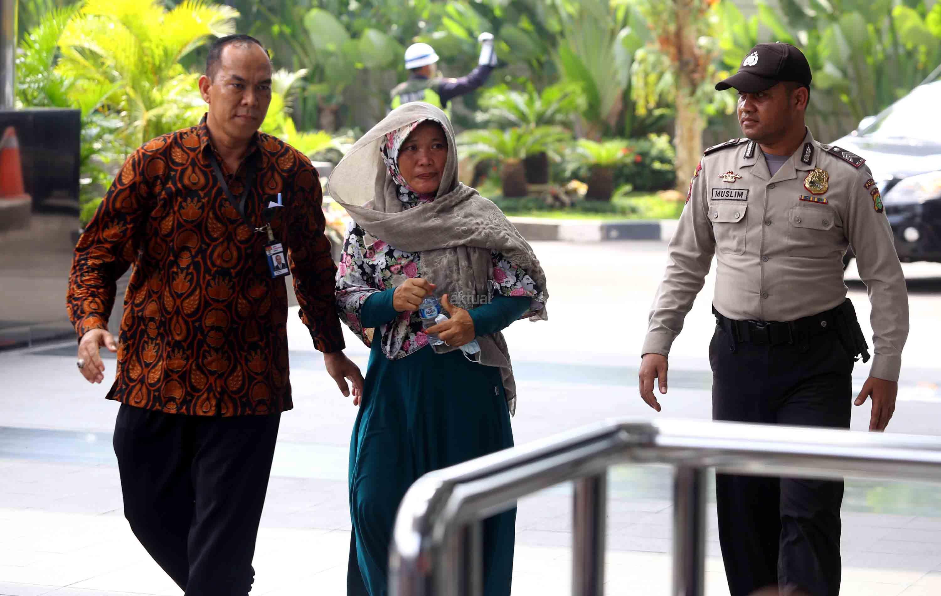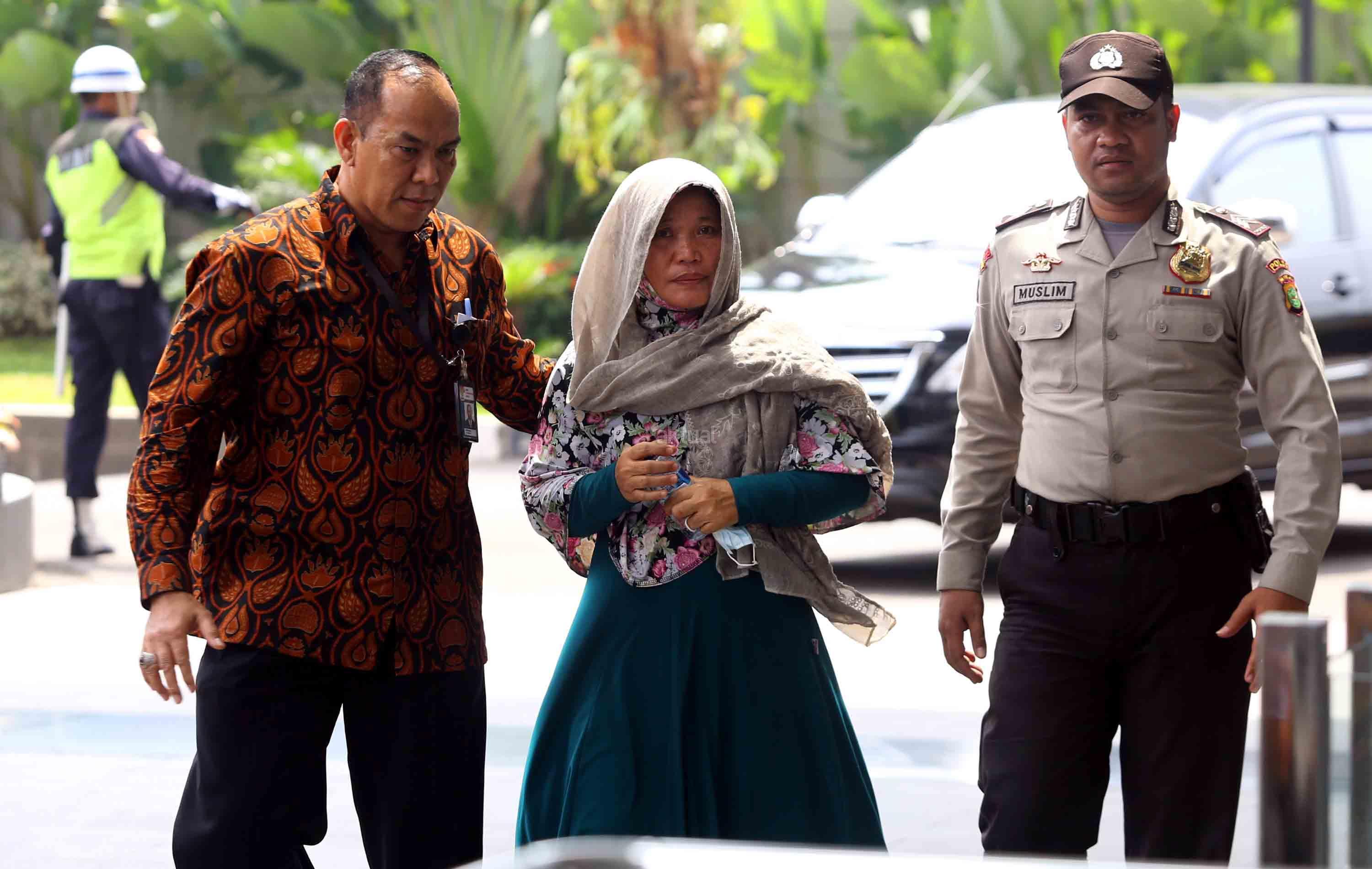 PNS dari Bengkulu Selatan, Wati digiring petugas untuk menjalani pemeriksaan, di gedung Komisi Pemberantasan Korupsi (KPK), Jakarta, Rabu (16/5). KPK melakukan Operasi Tangkap Tangan (OTT) terhadap Bupati Bengkulu Selatan Dirwan Mahmud di kediamannya dan mengamankan istrinya, Heni Dirwan, wiraswasta JU dan WA dengan barang bukti uang sekitar Rp100 juta. AKTUAL/Tino Oktaviano