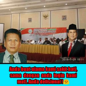 Menurut Damai, cara berpolitik Prabowo dapat disebut sebagai langkah awal pengkhianatan terhadap semua ulama yang mendukungnya selama ini.