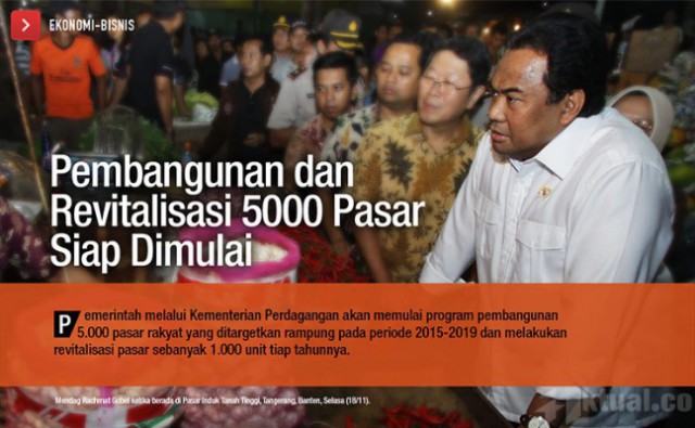 Jakarta, Aktual.co — Program pemerintah untuk membangun dan merevitalisasi 5.000 pasar rakyat yang ditargetkan rampung pada periode 2015-2019 siap dimulai, dan berdasarkan rencana Kementerian Perdagangan revitalisasi itu tiap tahunnya sebanyak 1.000 unit.