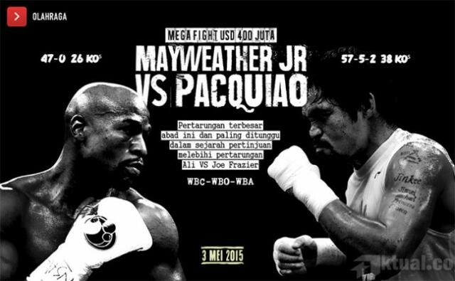 Sekedar informasi, petinju Mayweather yang memiliki rekor tanding 47-0 dengan 26 diantaranya adalah kemenangan KO. Sementara itu, Pacquiao yang memiliki rekor tanding 57-5 dengan 2 seri dan 38 kemenangan KO sudah memenangi gelar juara di 8 divisi dunia.