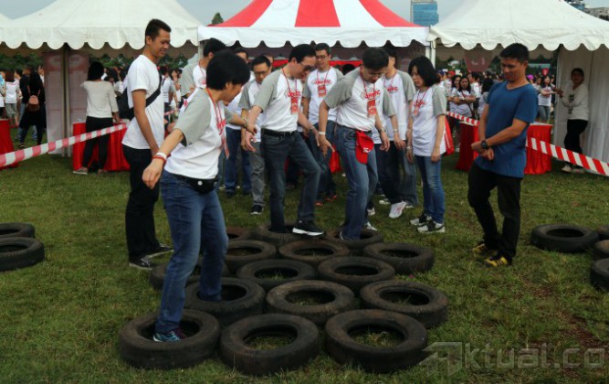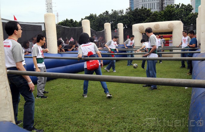 “Akan dipasang di depan lapangan sampai tanggal 29 April 2015,” katanya sambil berjalan menuju truk.