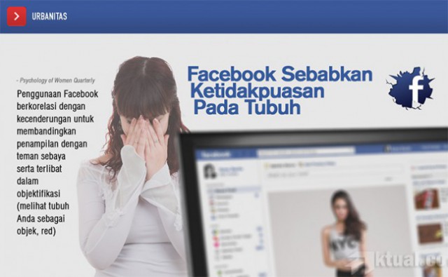 Jakarta, Aktual.co — Facebook akan menimbulkan efek negatif pada tubuh Anda. Sebuah studi terbaru menyebutkan, bahwa penggunaan Facebook berkorelasi dengan kecenderungan untuk membandingkan penampilan dengan teman sebaya serta terlibat dalam objektifikasi (melihat tubuh Anda sebagai objek, red).