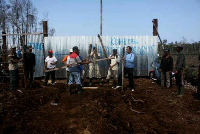 Atas tindakan itu, warga pun memaksa agar pengerjaan menggunakan alat pengeruk itu dihentikan. Selain menghentikan operasional alat pengeruk, warga juga memblokade pintu masuk menuju areal perkebunan yang pengerjaannya baru dimulai itu.