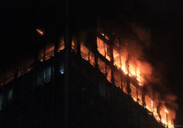 Jakarta, Aktual.co — Wisma Kosgoro masih dilalap si jago merah sejak pukul 18.45 WIB hingga pukul 23.45 WIB. petugas pemadam kebakaran dari Dinas Pemadam Kebakaran DKI Jakarta masih berusaha memadamkan api dengan bantuan Sky Lift yang berukuran 90 meter itu.