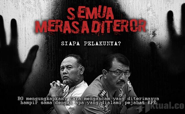 Jakarta, Aktual.co — Ternyata tidak hanya pejabat Komisi Pemberantasan Korupsi (KPK) yang mengklaim mendapatkan teror. Komisaris Jenderal Polisi (Komjen Pol) Budi Gunawan (BG) dan pengacaranya, Razman Nasution mengaku dirinya juga mengalami teror.