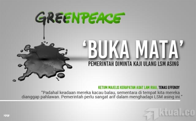 Jakarta, Aktual.co — Lembaga Adat Melayu (LAM) Riau menilai pemerintah Indonesia perlu mengkaji keberadaan Lembaga Swadaya Masyarakat (LSM) lingkungan terutama LSM asing seperti Greenpeace, karena bisa membawa pengaruh bahaya laten bagi perekonomian Indonesia.