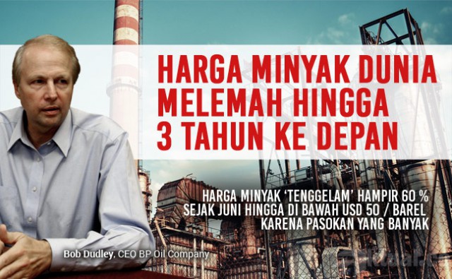 Jakarta, Aktual.co — Bos minyak terbesar BP, Bob Dudley, menerangkan, bahwa harga minyak dunia melemah hingga tiga tahun ke depan.