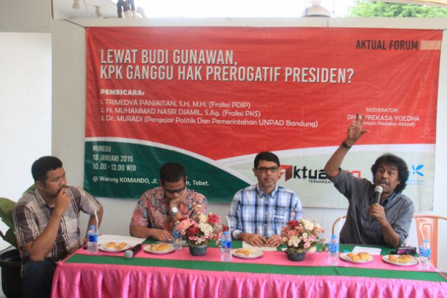 Demikian disampaikan olehnya saat diskusi bertema “Lewat Budi Gunawan, KPK Ganggu Hak Perogratif Presiden?” di Warung Komando Jakarta, Minggu (18/1).